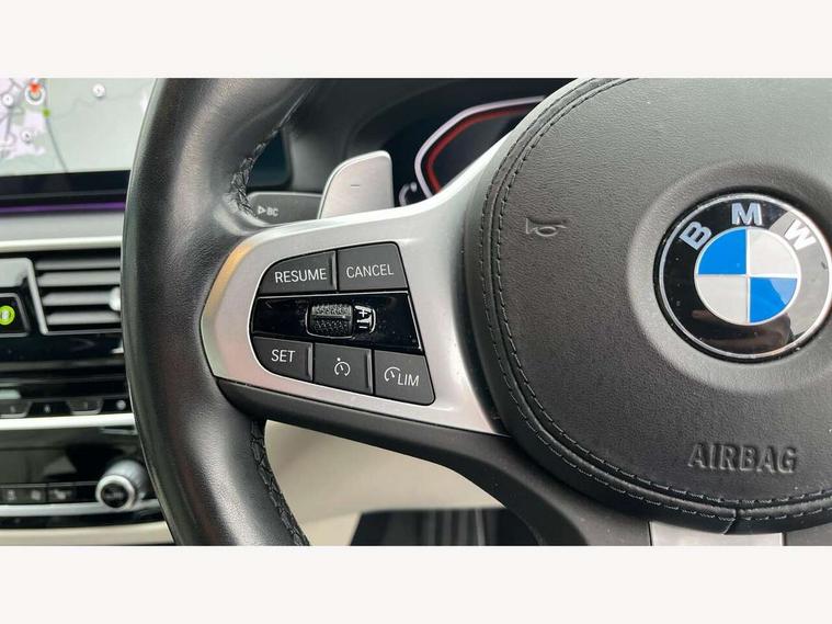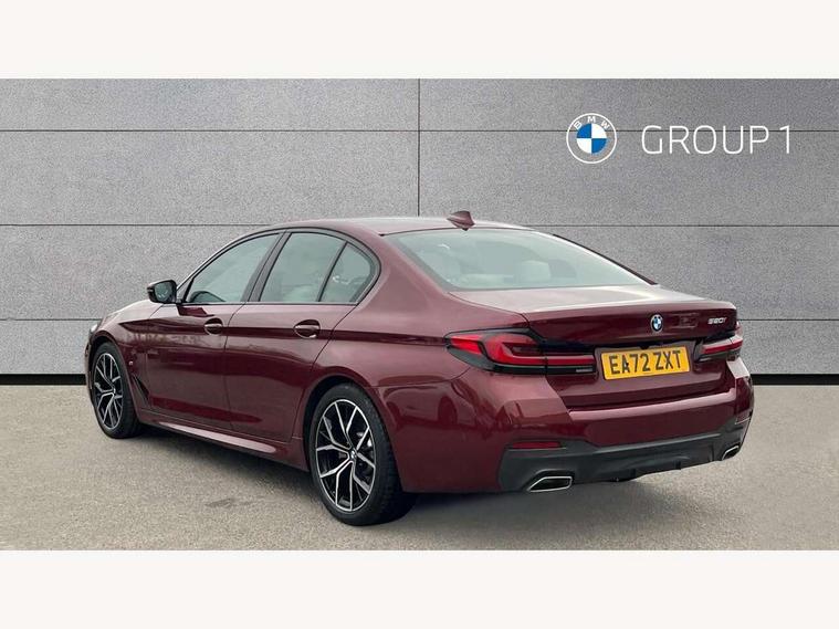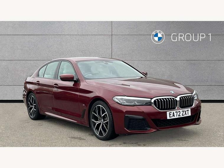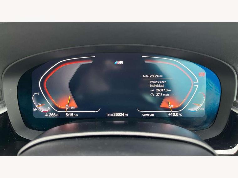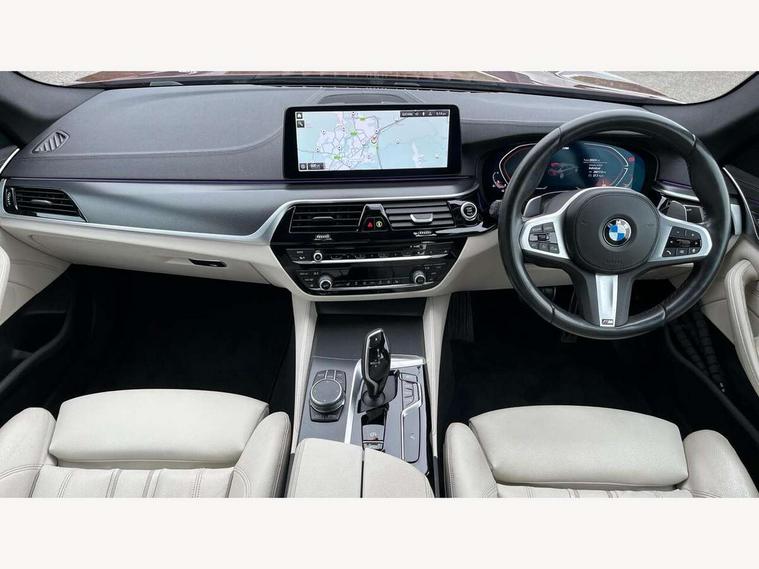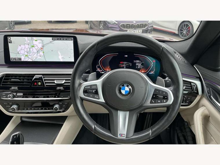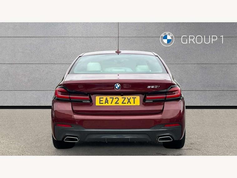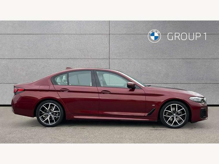 32GB hard disc drive (HDD) memory, Active Guard, Bluetooth connection, BMW ConnectedDrive online services, BMW Live Cockpit Professional sat nav system with 12.3" instrument display and high resolution control display, BMW Teleservices, Brake pad wear indicator, Cruise control with brake assist, Driving experience switch, eCall emergency call system, Electric Power Steering (EPS) with Servotronic, iDrive controller with shortcut buttons, Intelligent emergency call, Multifunctional instrument panel, Oil sensor for level and grade, On board computer inc. average speed, fuel consumption, liquid crystal Info display, journey computer, outside temperature display, personal profile, On-board diagnosis - OBD, Powered by Operating System 7.0, Service interval indicator, Speed limiting function, Stop/start button, 48V Mild hybrid technology, Drive performance control with ECO PRO comfort + sport mode, Engine cover with twin turbo designation, M sport suspension, Petrol Particulate Filter, Steptronic sport transmission with gearshift paddle switches on steering wheel, DAB Digital radio, Favourite buttons, Acoustic glazing, All round anti-corrosion system, Automatic windscreen wipers and automatic headlight, Automatically dimming rear view mirror, BMW Individual high gloss shadow line includes exterior mirror frame, window frame surround, B pillar finish, air breather in high gloss black, Body colour door handles, Body coloured bumpers, Door handle illumination, Dynamic brake lights with LED technology, Electric front and rear windows with fingertip open/close + anti-trap facility and comfort closing function, Electrically adjustable and heated exterior mirrors includes integrated direction indicators and automatic parking function, Folding exterior side mirror with auto- dimming, Follow me home headlight function, Heated windscreen washer jets, High gloss black active air stream kidney grille, LED daytime running lights, LED Headlights, LED third brake light, M designation on front side panels, left and right in chrome, M Sport exterior styling, Preparation for high beam assistant, Rear boot, Rear side wing doors, Trapezoidal visible exhaust tailpipes, 12V power socket in front and rear, 3 seat bench in 2nd row, Armrest - front and rear integrated door trim, centre console includes storage compartment, rear centre includes 2 cupholders, Child seat ISOFIX attachment with rear outer seats includes top tether, Cup holders (2 front and 2 rear), Front and rear footwell lights, Front reading lights, Height and length adjustable steering column and activation via lateral lever on the steering column, Lockable glove compartment with light, M door sill finishers, M specific pedals, M specific velour floor mats, Multifunction controls for leather steering wheel, Rear headrests, Single front passenger seat, Three spoke sport M leather steering wheel, Ambient lighting pack - 5 Series, Connected package professional - 5 Series, M Aerodynamic pack - 5 Series, Airbags - driver/front passenger, rear and side, first and second row seats head airbags, front passenger seat airbag deactivation, Anti-lock braking system (ABS), Automatic Stability Control (ASC), Brake assist function, Brake energy regeneration, Cornering brake control (CBC), Crash sensor activating central locking release, hazard warning lights, fuel cut off and interior lighting, Deformation zones - front and rear with door reinforcements and bumpers up to 2.5 mph, DSC - Dynamic Stability Control, Dynamic brake control, Dynamic Traction Control - DTC, Electromechanical parking brake with automatic drive away release and auto hold function, Electronic brake force distribution, Engine drag torque control, Front and rear brake discs with interior ventilation, Front head restraints with anti-whiplash, Hill start assist, Mechanical child proof lock on rear doors, Passive protection for pedestrians, Rear door child safety locks, Side impact protection, Three point seat belts for all four seats, Two tone horn, Tyre pressure indicator, Warning triangle and first aid kit, Alarm system (Thatcham 1) with remote control and electronic engine immobiliser, Locking wheel bolts,