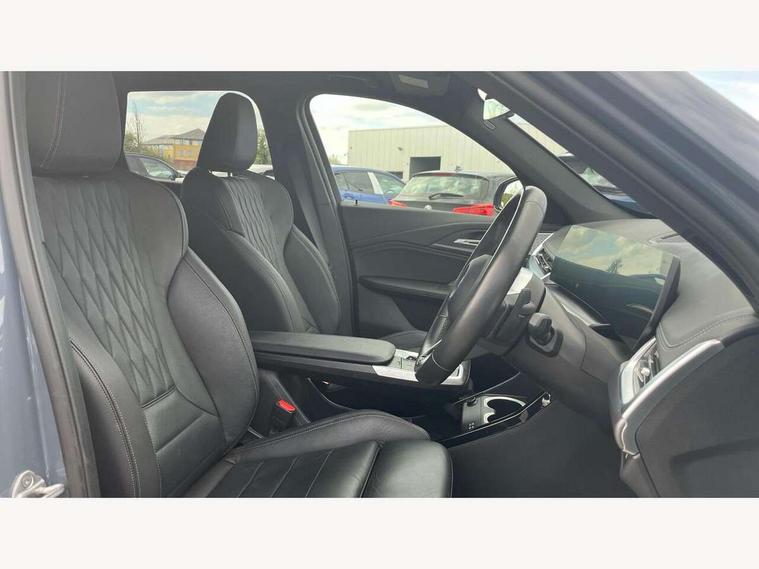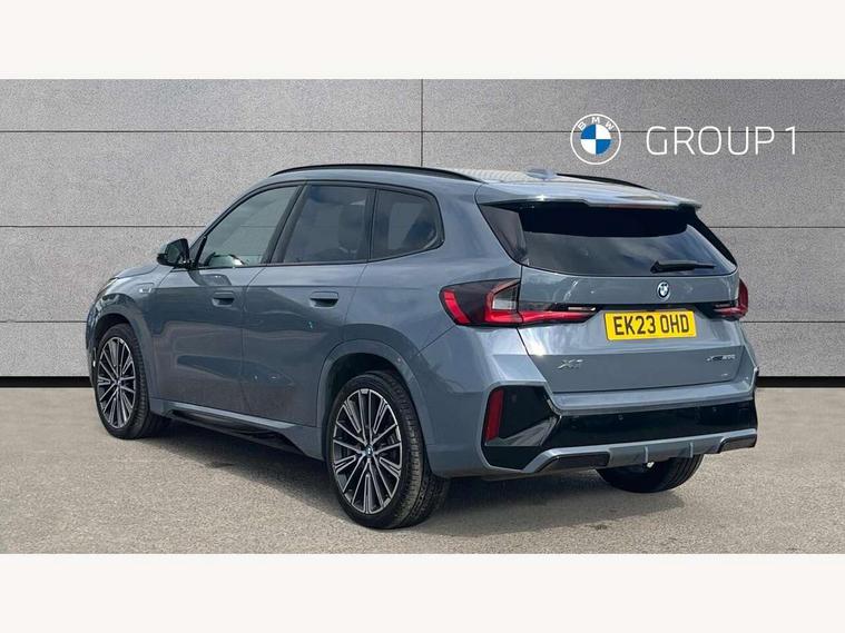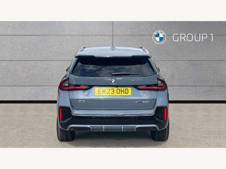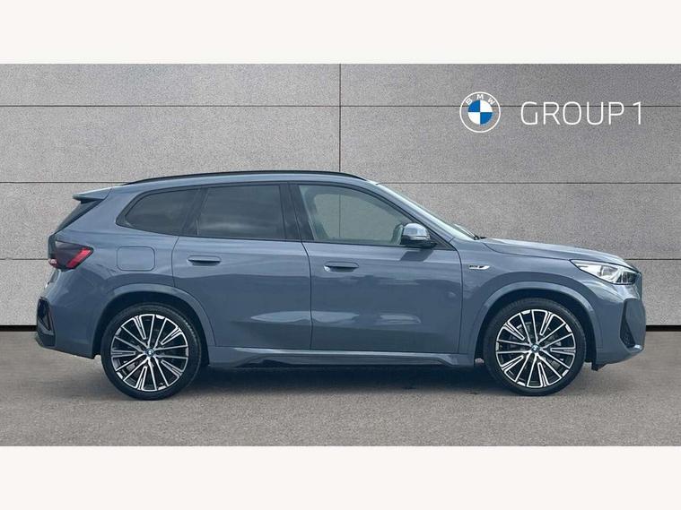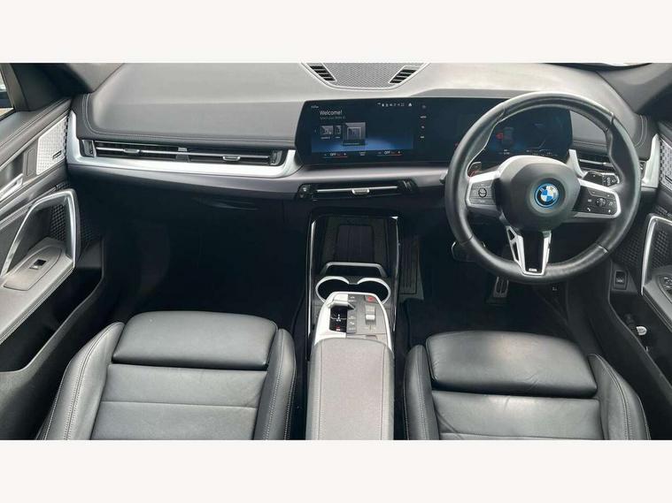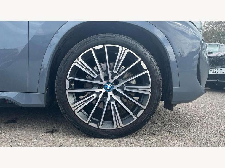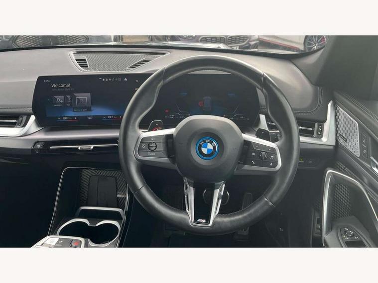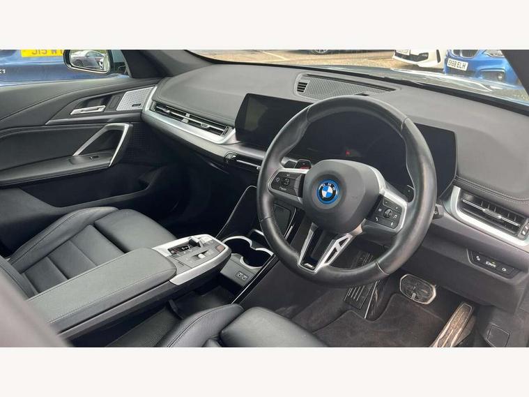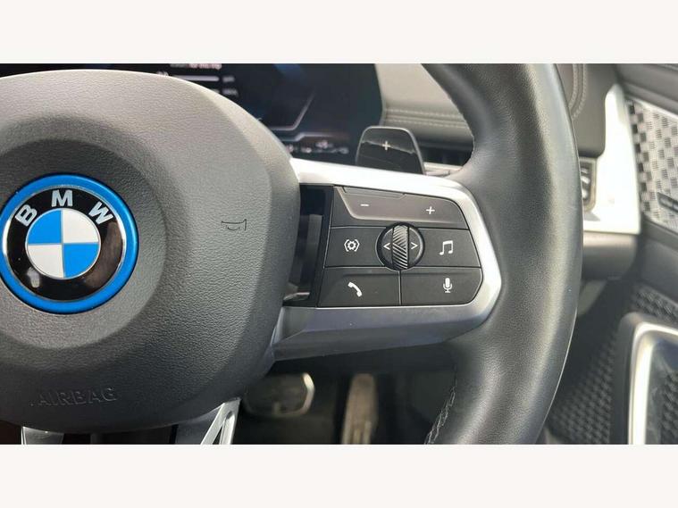 Active Guard + lane departure warning, speed limiting, front collision warning, Left turn warning with brake function and evasion assist, Attentiveness assist, Automatic start/stop function, BMW Live Cockpit Plus with 10.25" instrument cluster and 10.7" display, BMW Online services, BMW Teleservices, Brake pad wear indicator, Condition based service, Connected eDrive Services, Drive off assistant, Electrically opening/closing tailgate with opening/closing with remote control and contactless opening and closing, iDrive controller, Language version English, My Modes, Parking Assistant with Reversing Assistant, active PDC, Lateral Parking Aid, Rear View Camera and Park Distance Control, Personal Profile - automatic lock when driving away selectable, Servotronic PAS, Tyre puncture warning system, Widescreen display, Wireless charging, 45 Litre fuel tank, eDrive exterior sound, Fast charging cable professional mode 3 for public charging, M Adaptive suspension, Mode 2 flexible charger, Performance Control, Petrol Particulate Filter, Steptronic transmission with double clutch and gear shift paddles, xDrive intelligent four wheel drive system, BMW iconic sound electric, DAB Digital radio, Auto dimming interior rear view mirror, Badge on engine compartment lid and tailgate, Contoured rear roof spoiler in vehicle colour with side aeroblades in black high-gloss, Dynamic brake lights, Electric adjustable heated door mirrors, Electric windows - front and rear, with open/close fingertip control, anti-trap facility and comfort closing, Folding door handles integrated flush with surface, Folding wing mirrors with auto dimming, Follow me home headlights, Front and rear bumper panel with M specific design, in body colour with inserts in black high gloss, Front door exit lights, Front entry sills aluminium inserts with M inscription, Heated rear window, High gloss shadow line includes B-pillar trim panel/window cavity cover/window frame/window guide rail front doors/door mirrors in high gloss black, Invisible exhaust tailpipe, Key with M identification, LED 3rd brake light integrated in rear roof spoiler, LED daytime running lights, LED number plate light, M identification on the sides, M roof rails high gloss shadow line, M specific radiator grille in satinated aluminium, Matt black roof strips, Model inscription on right tailgate, Rain sensor including auto headlights activation, Rear side wing doors, Rear wiper, Side sill covers with M specific design in body colour, Trailer stabilisation logic, Welcome lighting, Window washer nozzle for rear view camera, Windscreen wipers with front and rear heated washer nozzles, 12V - Power sockets with front centre console and luggage compartment, 2 cup holders in front, 2 x USB Type C ports for charging and data transmission (front centre console) and 2 x USB Type C ports for charging (rear centre console), 3 rear headrests, 3 seat bench in 2nd row, 3 upper retaining strap clips integrated into rear panels of seat backrests, 40:20:40 split folding rear seats, Ambient interior lighting, Anthracite headlining, Anthracite Velour front and rear floormats, Bottle trays in all doors, Child seat ISOFIX attachment for two outer rear seats and front passenger seat with anchorage points, Clothes hook rear, Driver and front passenger heated seats, Dual zone automatic air conditioning, Front and rear door pockets, Front centre console storage compartment, Front sports seats, Front/rear adjustable head restraints, Glove compartment, Light on right in luggage compartment, M sport leather steering wheel, Manual steering column height and depth adjustment, Map pockets, Middle centre console storage compartment, Rear armrest in door trim panel, Single front passenger seat, Sport leather multifunction steering wheel with thumbrests and operation of instrument display, audio, telephone and driver assistance, Storage compartment with folding cover under centre console armrest cushion, Connected Package Professional - X1, Technology pack - X1, ABS/EBD, Automatic hold function, Automatic Stability Control (ASC), BMW emergency call, Braking readiness, Cornering brake control (CBC), Crash Sensor - activates hazard/interior lighting + unlocks doors, Driver/Front Passenger airbags, Driver/front passenger side airbags, Dry braking, Dynamic stability control + (DSC+), Electromechanical parking brake, Energy recovery system, Front and rear brake discs, Front and rear head airbags, Front passenger airbag deactivation, Integrated brake system, PC iBrake PostCrash approach control warning with light braking function, Rear door child safety locks, Three point seat belts in all seats, Tyre pressure monitor, Warning triangle, Alarm system with tilt sensor, monitoring doors, bonnet interior and tailgate, Closing system with central locking, Locking wheel bolts, Luxury instrument panel, Tyre repair kit (including Tyre sealant and 12V Compressor),