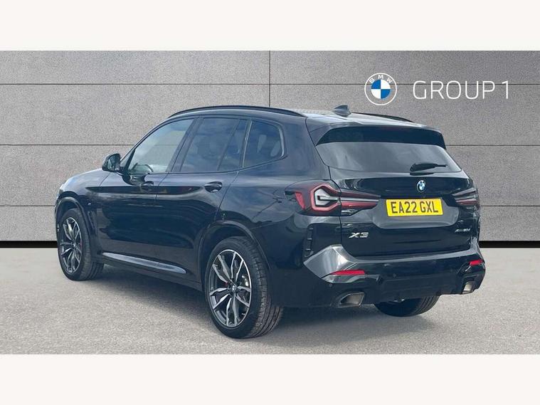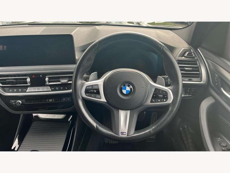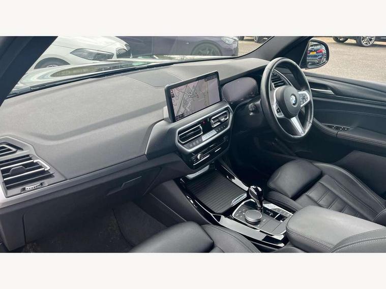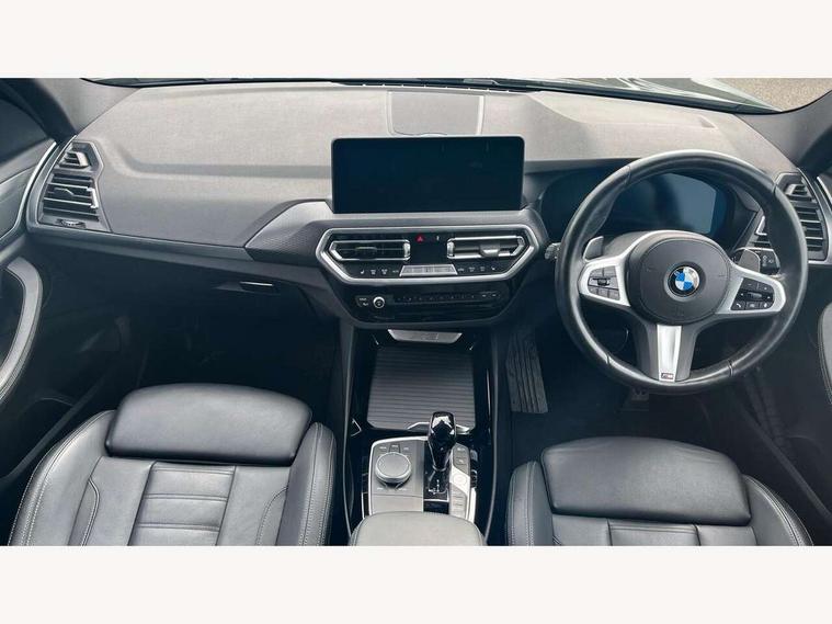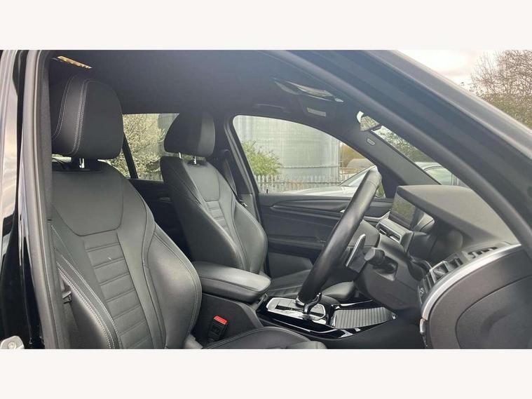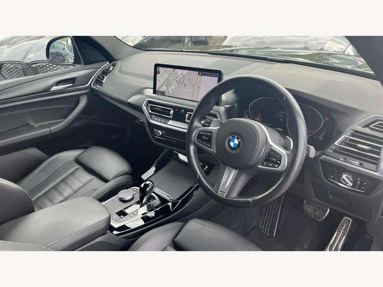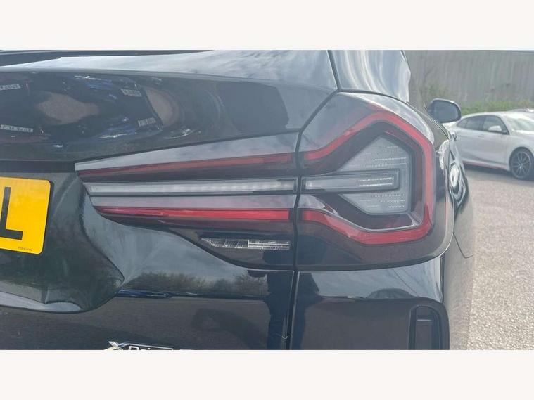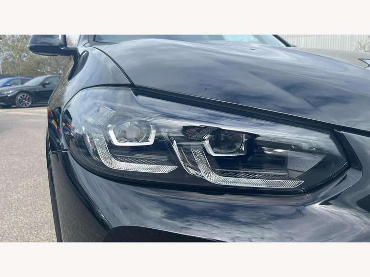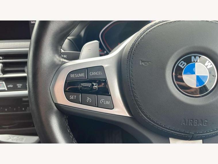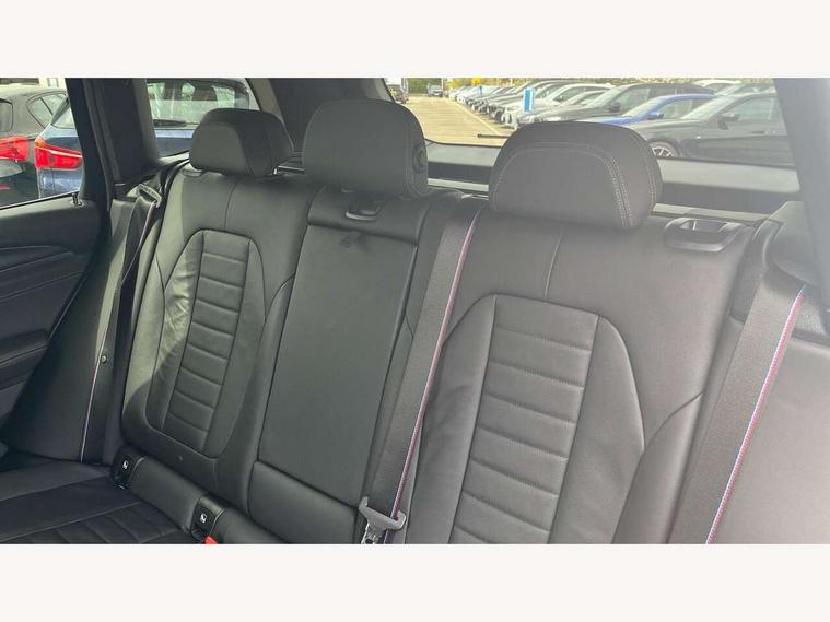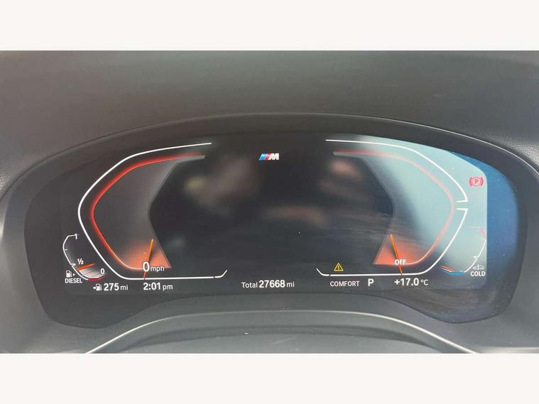Active Guard, Attentiveness assist, BMW Live Cockpit Professional nav system including 12.3" instrument display + 12.3 high resolution control display, BMW Online services, BMW Teleservices, Brake pad wear indicator in front and rear, Check Control warning system for monitoring of lights and door/luggage compartment open warning, Condition based service - BMW service history, electronic service booklet, integrated owner's handbook, Connected drive services, Cruise control with brake function + speed limiter, Electric boot lid, Front/rear Parking distance control, iDrive Controller with 8 favourite buttons, Instrument cluster with speedometer with mph readout, tachometer, fuel gauge and oil temperature gauge, Lights on warning by audio warning signal when ignition is switched off, Oil sensor for level and grade, warning by check control system, On board computer - average speed+fuel consumption, service interval, clock/date, odometer/trip meter, outside temperature display and ice warning, Optimum shift indicator, Personal Profile - automatic lock when driving away selectable, Stop/start system, Variable sports power steering, Automatic transmission with gearshift paddles, Diesel particulate filter, Drive performance control with ECO PRO comfort + sport mode, Incorrect fuelling protection, Larger capacity fuel tank, M sport suspension, Multi-link rear suspension, Performance Control, BMW professional radio/CD/MP3, DAB tuner, Acoustic glazing, Automatic windscreen wipers and automatic headlight, Black finish on B pillars, Body colour door handles, Body colour electric adjust heated aspherical door mirrors, Body colour roof mouldings, Body coloured bumpers, Direction indicator, side repeaters, integrated in exterior mirrors, Dynamic brake lights, Exhaust tailpipes - dual, round, split left and right with chrome finisher, Fingertip control / anti-trap function on electric window, Folding wing mirrors with auto dimming, Follow me home headlights, Front and rear bumper system with replaceable deformation elements, Front and rear electric windows, Gloss chrome tailpipes finishers, Green tinted heat insulating glass, Heated windscreen washer jets, High beam assistant, High gloss black shadow line roof rails, High gloss shadowline exterior trim in decorative moulding side frame/recess cover/guide rail/B, C pillars/mirror frame and triangle with mirror base, High level 3rd brake light incorporating LED Technology, Interior rear view electrochromatic mirror with automatic anti dazzle function, LED tail lights, Lightweight engineering, M aerodynamic bodystyling, Model designation, Rear side wing doors, Rear wing door, Rear wiper, Shark fin antenna, Side exterior M designation badges, Visible VIN plate, Welcome lighting, Windscreen wipers with adjustable interval, 12V power socket in front centre console, 3 rear headrests, 3 zone automatic air conditioning, 4 lashing points to secure luggage, 40:20:40 split folding rear seat with loading system, 5 seats, Ambient lighting, Anthracite headlining, Automatic interior light when door is opened/ignition switched off or via remote key, Foldable storage floor with compartment, Four grab handles integrated in roof lining, Front and rear bottle holders integrated into door trim storage compartments, Front and rear side armrests integrated into door trim, Front centre armrest with storage compartment, Front footwell lights, Front head restraints, Front sports seats, Front/rear courtesy lights with soft on/off dimming, Front/rear reading lights, Heated front seats, Isofix rear child seat preparation, Leather gear knob, Luggage area underfloor compartment, Luggage compartment lighting, M sport leather steering wheel, Multifunction steering wheel, Parcel shelf removeable and storable under boot floor, Reach and rake adjustable steering column, Rear centre armrest with 2 cupholders, Removable / retractable luggage cover, Seat backrest width adjustment, Slope adjustable rear seats, Storage compartment in rear centre console and front/rear door trims, Sun visors with vanity mirrors and ticket pocket, Toolkit located in luggage compartment, Two front cupholders with removable oddments tray/lid, Vernasca leather upholstery, Connected pro pack - X3, Driving assistant pack - X3, ADB - Automatic Differential Brake, Anti-lock braking system (ABS) with brake assist, Automatic Stability Control (ASC), Battery safety cut-off, BMW emergency call, Brake drying, Brake energy regeneration, Braking pre-tensioning, Child locks on rear doors, Cornering brake control (CBC), Crash Sensor - activation of central locking release, hazard warning light and interior lighting, Deactivation of fuel pump in the event of a crash, Driver and front passenger front and side airbags with passenger deactivation and ITS front and rear head airbags, DSC+, Dynamic brake control, Dynamic Traction Control - DTC, Electromechanical parking brake, Hill descent control, Hill start assist, Seatbelt security check for front seats, Side impact protection, Three point seatbelts to all seats with front and outer rear pyrotechnic belt tensioners and seat belt force limiters, Two tone horn, Tyre pressure sensor, Ventilated front and rear disc brakes, Warning triangle and first aid kit, Central locking switch for all doors, fuel filler cap and luggage compartment, Electronic engine immobiliser, Locking wheel nuts, Remote control including two integrated key - one button for open/close all lockable content, windows and separate button for open luggage compartment, Remote control Thatcham category 1 alarm, Start/stop button with Comfort Go keyless engine start and auto Start/stop deactivation button, Low rolling resistance tyres,