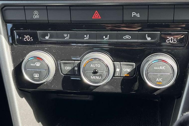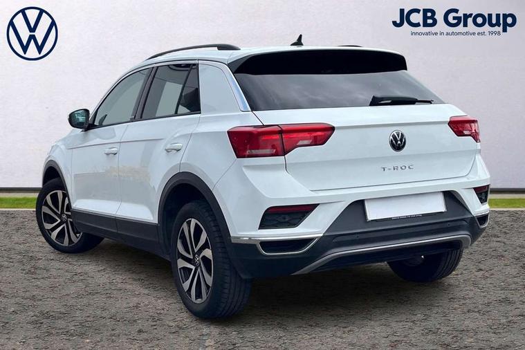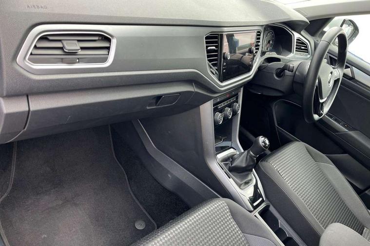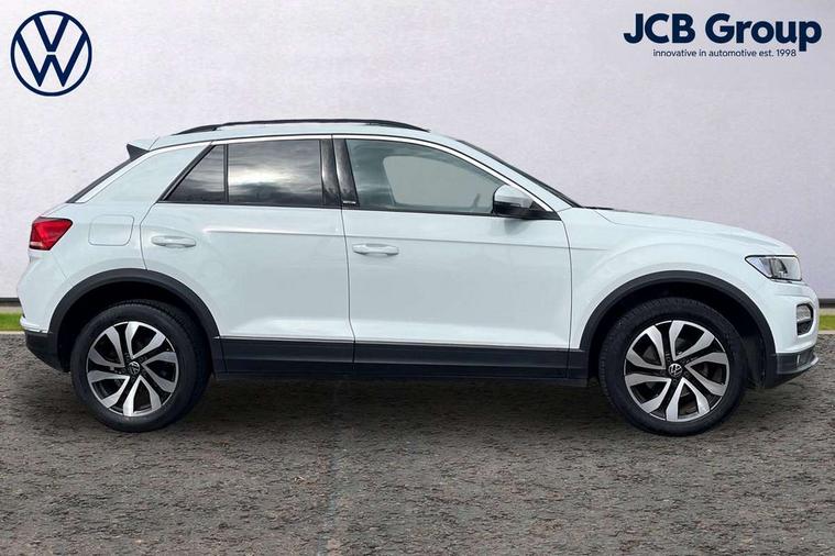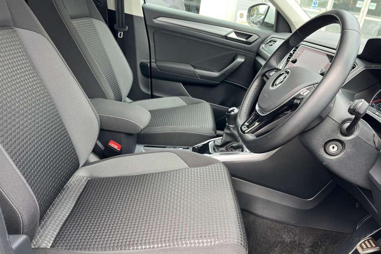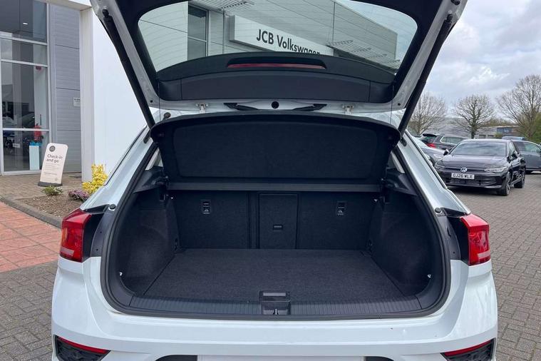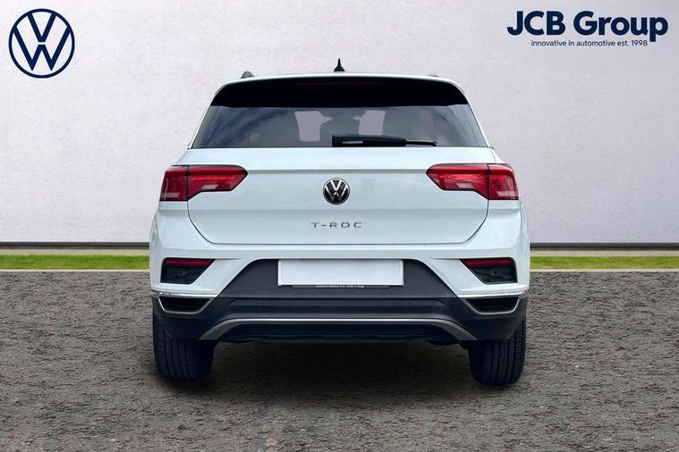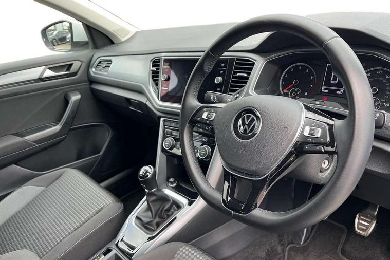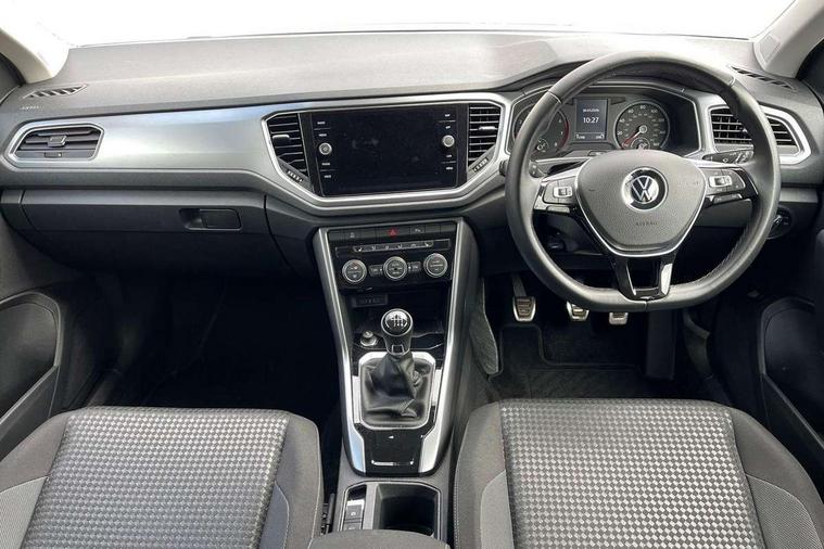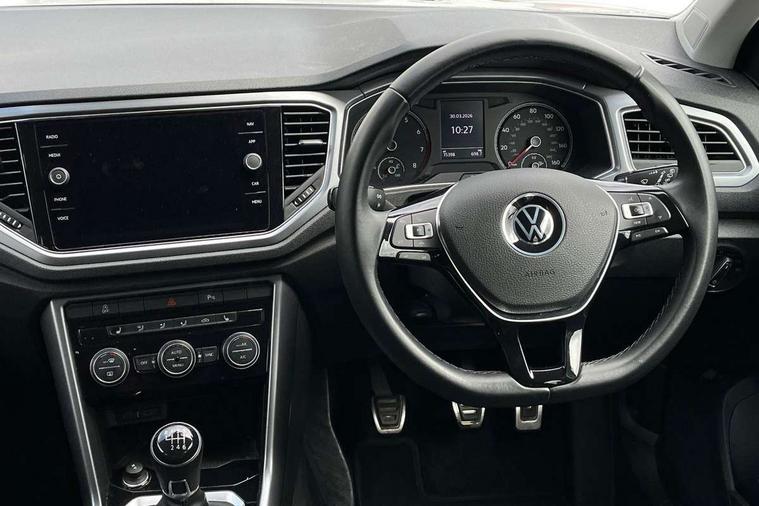 Bluetooth mobile phone interface, Driver alert system with fatigue detection, Driver tips and journey analysis, Emergency call service, Lane keeping system Lane Assist, Modified key software - reduce switch off time for key status change to Long no motion, Online services, Park assist including front and rear parking sensors, Power assisted speed sensitive steering, Service interval indicator, Tailgate/trunk lid release from outside, Think blue trainer driver tips and journey analysis, Warning sound and light for front seatbelts unfastened, Wireless app connect, Battery regeneration during braking, Front shock absorption, Rear shock absorption chassis with increased ride height, Start/stop function with battery regeneration, DAB Digital radio, Diversity antenna for FM reception, Front and rear 6 speakers, Music playback - MP3, WMA and AAC files, Premium USB cable in choice of either Apple or Android smartphone compatibility, SD card slot, Simultaneous pairing of 2 compatible mobile devices, Title and cover art display, We Connect and We Connect Plus functionality, 3rd brake light, Auto dimming interior rear view mirror, Automatic hazard lights activation under emergency braking, Automatic headlight control with LED separate daytime running lights with coming/leaving home function, Black roof rails, Body coloured bumpers and radiator grille with chrome trim and front fog lamps with chrome bezel, Body coloured exterior mirror housings and door handles, Extended roof spoiler, Exterior mirrors aspherical on driver side, convex on front passenger side, External USB type C socket and charging sockets, Front windscreen wiper with intermittent wipe and 4 position delay, Heated rear window, LED Headlights, LED rear combination lamps, LED rear number plate lights, LED tail lamp rear comination lamps, Power windows with comfort operation and circuit breaker, Rain sensor, Rear exhaust tailpipe, Rear fog light on one side and reversing lights on both sides, Rear side wing doors, Rear wash/wipe with intermittent wipe setting, Remote electrically foldable door mirrors, puddle lights and reverse activated passenger's door mirror, 12V power socket in centre console, 3 rear head restraints, 3 seat bench in 2nd row, 4 load lashing points in luggage compartment, Air care climatronic air conditoning system with active combination filter and 2-zone temperature control, Ambient lighting with mirror logo projection, Cloth upholstery, Door and side trim panel in cloth, Drawer under drivers seat, Driver/front passenger seat height adjustment, Front centre armrest, Front comfort sports seats, Front cupholders x 2, Front reading light, Instrument lighting, white adjustable panel illumination, Interior light delay, Isofix child seat preparation, Leather gearshift handle, Load-through provision with cup holder when folded down ('Unsplit rear seat bench, split folding backrest, with centre armrest), Luggage compartment lighting, Lumbar support for driver's and front passengers seat, Non-folding front passenger seat backrest, Single front passenger seat, Storage compartment in left and right luggage area, Storage compartment in rear doors, Storage compartments in driver and front passenger doors, Sunvisors with illuminated vanity mirrors, Variable boot floor, height adjustable and removable, Driver assistance pack without proactive passenger protection - T-Roc, 3 point height adj front seatbelts + pretensioners, 3 point seatbelts in outer rear with ECE label, ABS, Child locks on rear doors, Driver and front passenger airbag with front passenger airbag deactivation, Driver and front passenger safety-optimised head restraints, Drivers seatbelt reminder, Electronic parking brake, Electronic Stability Control (ESC) inc EDL (Electronic Differential Lock) and ASR (Traction Control), Front and rear passengers curtain airbag system including front side airbags, Front assist with city emergency braking and pedestrian monitoring, Front disc brakes, Front seat side impact airbags, Hill start assist, Predictive pedestrian protection, Rear disc brakes, Single tone horn, Tyre pressure loss indicator, Volkswagen roadside assistance, Alarm with interior protection, Anti-theft alarm system with interior monitoring, backup horn, and towing protection, Remote central locking with SAFELOCK, radio remote control with 2 remote control folding keys, Pewter matt decorative inserts for intrument panel and door panels at the front, Trims for alloy wheels,