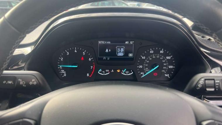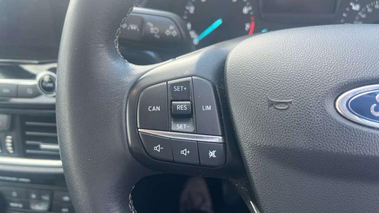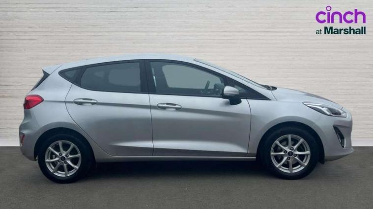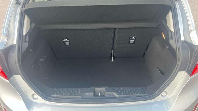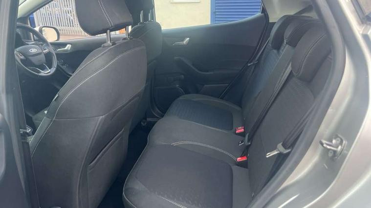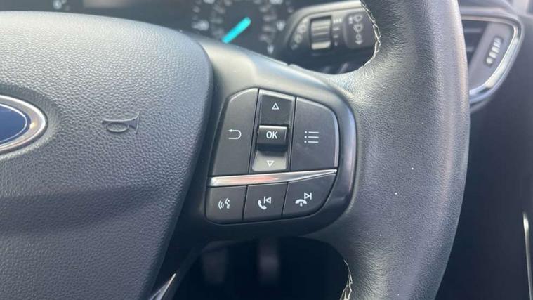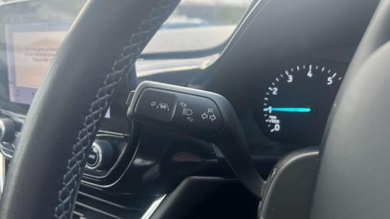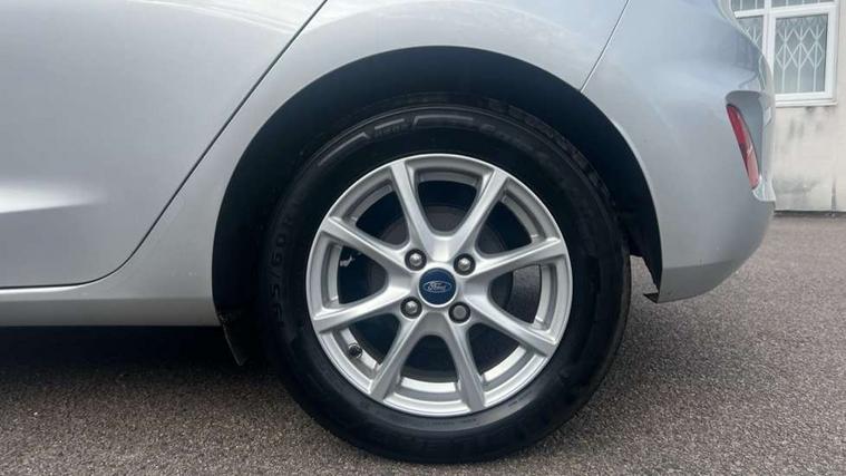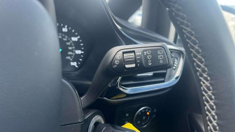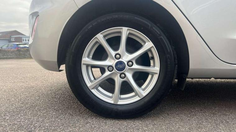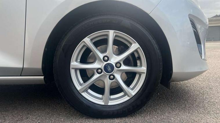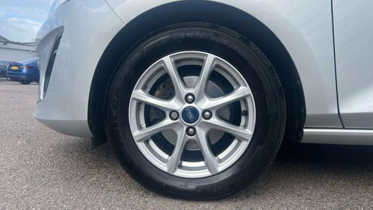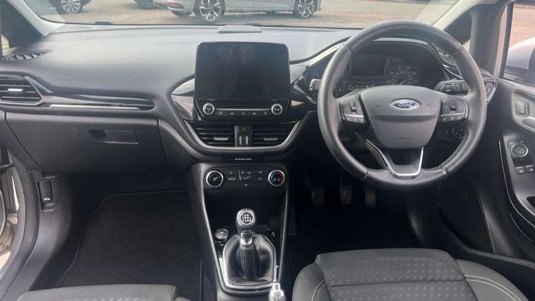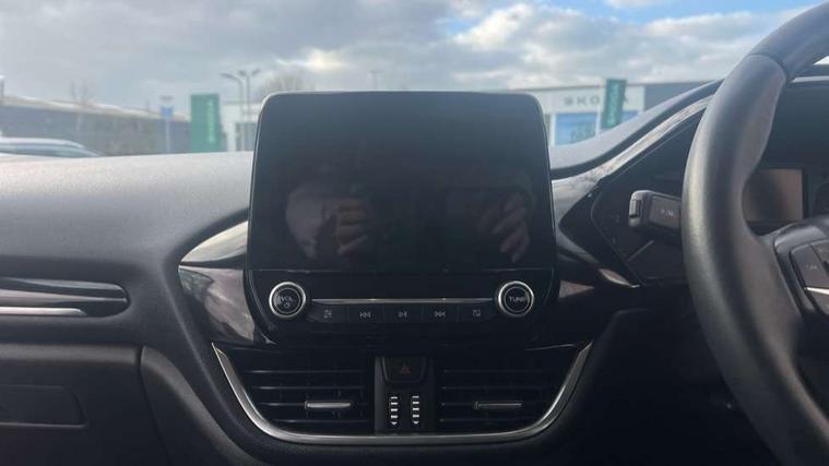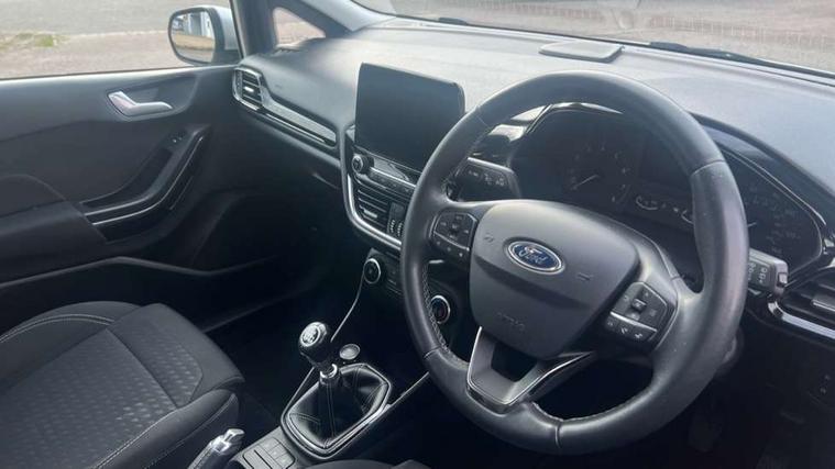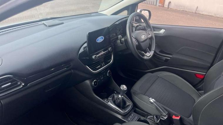Bluetooth system, Electric power steering, Ford easy fuel, Trip computer, 2 USB ports, Auxiliary input socket, DAB Digital radio, Steering wheel mounted controls, Automatic headlights, Body colour bumpers, Body colour door handles, Body colour electric adjustable heated door mirrors with integral indicators, Body colour rear spoiler, Chrome beltline trim, Cornering front fog lights, Electric front windows/one touch facility, Halogen projector style headlights with static cornering lights + LED daytime running lights, Quickclear heated windscreen, Rear wiper, Tinted glass, Upper front grille chrome surround, 12V Accessory socket in centre console, 3 spoke leather trimmed steering wheel with audio control, 60/40 split folding rear seat, Adjustable head restraints, Boot carpet, Chrome inner door handles, Cloth upholstery, Footwell illumination, Front map reading lights, Front seat and rear pockets, Height adjustable driver's seat, Illuminated glovebox, Leather gear knob, Leather trimmed handbrake handle, Load area light, Luxury woven headliner, Manual air conditioning, Overhead console with sunglasses holder, Pollen filter, Rake/reach adjustable steering wheel, Rear centre head restraint, NCAP Pack - Fiesta, 3 point seatbelts on all rear seats, ABS+EBA, Curtain airbags, Driver and passenger airbags, Drivers knee airbag, Electronic stability control with hill start assist, Front passenger airbag deactivation, Front side airbags, Seatbelt warning, Tyre pressure monitoring system, MyKey system, Remote central locking & engine immobiliser, Thatcham Cat.1 alarm,