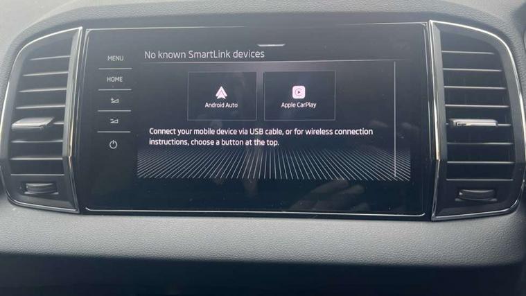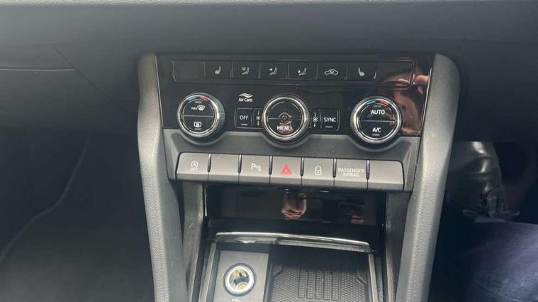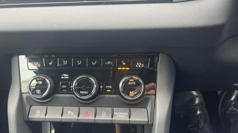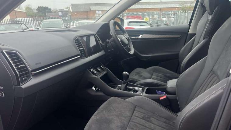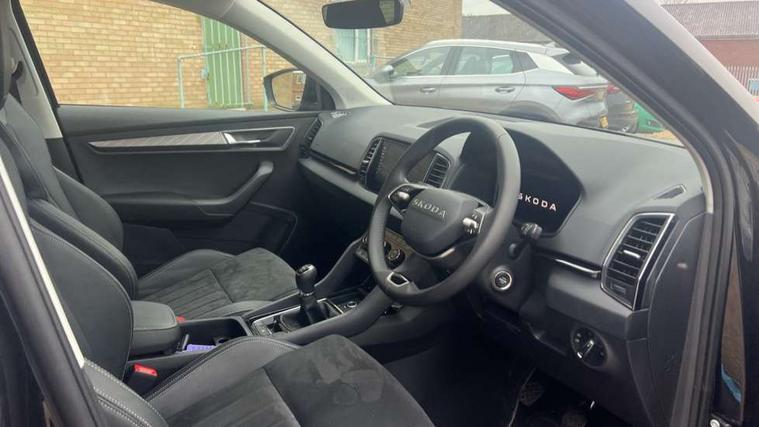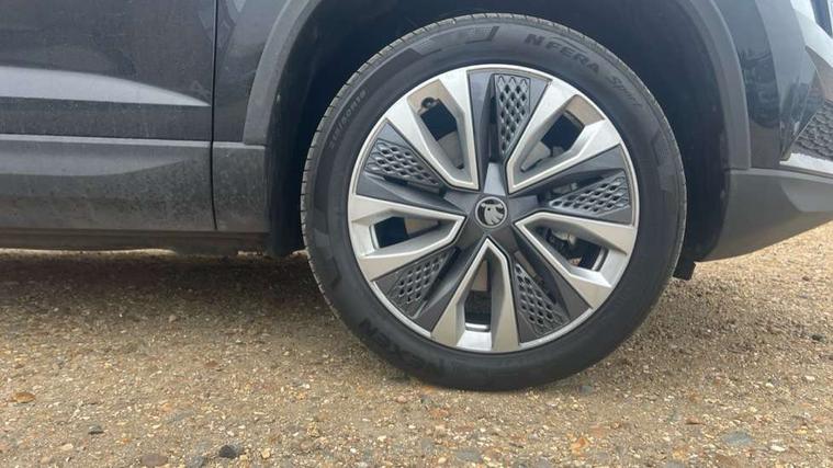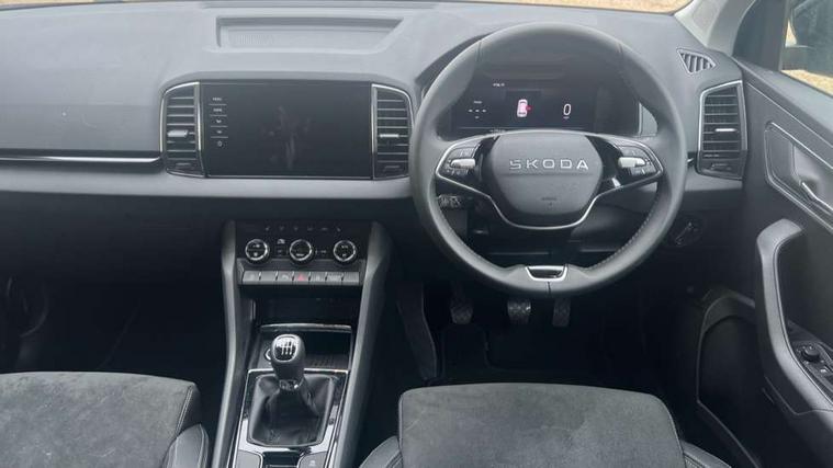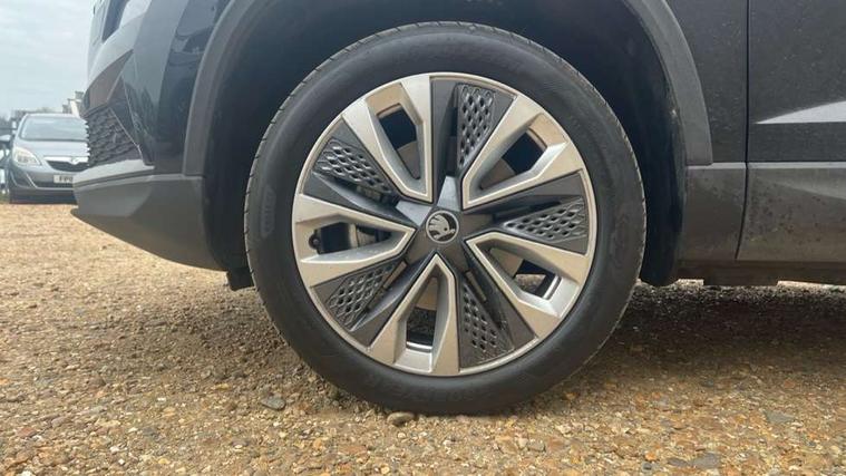 Advanced driver attention and drowsiness monitor, Drive Mode Selection including ECO function, Electro-mechanical PAS, Emergency services call system, Outside temperature gauge, Sensor for driver assistance systems, Service interval indicator, SmartLink wireless for Apple and wired for Android, Start/stop system with regenerative braking, Traffic sign recognition, USB C Port x 2 in front centre console, Virtual Cockpit - 10.25" digital display, Virtual pedal with electrically operated boot door, Wireless smartphone charging, DAB radio with Bluetooth, USB connection, Acoustic glass, Aero front windscreen wipers with intermittent function, Auto dimming rear view mirror with light and rain sensors, Black electric window control buttons, Body colour door mirrors and handles, Electric front and rear windows with child proof lock, Extended rear roof spoiler, Heated rear windscreen, LED daytime running lights, LED rear lights with high functionality welcome effect and dynamic indicators, Light assistant (coming/leaving home/tunnel light), Plastic scuff plates in door apertures, Privacy glass, Rear side wing doors, Rear window wiper with washer system and intermittent control, Safety reflectors on front doors, Third brake light, Unique dark chrome design logo on alloy wheels, 1.5 litre bottle holders in driver and front passenger door panels, 12V socket in boot, 12v socket in front centre armrest with storage compartment and rear air vents, 2 spoke leather heated multifunction steering wheel, 2 x Tablet holder, 3 rear height adjustable headrests, 3 seat bench in 2nd row, 4 foldable roof handles with rear coat hooks, Black floor carpet, Cargo elements in boot, Chrome inner door handles, Decorative door sills with KAROQ badging, Foldable hooks in the boot, Front head restraints, Height adjustable front three point seats belts with tensioners, Height/reach adjust steering wheel, Ice scraper, Illuminated glovebox, Illuminated luggage compartment, Interior noise suppression, Isofix child seat preparation for front passenger seat, Isofix child seat preparation outer rear, Manual lumbar support for front seats, Pearl grey interior ceiling, Pen holder, Pollen filter, Rear boot cover, Rear package tray, Rear reading lights, Rubbish bin door, Safety vest holder, Single front passenger seat, Skoda lettering on steering wheel, Storage box in upper central dashboard closed, Sunvisors with illuminated vanity mirrors, Textile floor mats, Ticket holder, Columbus pack - Karoq, Design Pack - Karoq, Non Smokers pack, Parking pack - Karoq, Automatic door unlocking in case of crash, Automatic fuel cut off in case of crash, Driver airbag, Electronic parking brake with auto hold function, Emergency rear braking signal, ESC (incl. ABS+MSR+ASR+EDS+HBA+DSR+RBS+MKB), Front side airbags, Head airbags, Hill hold control, Knee airbags, Passenger airbag with switch-off function, Pedestrian monitor, Power operated child safety locks, Seatbelt reminder signalisation and pretensioner for all seats, Three point seatbelts rear, Two tone horn, Tyre pressure monitor, Alarm with interior monitoring, back up horn and tilt sensor with safe function, Electronic engine immobiliser, Keyless entry and start/stop, Remote central locking with 2 remote folding keys, Black centre console, Chrome framed air vents, Satin black dashboard, Anti-theft wheel bolts protection, Breakdown and tool kit,