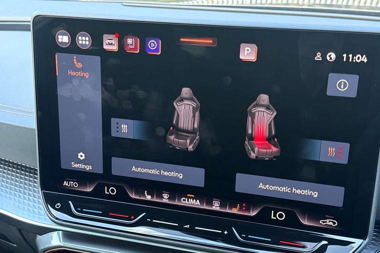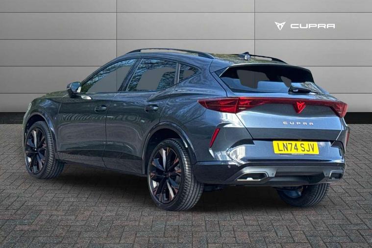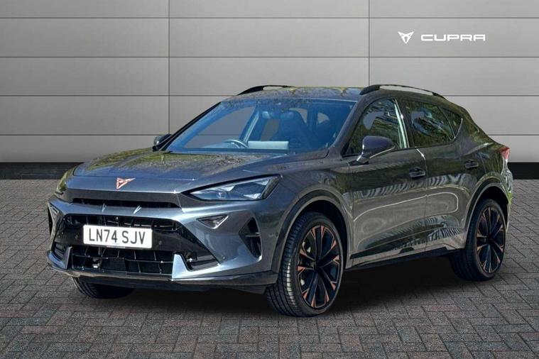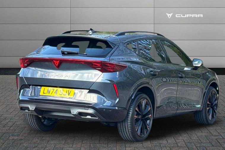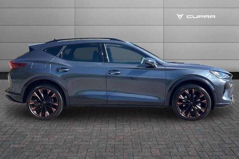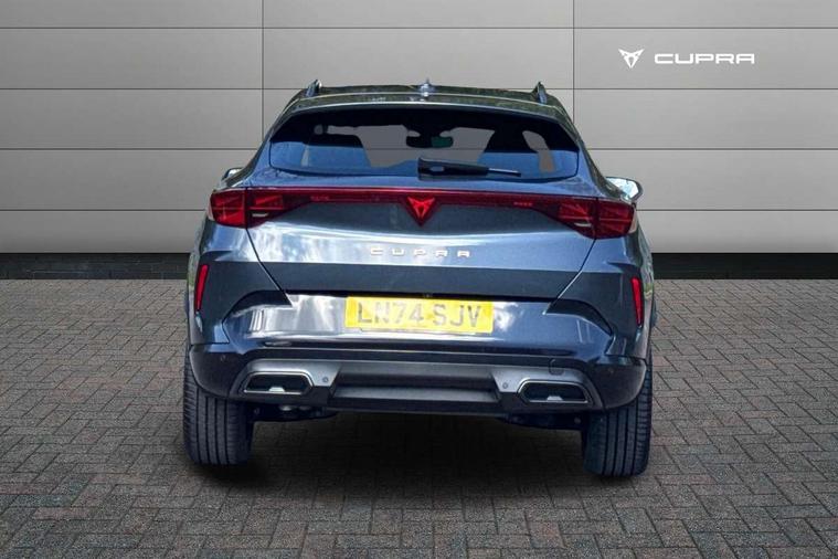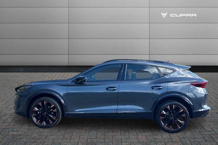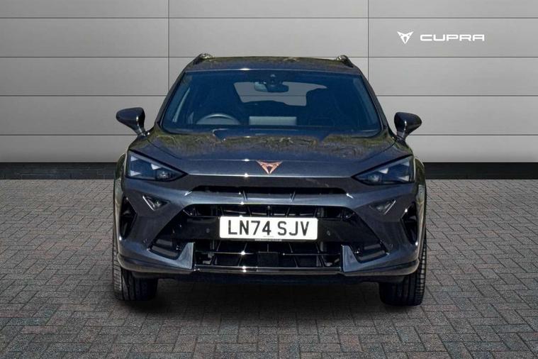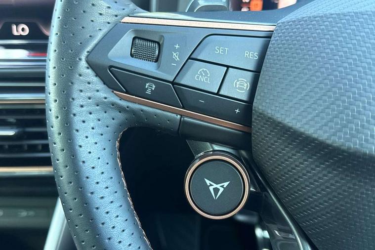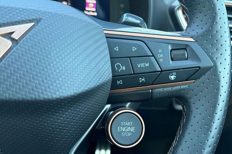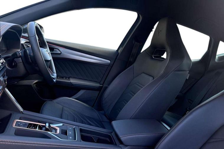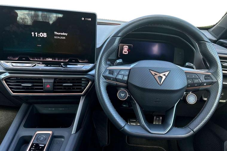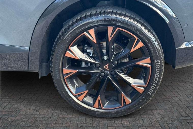 10.25" digital cockpit and configurable dashboard, Adaptive cruise control with follow-to-stop and speed limiter, Advanced driver alert system, Advanced lane assist with semi-automatic vehicle control in a medical emergency and traffic jam assist, Driving profile selection, Dynamic road sign display, Emergency steering support with turn assist, Forward collision warning with automatic braking, Full link phone integration, Intelligent park assist, Progressive steering, RPM, trip computer, outside temp gauge, instrument light brightness, low fuel warning light, lights on reminder, gearshift indicator, Service interval indicator, Side and exit assist, Start/stop system with regenerative braking, Top view camera, Virtual pedal and electric tailgate, Voice control system, Wired Android Auto, Wireless apple carplay, Wireless phone charger, CUPRA sport suspension, Electronic locking differential and dynamic traction support, 2 front and 2 rear USB type C sockets, Media system with navigation, 12.9" touchscreen display, voice control, DAB, steering wheel mounted controls, Auto dimming rear view mirror, Body colour door handles, Body coloured bumpers, Dark grey wing mirror, Daytime running light with automatic headlight control and coming home feature, Door panel ambient lighting, Dynamic headlight range control, Electric front/rear windows, Electrically adjustable heated and folding door mirrors with memory function, Gloss black roof rails and window surrounds, High beam assist, LED 3rd brake light, LED front fog lamps with cornering function, LED Headlights, LED Taillights with dynamic indicator, Rain sensing wipers, Rear diffuser with black simulated exhaust pipes, Rear fog lights, Rear side wing doors, Rear wash/wipe, Tinted rear windows, Welcome lights (within exterior mirror housing), 12V socket, 2 front and 2 rear reading lights, 3 seat bench in 2nd row, 60/40 split rear bench seat with armrest and mechanical seat release, Black headlining, Black interior roof lining, Cupra sports pedals, Dust/pollen filter, Electrically adjustable front seats with lumbar support and memory function, Front and rear head restraints, Front centre armrest, Heated front seats, Heated supersports multifunction leather steering wheel with satellite buttons and gear shift paddles, Height/reach adjust steering wheel, Illuminated aluminium doorsteps, Illuminated interior front door sills, Illuminated sunvisor with mirror, Isofix, Leather dashboard, door insert and side trim panel, LED smart wraparound lighting, PVC/Leather upholstery, Satellite steering wheel, Single front passenger seat, Storage pockets on rear of front seats, Three zone climate control with control panel in rear, Variable luggage/load compartment floor, 3 point seatbelts on all rear seats, ABS, Brake control system - ESC and brake booster, Child proof door locks, Driver and front passenger airbags with front passenger airbag de-activation, Electronic parking brake, Front and rear disc brakes, Front side curtain airbags, Hill hold control, Pre-crash front and rear seat belt tensioner, window closure and hazard lights, Public e-call, Seat belt reminder for front and rear seats, Tyre pressure monitoring system, Anti theft alarm system, KESSY Advanced - Keyless start, keyless entry with SAFELOCK, Locking wheel bolts, Copper and aluminium interior detailing,