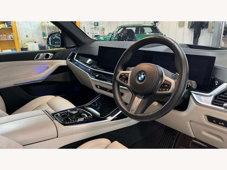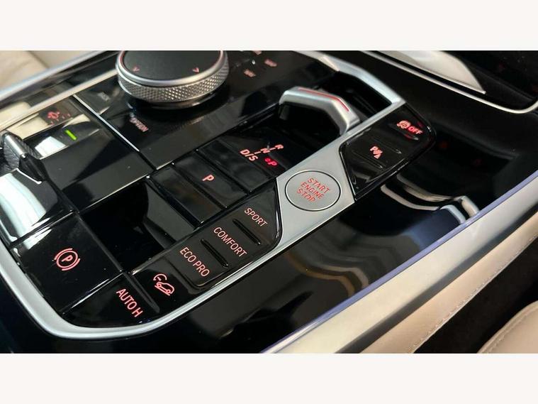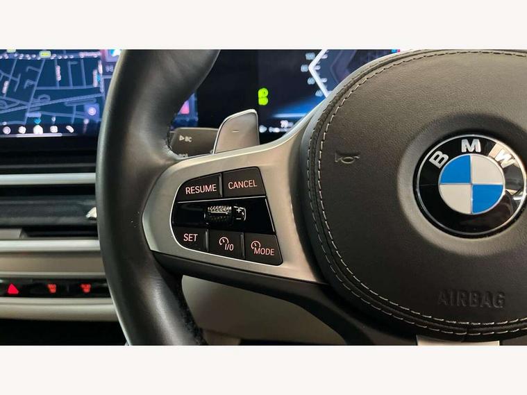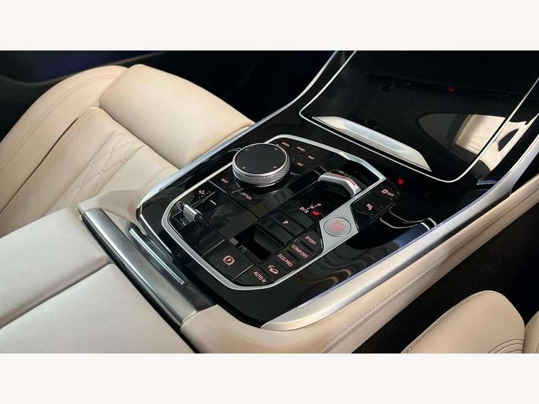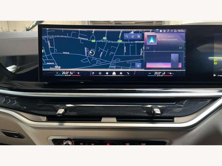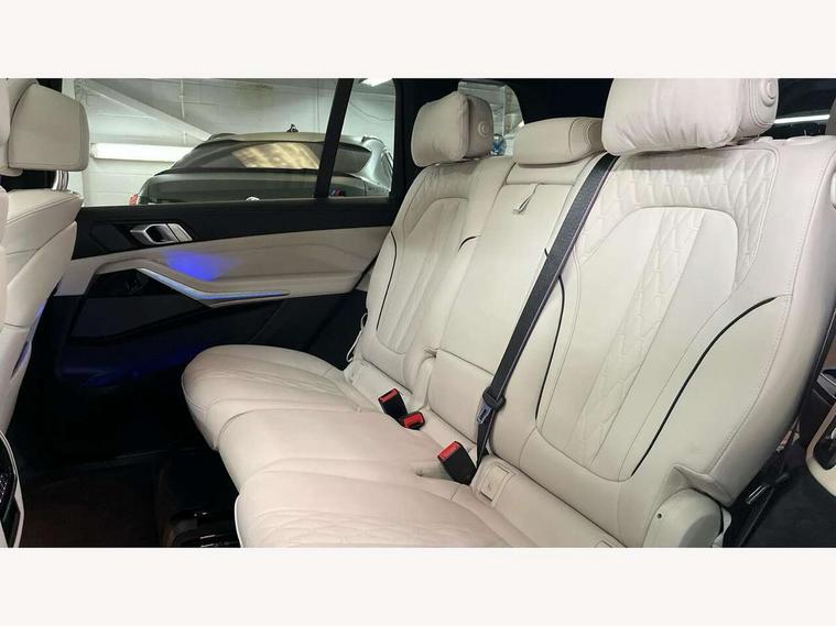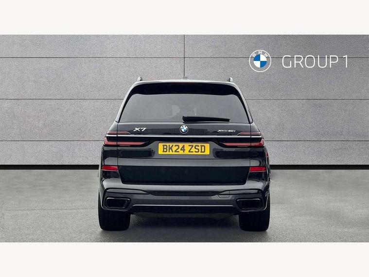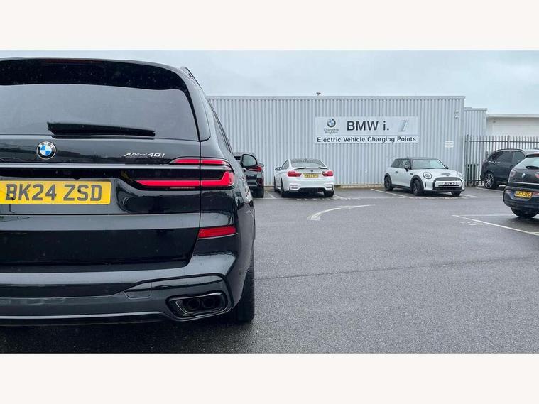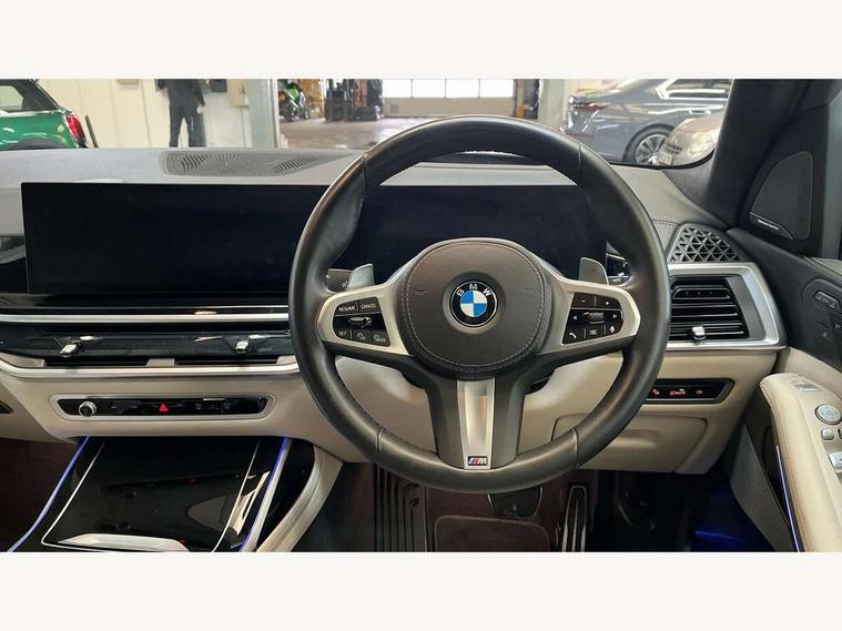 Attentiveness assist, Automatic start/stop function, Automatic tailgate operation, BMW ConnectedDrive online services, BMW Drive recorder, BMW gesture control, BMW Teleservices, Brake pad wear indicator in front and rear, Condition based service, Electric power steering with Servotronic steering optimised at all speed ranges, Integrated owner's handbook, Live Cockpit Professional with head up display including 12.3" instrument cluster and 14.9" central display, Parking assistant pro including reversing assistant, PDC, lateral parking aid, reversing assist camera, parking drive off monitoring, Speed limiter, 48V Mild hybrid technology, 8 speed automatic with steptronic transmission including automatic hold function and gearshift paddles on the steering wheel, Drive experience switch with comfort mode + ECO PRO + sport mode, Permanent all wheel drive, DAB radio, Personal eSim, Acoustic glazing, Adaptive air flap control bars in high gloss black, Air breather and door claddings in high gloss chrome, Aluminium roof rails, Aluminium Running Board, Body coloured wheel arches, Dynamic brake lights with LED technology, Electrically adjustable and heated aspheric folding side mirrors with auto dimming, electric fold in function, automatic parking function, Exterior and central air inlets in front bumper painted pearl chrome, Follow me home headlight function, Frameless interior mirror, Front and rear electric windows, Front ornamental grille struts in chrome high gloss, Heated windscreen washer nozzles, High beam assist, High gloss black shadowline trim in side/window frame, window recess cover, window guide, B and C pillar, mirror triangle, mirror base, mirror frame, Integrated turn indicators (door), Kidney grille iconic glow, LED daytime running lights, LED rear lights, LED third brake light in rear spoiler, One piece front ornamental grille frame in pearl gloss chrome, Rain sensor with automatic headlight activation and windscreen wiper control, Rear side wing doors, Side window graphic in satinated aluminium, Sump guard front and rear painted in silver, Trailer stabilisation logic, 12V - Power sockets with 2x centre console and 1x luggage compartment, 2 seat bench in 3rd row, 3 seat bench in 2nd row, 40:20:40 split folding rear seat backrests, Additional storage compartments, BMW inscription in front and rear door entry sills with illuminated, Centre console includes storage compartment, Compartment in front of cupholder, Driver and front passenger sunvisors with illuminated vanity mirrors and ticket holder, Electrical steering column with adjustable height and length with activation and control on the steering column, Front and rear colour co-ordinated with all standard carpet colours, Front and rear door pockets, Front and rear side armrests integrated into door trim, Grab handles, Height adjustable front headrests, Height adjustable rear headrests, Lockable glove compartment, M leather steering wheel, Nano filter, Single front passenger seat, Soft close doors, Storage tray and compartment with lid in centre console, Wireless charging tray, Additional storage compartment pack - X7, Ambient light interior pack - X7, Connected Package Professional - X7, Interior lighting pack - X7, Luggage compartment pack - X7, M aerodynamics pack - X7, 3 point seatbelts on all seats, front pyrotechnic belt tensioners, stopper and belt force limiters, front and outer rear seats, Acoustic protection for pedestrians, Active protection, Airbag - Front driver and passenger, side airbags and Head airbags, Anti lock braking system (ABS) with cornering brake control, Automatic Stability Control (ASC), BMW emergency call, Child seat ISOFIX attachment rear outer seats in 2nd row and both seats in 3rd row includes top tether, Comfort cushion seats for outer seats in 2nd row, Crash sensor inclu activation of airbags, interior light, safety battery terminal clamp, hazard warn flasher, unlock doors, deactivation of fuel pump, DSC - Dynamic Stability Control, Dynamic Traction Control - DTC, Electromechanical parking brake with automatic drive away release and auto hold function, Front and rear brake discs with interior ventilation, Hill descent control, Integrated braking system, Manual child lock in rear doors, PC iBrake PostCrash approach control warning with light braking function, Tyre pressure monitoring system, Tyre pressure sensors, Variable torque distribution, Warning triangle and first aid kit, Alarm, Central locking including 2 vehicle keys with integrated emergency key, Comfort access system, Engine immobiliser, Locking wheel bolts, Galvanic embellisher for controls,