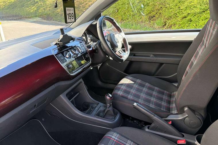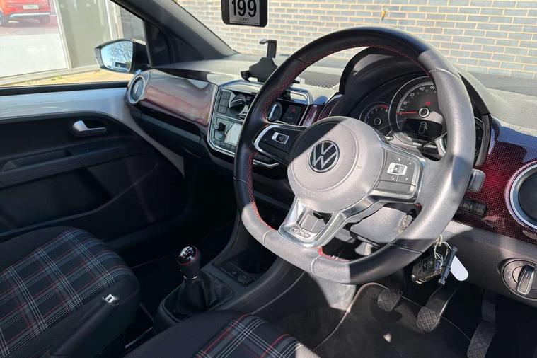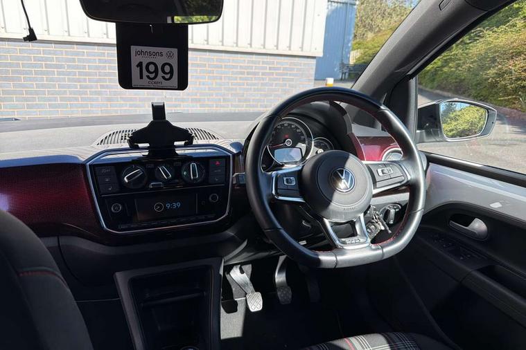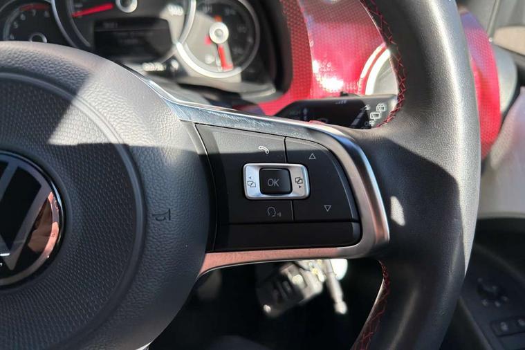 Digital clock, Lane assist, Multifunction computer, One touch indicators, Rev counter, Speed sensitive power steering, Speedometer, electronic odometer and fuel gauge, Volkswagen connect, Body lowered sports suspension, Galvanished body, Start/stop function with battery regeneration, Composition colour system with 5" screen, DAB, AUX in socket, SD card, MP3/WMA/AAC, 4 X 20W, bluetooth, audio connection and USB connectivity, Smartphone answering button on multifunction steering wheel with audio over the vehicle speaker system, Smartphone interface navigation system, Antenna, Black decals above door sill, Black radiator grille, Body colour door handles, Body coloured bumpers, Chrome trimmed surround on light, Door sill protectors in stainless steel with black honeycomb pattern inset and GTI logo, Electric front windows, GTI badge, Halogen clear headlights with integrated indicators and range adjustable, Heated rear window, High level 3rd brake light, LED rear number plate lights, Left side chrome exhaust tailpipe, Manually dimming rear view mirror, Rear fog lights, Rear tailgate spoiler in gloss black, Rear tinted glass from B pillar backwards, approx 65% tinted, Rear wash/wipe, Red Stripe on lower tailgate, Red stripe with chrome detailing on lower radiator grille, Unique GTI badging on front wings, rear tailgate and front radiator grille, Windscreen wipers intermittent wipe, 12V accessory power point in centre console, 2 cup holders in the front and rear centre console, 2 separate seats in 2nd row, Ambient lighting red below upper dashpad, Black roof lining, Cooled glovebox, Driver seat height adjust, Drivers and front passengers easy entry sliding seat with memory function, Drivers and front passengers sun visors with vanity mirrors, Easy entry aid for access to rear seats with memory function, Folding front seat backrest release on front passenger seat, Front and rear carpet mats with contrast stitching in red and grey, Front head restraints, Front sports seats, GTI logo and red contrast stitching on steering wheel, Heating/ventilation unit with 4 speed fan, Height adjustable rear seat head restraints with red contrast stitching (x2), Height adjustable steering wheel, Interior light delay, Isofix Preparation 2 Rear child seats, Jacara red cloth upholstery, Jack and tool kit, Luggage compartment cover, Luggage compartment lighting, Multifunction leather trimmed three-spoke steering wheel, gear knob and handbrake grip, Single front passenger seat, Storage compartment in front doors, Two rear seats with 60/40 split folding rear seat backrest, Variable boot floor, GTI styling pack - Up, Winter pack - Up, 3 point front seatbelts with pre-tensioners, Anti-lock braking system with EDL, EBD + TCS, Curtain airbags for front and rear passengers, Driver and front passenger airbag with front passenger airbag deactivation, Driver/front passenger side airbags, Engine drag torque control, Front disc brakes, High tone horn, Hill hold control, Hydraulic Brake Assist (HBA), Rear drum brakes, Red brake calipers, Two 3 point rear seatbelts, Tyre pressure loss indicator, Volkswagen roadside assistance, Warning buzzer and light for front and rear seat belts if unfastened, Electronic engine immobiliser, Locking fuel filler cap, Remote central locking with 2 remote folding keys, Chrome surrounds to the air vents, radio controls and air conditioning, Matt chrome trim on interior door handles, infotainment system + instrument cluster, Red pixels dash pad, 17" Oswald alloy wheels with anti theft wheel bolts, Tyre mobility system,