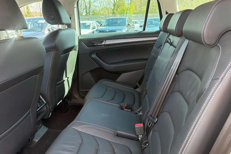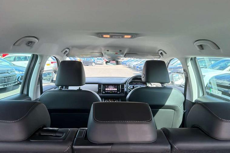Bluetooth system, Digital voice enhancement, e call+, ECO Stop/start function, Exterior temperature indicator, Rear view camera, Smartlink wireless for apple carplay and wired for android auto, Speed limiter, Tailgate unlocking from outside, USB C Port x 2 in front centre console, Virtual Cockpit - 10.25" digital display, Wireless charging, 8 Speakers, DAB Digital radio, Aero front windscreen wipers with intermittent function, Aero rear window wiper, Auto dimming rear view mirror, Black wheel arch surrounds, Body colour bumpers, Body colour door mirrors and handles, Chrome front grille, Chrome roof rails with chrome window surround, Electric adjustable/heated/folding door mirrors, driver side auto dimming with boarding sports and memory function, Electric front and rear windows, Extended rear spoiler with finlets in gloss black, Front fog lights, Full LED matrix headlights with AFS (adaptive front light system), cornering function and AWL (all weather lighting system), Headlight washers, Heated rear window, Invisible tailpipe, LED daytime running lights, LED rear fog light, LED third brake light in rear spoiler, Light assistant (coming/leaving home/tunnel light), Off-road style lower front bumper element, Privacy glass, Rain and light sensors, Rear LED lights (high functionality) with welcome effect and dynamic indicators, Rear side wing doors, Safety reflectors on front and rear doors, Window control switches with black trim, 12V socket in boot, 2 rails with 2 hooks, 2 seat bench in 3rd row, 2 spoke multi-function leather steering wheel with paddle shift, 3 seat bench in 2nd row, 4 foldable roof handles with rear coat hooks, 60:40 foldable rear seat with sliding adjustment and backrest angle adjustment, Bottle holders in door panel in the 1.5 litre front and 1 litre rear, Cargo storage compartments, Chrome headlight control button, Chrome interior door handles, Coat hooks on B pillar, Covered storage compartment on driver side, Decorative door sill covers, Front and rear door armrest with black adductor trim, Front centre armrest with storage compartment, cup holder and 12V socket, Front courtesy lights, Gear shift lever with chrome frame and black gloss insert, Grey stitching in front and rear armrests and door armrests + door inserts, Height adjustable front headrests, Illuminated glovebox, Illuminated luggage compartment, Isofix child seat fittings in outer rear seats with top tether, Manually adjustable steering column, Net programme in boot (1x horizontal Net, 2x vertical Nets), Overhead glasses storage compartment, Pollen filter, Rear centre armrest with cupholders, Single front passenger seat, Sliding trunk cover, Small Bags on the inner sides of the front backrests, Sunvisors with illuminated vanity mirrors, Three rear height adjustable headrests, Ticket holder on A Pillar, Umbrella in door panel, Variable boot floor, Auto door release and activation of warning lights in the event of an accident, Driver and front passenger airbag with knee airbag and front passenger airbag deactivation, Electronic parking brake with hill start assist, Emergency rear braking signal, ESC (incl. ABS+MSR+ASR+EDS+HBA+DSR+RBS+MKB), Front assist with autonomous emergency braking, Front side airbags with curtain airbags, Fuel cut off safety device, Height adjustable front 3 point seatbelts + pretensioners, Hill hold control, Rear disc brakes, Safety vest holder in door, Seat belt reminder for all seats, Three point rear seat belts, Two tone horn, Tyre pressure monitor, Alarm with interior monitoring and tilt sensor with safe function, Anti-theft wheel bolts, Immobiliser, Keyless entry and start system (KESSY), Remote central locking with 2 keys, Grey stitching in dashboard, Linear diamonds decorative inserts, Temporary spare wheel (space saver),