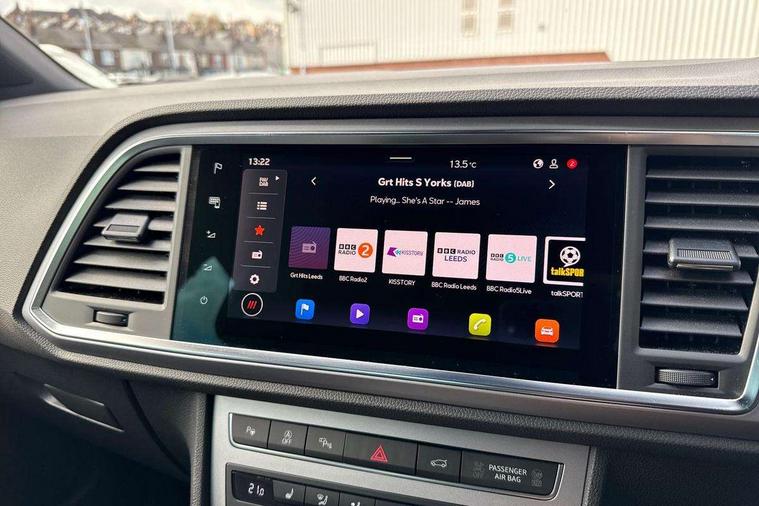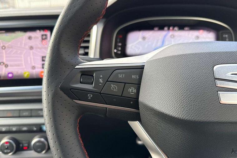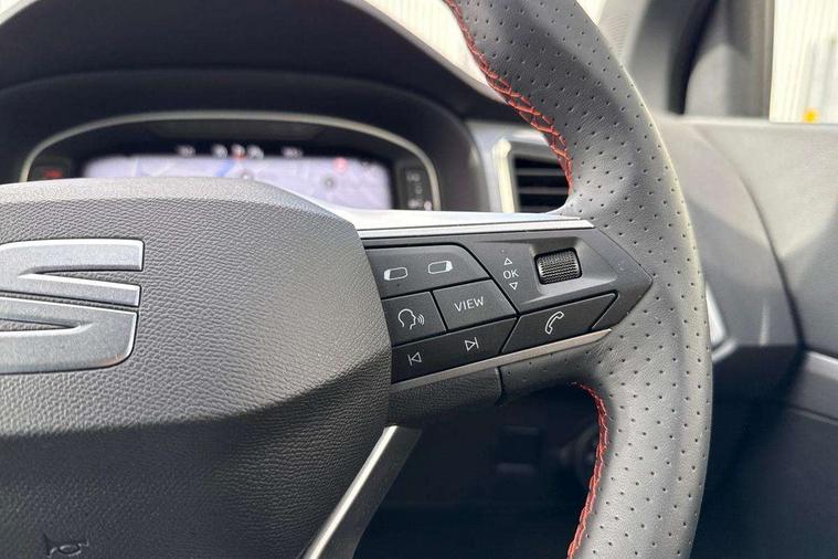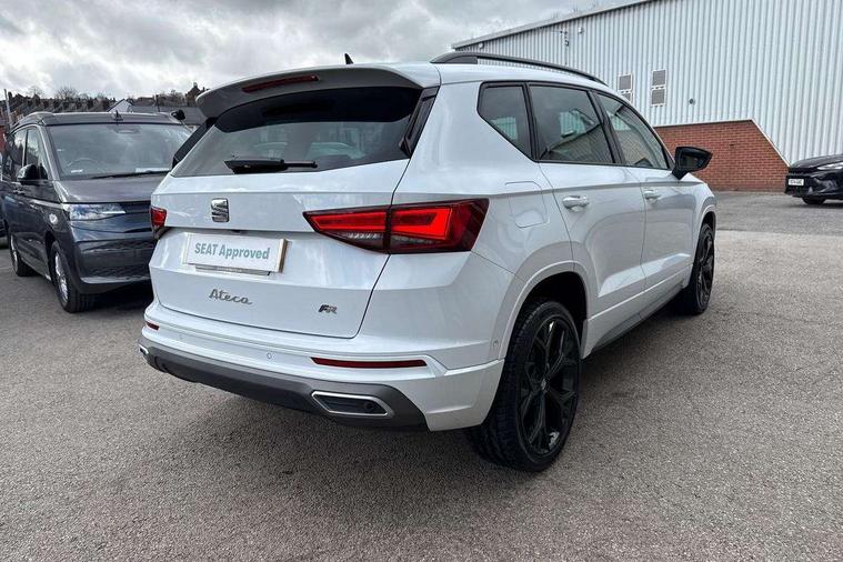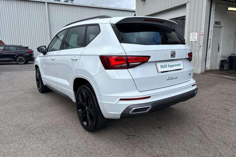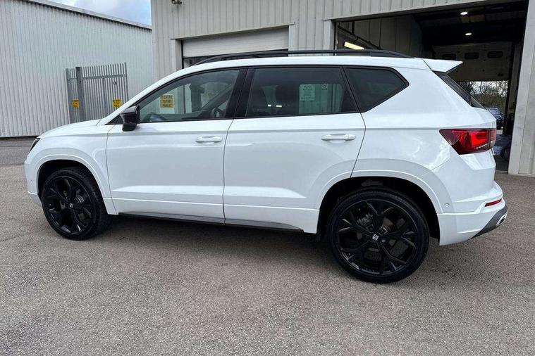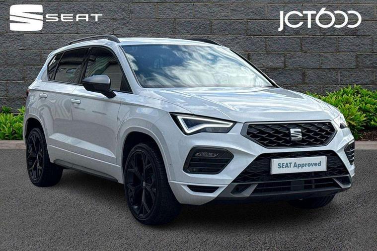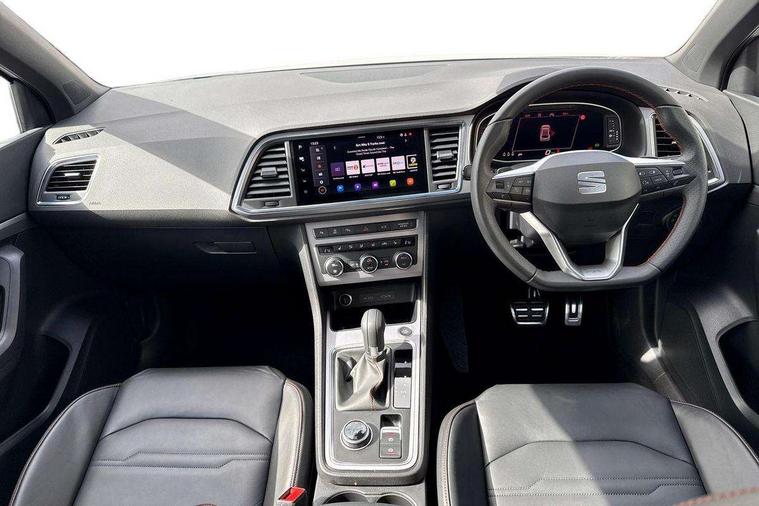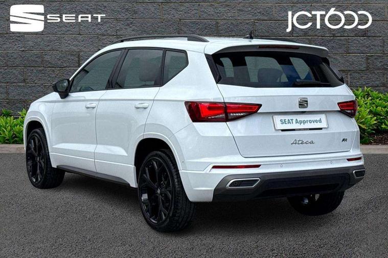 10" Digital cockpit, Bluetooth audio streaming with handsfree system, E-call, Electric tailgate with virtual pedal, Outside temperature gauge, Progressive power assisted steering, SEAT drive profile with driving experience button - Normal, Sport, Eco and Individual mode, gearshift, steering and throttle response, Self parking functionality (includes front and rear parking sensors), Speed limiter, Start/stop system, Top view camera with rear view camera, Trip computer, wired and wireless full link smartphone integration, Wireless phone charger, Steering wheel mounted audio/phone controls, Black roof rails, Black side window trim, Body colour bumpers, Body coloured wheel arch surrounds, Chrome front grille frame, Dark tinted rear windows, Daytime running lights, Door mirrors with welcome light silhouette, Dynamic headlight range control with self adjusting whilst driving, Electric adjustable/heated/folding door mirrors, Front and rear electric windows, Illuminated aluminium front door sill, LED 3rd brake light, LED headlamps with lens and LED front fog lamps with cornering function, LED rear tail lights with dynamic indicators, Rear exhaust tailpipe, Rear fog lights, Rear side wing doors, Rear spoiler, Rear wash/wipe, Variable front intermittent wipers, 12V socket in front, 3 seat bench in 2nd row, 60/40 split folding rear seat, Aluminium pedals, Black greenhouse interior roof, Dual zone climate control, Electric adjustable driver seat with memory function, Front and rear head restraints, Front centre armrest, Front seat back storage pockets, Heated front seats, Height adjustable passenger seats with lumbar adjustment, ISOFIX points in outer rear seats with top tether anchorage points, Leather sports steering wheel and gear knob, Leather upholstery with front comfort seats, Rear armrest and easy back seat release mechanism from boot, Single front passenger seat, Steering wheel mounted gearshift paddles, Convenience pack - Ateca, Interior lighting pack - Ateca, Navigation system pack with DAB - Ateca, Safety and driving pack (L) - Ateca, Safety and driving pack with attention and drowsiness assist - Ateca, 3x3 point rear seatbelts, ABS, Traction control system (TCS), Electronic stability control (ESC) and Electronic differential lock system (XDS), Airbags - Driver and front passenger airbag with deactivation, front side, two curtain and driver's knee airbags, Electric parking brake with auto hold function, Front and rear seatbelt reminder, Hill hold control, Manual rear child locks, Single tone horn, Tyre pressure monitoring system, Alarm, Keyless entry, Locking wheel bolts, Remote central locking, Chrome interior detailing, 19" Exclusive alloy whelels 36/10 in glossy black, Tool kit,