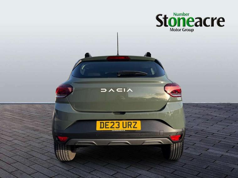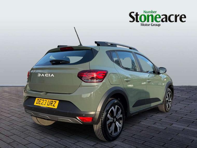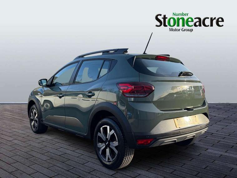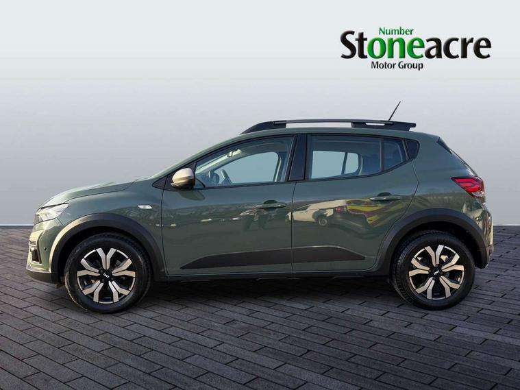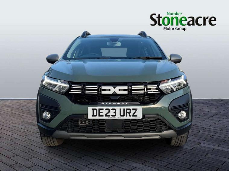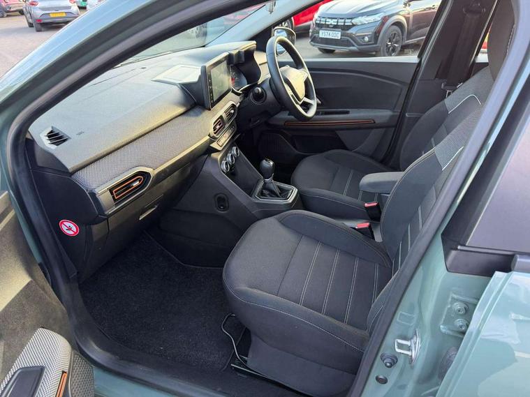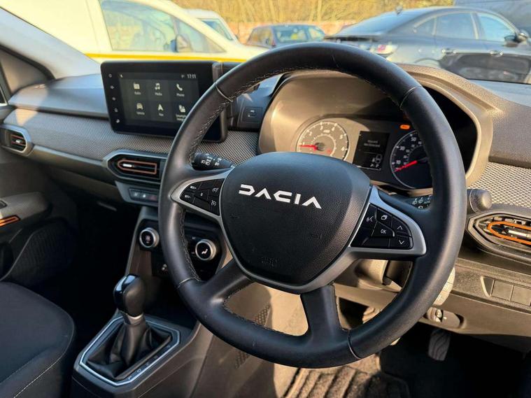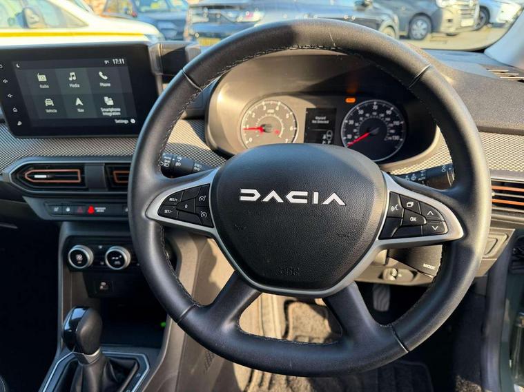 3.5" TFT instrument panel with on-board computer, Blind spot warning, Cruise control with speed limiter, eCall emergency call system, Eco mode, Electric power assisted steering, Front parking sensors, Rear parking sensors, Rev counter, Reversing camera, Stop/start system, 8" MediaNav - DAB Radio, Wifi smartphone replication, Bluetooth, 6 speakres, Apple CarPlay and Android Auto, USB connection for data transfer and charging, USB socket, 3 speed windscreen wipers, Auto lighting, Automatic wipers, Body colour door handles, Body colour door mirrors, Body coloured bumpers, Chrome longitudinal roof bars, Chrome modular roof bars, Chrome radiator grille, Chrome stepway inscription on radiator grille and roof bars, Drivers one touch electric windows, Electrically adjustable and heated door mirrors, Front electric windows, Front fog lights, Heated rear window, High level third brake light, LED automatic daytime running lights, LED Y-shape Dacia signature lighting, Rear electric windows, Rear side wing doors, Rear wash/wipe, Tinted windows, 1/3 to 2/3 split folding rear seats, 12 volt front socket, 12 volt rear socket, 3 height adjustable rear headrests, 3 seat rear bench, Automatic air conditioning, Driver and passenger vanity mirror with cover, Fabric upholstery, Fixed smartphone holder on dashboard, Height adjustable drivers seat with armrest, Height adjustable front headrests, Height/depth adjustable steering wheel, High central armrest with console storage, Isofix points for child seats in both outer rear seats, Satin chrome interior door handles, Satin Chrome/Copper orange air vents, Single front passenger seat, Soft feel steering wheel, Steering wheel controls, 3x3 point rear seatbelts, ABS and Emergency brake assist, Automatic emergency braking system, Child locks on rear doors, Door open visual and audible warning, Driver airbag, Electronic parking brake, ESC (Electronic Stability Control), ESP + Hill Start Assist, Front curtain airbags, Front seatbelt pretensioners, Front side airbags, Height adjustable front seatbelts, Passenger airbag, Seatbelt reminder for driver and front passenger, Tyre pressure monitor, Automatic central locking, Immobiliser, Keyless entry, Remote central locking, Decopart on instrument panel and door with textile, 16" Diamond-effect alloy wheels,