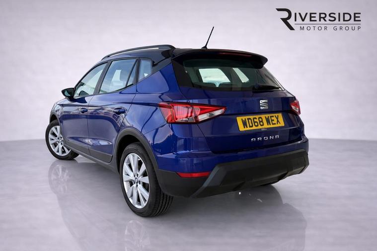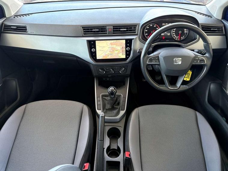 'Lights On' Reminder warning buzzer, Cruise control, Digital clock, Electric speed sensitive power steering, Front assistant collision mitigation, Full Link Smartphone Integration with Mirror Link, Apple Car Play, Google Android Auto, Low fuel warning light, Outside temperature display, Rear parking sensor, RPM counter, Trip computer, Comfort suspension, 6 speakers, Bluetooth interface for hands free and audio streaming, DAB Digital radio, SEAT USB media cable, Steering wheel mounted audio controls, Anti theft roof antenna, Automatic activation of hazard warning lights, Automatic headlights, Black roof rails, Black window surrounds, Body coloured bumpers, Body coloured door handle inserts, Chrome grille surround, Electric adjustable door mirrors, Electric front/rear windows with one touch/auto up/down, Electric headlight adjustment, Front fog lights with static cornering function, Halogen headlights, Hidden exhaust pipe, LED daytime running lights, LED licence plate lighting, LED tail lights, Rear fog lights, Rear window wash/wipe, Visible VIN plate, Windshield wiper with intermittent control and potentiometer, 2 cupholders, 3 rear height adjustable headrests, 60/40 split folding rear seat, Active head restraints, Air conditioning, Ambient interior lighting, Card holder, Cloth upholstery, Double boot floor, Driver and passenger sunvisors, Driver/front passenger seat height adjustment, Dust/pollen filter, Footwell ambient lighting, Front courtesy lights, Front reading light, Gear shift indicator, Height/reach adjustable steering column, Illuminated boot, Instrument lighting with brightness control, Isofix attachments on rear seats, Leather handbrake, Leather steering wheel and gear knob, Connectivity pack plus - Arona, 3 point seatbelts on all rear seats, ABS+EBA, Child locks on rear doors, Driver/Front Passenger airbags, Electronic stability control, Front and rear seatbelt reminder, Front side/curtain airbags, Height adjustable active front headrests, Hill hold control + Tyre Pressure monitor, Multi-Collision braking, Passenger airbag deactivate switch, Tiredness recognition system, Traction control, 2 folding remote keys with window open/close function, Immobiliser, Locking wheel bolts, Remote central locking + deadlocks, Interior chrome line trim, 17" Dynamic alloy wheels,