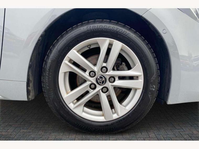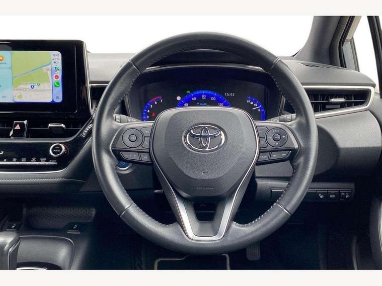 7" Multi information display screen, Bluetooth telephone connectivity, Connected car functionality upgrade, tracker, remote status and e-care, Dynamic radar cruise control (with RSA) including switch on steering wheel, E-call, Electrically assisted power steering, EV drive indicator, Intelligent park assist, Lane Departure Alert (LDA) switch on steering wheel, Memory on adjustable speed limiter, Push button start, Reversing camera, Smartphone integration with Apple CarPlay and Android auto, Gasoline particulate filter, Vehicle Stability Control (VSC), 6 speakers, 8" Touchscreen with MM19 Multimedia system and voice recognition, AM/FM radio, DAB Digital radio, Toyota touch 2 with go navigation system, USB and Aux in connectors + 12V front outlet, USB charging port in centre storage box, Aluminium roof rails, Anti-jam protection on power windows, Auto up and down function on all power windows, Automatic headlights with high beam assist, Black metallic surround on lower front grille, Black toyota logo in front, Body colour rear spoiler, Body coloured bumpers, Body coloured door mirrors, Body coloured outside door handles, Follow me home headlights, LED daytime running lights, LED front fog lights, LED Headlights, LED High mounted stop light, Manual day/night rear view mirror, Noise reduction layer on front windows, Power adjustable heated door mirrors, Power front windows, Power rear windows, Rain sensor, Rear side wing doors, Rear window defogger, Rear window wiper, Shark fin antenna, Time adjustment on intermittent wiper, Turning signal integrated indicators in door mirrors, Unique lower skirt, Unique side rocker with black insert, UV-filter on driver and passenger windows, 12v power outlet - luggage side, 3 rear headrests, 3 seat bench in 2nd row, 3 spoke leather steering wheel + gear knob, 60/40 split folding rear seat, Adjustable speed limiter switch on steering wheel, Audio, multimedia and telephone switches on steering wheel, Boot light, Boot underfloor storage, Clean air filter, Driver and front passenger personal light, Driver and passenger assist grip, Driver and passenger sun visor with mirror and light, Dual sided deck board in boot, Dual zone automatic air conditioning with ECO mode switch, Fabric armrests, Front and rear cup and bottle holders, Front and rear door pockets, Front head restraints, Front passenger seat, Heated driver and front passenger seats, Illuminated entry system in room lamp, ISOFIX seat fixing (2 fixings on rear outer seats), Leather gear shift with satin chrome on gear shift console, Manual height adjustable for driver and front passenger seat, Passenger seat back pocket, Pollen filter, Power adjustable lumbar support on driver seat, Power window switches with satin chrome inserts, Quilted fabric upholstery with grey stitches seats, Rear armrest with 2 cupholders, Rear passenger air vents, Rear passenger coat hooks (2), Rear passenger personal lights, Retractable tonneau cover with luggage partition net, Satin chrome inside door handles, Shopping bag hooks in luggage compartment, Side storage in boot, Sliding armrest on centre console box, Slow opening glovebox with lights, Tilt/telescopic steering column, Tonneau cover with under floor storage, Voice recognition switch on steering wheel, Whiplash Injury Lessening (WIL) feature (active headrest) for seats, Parking pack - Corolla, Toyota safety sense 2 pack - Corolla, 3x3 point rear seatbelts, Adjustable driver and front passenger seat belt extender to top anchor point, Anti lock braking system + Electronic brake force distribution, Brake assist function, Child locks on rear doors, Downhill Assist Control (DAC), Electronic parking brake, Emergency brake light signal (EBS), Front passenger airbag on/off switch, Front seatbelt reminder, HAC - Hill start assist control, Rear seat belt reminder, Seatbelt pretensioners and force limiters, Supplemental restraint system (SRS) 7 airbags - dual driver, dual side curtain, side impact and driver knee airbags, Traction control, Tyre pressure warning system, Acoustic vehicle alert system (AVAS), Alarm with motion sensor and immobilizer, Remote central locking + deadlocks, Smart entry, Satin chrome dash trim, Soft touch texture on upper dashboard, Stitching on lower dashboard, Space saver spare wheel, Unique wheel finish with red wheel cap,