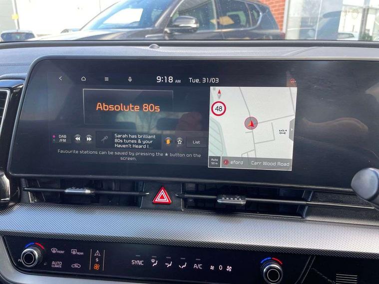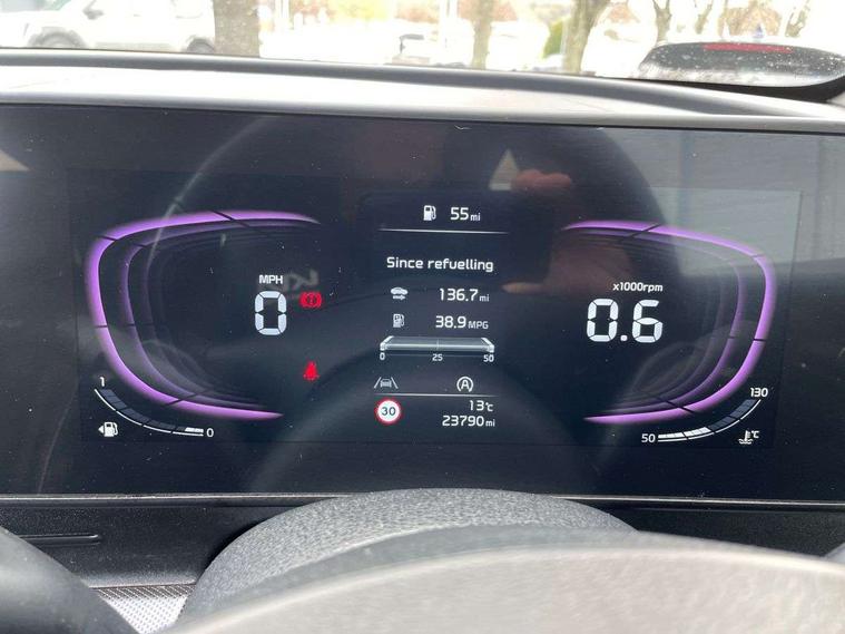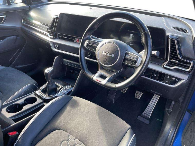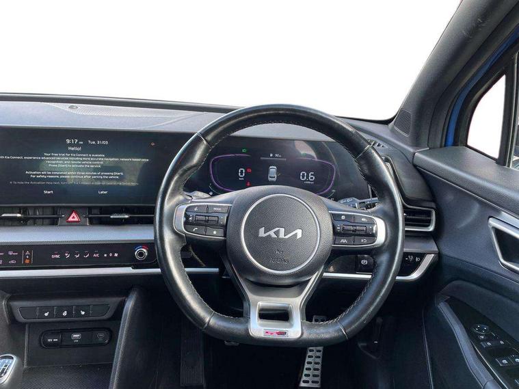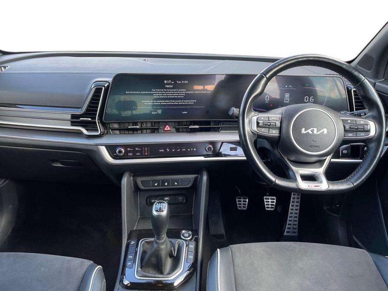12.3" Display with navigation, 4.2" supervision colour cluster display, Apple car play/Android Auto with voice control, Cruise control + speed limiter, Drive mode selector, E-call, Forward collision avoidance assist (FCA) - city/pedestrian/cyclist/junction covering, Front and rear parking sensors, Intelligent speed limit assist, Kia Connect (UVO), Lane Following Assist (LFA), Lane keep assist, Low washer fluid warning, Rear view monitor, Reversing camera system integrated into centre fascia screen, Speed sensitive power steering, Trip computer, Windscreen washer level indicator, Intelligent Stop and Go, 6 speaker audio system, Bluetooth audio streaming, DAB Radio with MP3, Rear USB port, Steering wheel mounted audio controls, USB C type charging ports on centre console, USB C type charging ports on side of front seats, USB port for connection of a media device, All round electric windows with drivers and front passenger auto up/down function, Automatic headlight control system, Automatic window defogger, Backlite glass heated with timer, Black bumpers, Body colour and black bumper with silver accents, Body colour exterior door handles, Body colour radiator upper garnish and door garnish, Electrically adjustable/heated/folding door mirrors with LED indicators, Front and rear chrome skid plates, Gloss black door mirrors, Gloss black radiator grille, Gloss black side sill and wheel arch body mouldings, Glossy black roof rack, High beam assist, Interior electrochromic mirror, LED daytime running lights, LED front fog lamps, LED headlamps (low and high beam - MFR type), LED High mounted stop light, LED rear combination lamp, Rain sensing wipers with aero blades, Rear fog lamp, Rear privacy glass, Rear side wing doors, Rear spoiler, Rear wiper, Satin finished beltline, Silver coloured inserts to bumpers, Tinted rear glass, Trailer stability assist, 12V power socket in front centre fascia and luggage compartment, 2nd row personal lamps, 3 seat bench in 2nd row, 3 x passenger assist grips, 40/20/40 split folding rear seat, All-round height adjustable headrests, Black headlining, Centre console storage box, Cupholders in rear armrest, D-Shaped sports leather steering wheel and perforated inserts with GT-Line logo, Door courtesy lamps, Drink holder at centre armrest, Driver and front passenger side sunvisors with illuminated vanity mirrors, Driver's seat manual height adjust, Drivers seat power lumbar support, Front and rear door storage, Front seat and rear pockets, Front/rear centre armrests, Gear shift indicator, Glovebox illumination, Heated front seats, Heated steering wheel, Interior door lock/unlock function, ISOFIX Child seat top tethers and anchor fixings outer rear seats, Luggage area light, Luggage area load cover, Luggage net with hooks, Metal paint interior door handles, Overhead console lamp, Rear cabin light, Rear coat hooks, Single front passenger seat, Sports pedals, Suede leather upholstery, Three zone climate control, Tilt/telescopic adjustable steering wheel, Ventilation ducts to rear compartment, Active front headrests, All round 3-point seatbelts, Anti-lock braking system (ABS), Dual front side airbags, Dual horn, Electronic parking brake, Electronic stability control with downhill brake control, Front passenger airbag cut-off switch, Front seatbelt pretensioners + load limiters, Height adjustable front seatbelts, Hill start assist control (HAC), Impact sensing auto door unlocking, Multi collision brake assist, Rear door child safety locks, Rear seat alert system, Traction control, Twin curtain airbags, Twin front airbags, Tyre pressure monitoring system, Advanced anti-theft system including immobiliser and alarm, Door deadlocks, Engine Start/Stop Button with Smart Entry System, Locking wheel nuts, Speed sensitive auto door locking, Visible vehicle identification number, Aluminium pattern finish centre fascia and door garnish, 19" GT-Line alloy wheels, Tyre mobility kit,
