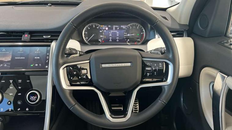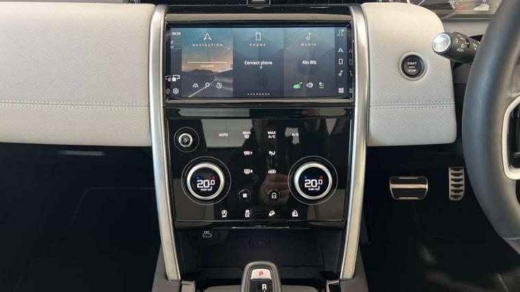 10" touch screen, Adaptive cruise control, Android Auto, Apple CarPlay, Blind spot assist, Clear exit monitor, Driver condition monitor, eCall emergency call system, Front and rear parking aid, InControl remote premium, Lane keep assist, Locking fuel flap, PAS, Pivi Pro connected navigation system with upgraded Infotainment, Powered tailgate/boot lid, Push button start, Rear collision monitor, Rear traffic monitor, Service interval indicator, Traffic sign recognition with adaptive speed limiter, Trip computer, Wade Sensing, All terrain progress control, Coil suspension system, Diesel particulate filter, Dynamic stability control, Terrain Response 2, Bluetooth connectivity including audio streaming, Digital Audio Broadcast radio-DAB, Steering wheel mounted audio controls, 3rd brake light, Automatic headlight levelling, Automatic headlights, Electric front/rear windows, Electric heated/power fold door mirrors with approach lights and auto dimming driver side, Fixed panoramic sunroof with powered sunblind, Front and rear recovery eyes, Heated rear window, Heated windscreen including heated washer jets, No badges, Privacy glass, R Dynamic badge, Rain sensing windscreen wipers, Rear fog lights, Rear side wing doors, Rear wing door, Rear wiper, 5 seats, Bright metal pedals, Centre console with armrest, Footwell lights, Front and rear grab handles, Front passenger isofix child seat attachment, Loadspace cover, Loadspace light, Overhead lighting console, Overhead stowage for sunglasses, Rear headrests, Satin chrome gearshift paddles, Sunvisors with illuminated vanity mirrors, Tilt/reach adjustable steering wheel, Black exterior pack - Discovery sport R-Dynamic SE/HSE, Online pack with data plan - Discovery, 3 point seatbelts on all seats, ABS, Brake hold function, Child locks on rear doors, Collision mitigation braking system, Cornering brake control (CBC), Driver/Front Passenger airbags, Drivers knee airbag, Electronic brake force distribution, Electronic parking brake, Emergency brake assist, ESP + traction control, Hill descent control, Hill launch assist, Pedestrian airbag system, Rear seat ISOFIX, Roll stability control, Side and curtain airbags for front and 2nd row seats, Trailer stability control, Tyre pressure monitoring system, Battery Back Up System (BBUS) with tilt sensor, Global lock and unlock switch on driver door, Intrusion sensor, Keyless entry, Locking wheel nuts, Centre stack rails in noble chrome,