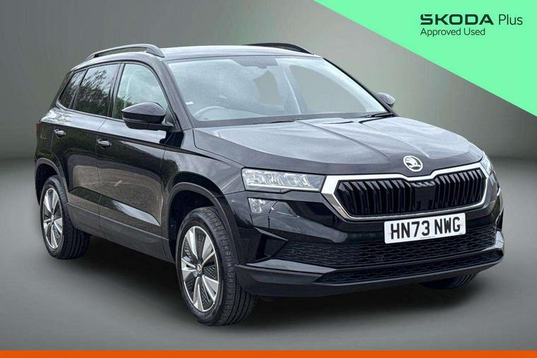 8" Digital display, Amundsen satellite navigation with 8" touchscreen display with maps Europe, WLAN and web radio, Care connect, Driver fatigue sensor, Electro-mechanical PAS, Emergency services call system, Outside temperature gauge, Service interval indicator, SmartLink wireless for Apple and wired for Android, Start/stop system with regenerative braking, USB C Port x 2 in front centre console, 8 Speakers, DAB radio with Bluetooth, USB connection, Acoustic glass, Aero front windscreen wipers with intermittent function, Auto dimming rear view mirror with light and rain sensors, Black electric window control buttons, Body colour door mirrors and handles, Dynamic headlight range control with cornering light function, Electric front and rear windows with child proof lock, Electrically adjustable heated folding and auto dimming door mirrors, Front fog lights, Heated rear windscreen, LED daytime running lights, LED Headlights, LED rear lights with high functionality welcome effect and dynamic indicators, Light assistant (coming/leaving home/tunnel light), Plastic scuff plates, Privacy glass, Rear side wing doors, Rear window wiper with washer system and intermittent control, Safety reflectors on front doors, Third brake light, 1.5 litre bottle holders in driver and front passenger door panels, 12V socket in boot, 12v socket in front centre armrest with storage compartment and rear air vents, 2 x Tablet holder, 3 rear height adjustable headrests, 3 seat bench in 2nd row, 4 foldable roof handles with rear coat hooks, Black floor carpet, Chrome inner door handles, Double sided boot floor, Driver/front passenger reading lights, Foldable hooks in the boot, Folding tables on the front seat backrests, Front head restraints, Height adjustable driver and passenger seat, Height adjustable front three point seats belts with tensioners, Height/reach adjust steering wheel, Ice scraper, Illuminated glovebox, Illuminated luggage compartment, Isofix child seat preparation for front passenger seat, Isofix child seat preparation outer rear, Manual lumbar support for front seats, Pearl grey interior ceiling, Pen holder, Pollen filter, Rear boot cover, Rear reading lights, Rubbish bin door, Safety vest holder, Single front passenger seat, Storage box in upper central dashboard closed, Sunvisors with illuminated vanity mirrors, Textile floor mats, Ticket holder, Umbrella under passenger seat, Boot pack - Karoq, Automatic door unlocking in case of crash, Automatic fuel cut off in case of crash, Child locks on rear doors, Driver airbag, Electronic parking brake with auto hold function, Emergency rear braking signal, ESC including ABS, MSR, ASR, EDS, HBA, DSR, RBS, MKB and traction control, Front side airbags, Hill hold control, Knee airbags, Passenger airbag with switch-off function, Pedestrian monitor, Seatbelt reminder signalisation and pretensioner for all seats, Three point seatbelts rear, Two tone horn, Tyre pressure display, Tyre pressure monitor, Alarm with interior monitoring, back up horn and tilt sensor with safe function, Electronic engine immobiliser, Remote central locking with 2 remote folding keys, Black centre console, Chrome framed air vents, Satin black dashboard, Satin black door trim, Anti-theft wheel bolts protection, Storage on wheel cover, Tool kit,