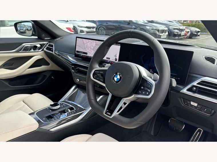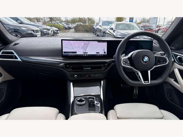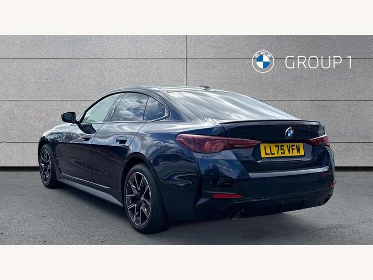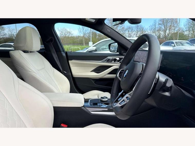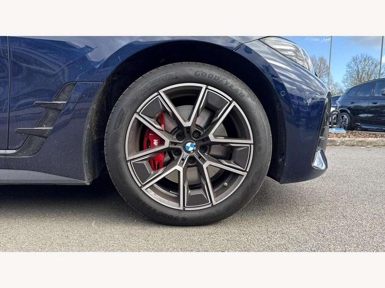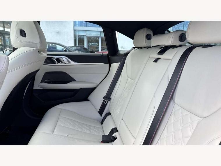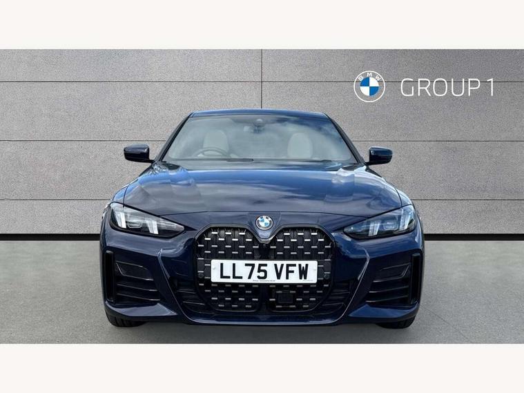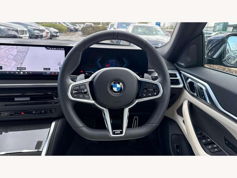 Active guard plus, Attentiveness assist, Automatic start/stop function, BMW ConnectedDrive online services, BMW iDrive controller on centre console, BMW service history, BMW Teleservices, Brake pad wear indicator in front and rear, Check Control warning system for monitoring of lights and door/luggage compartment open warning, Condition based service, Electric bootlid, Electric power steering with Servotronic steering optimised at all speed ranges, Instrument cluster with speedometer with mph readout, tachometer, fuel gauge and oil temperature gauge, Integrated owners handbook, Language version English, Oil sensor for level and grade, On board computer - average speed, fuel consumption, outside temp display with acoustic warning, clock/date, service interval, odometer/trip meter, Run flat indicator, Shifting point display, Start/stop button in black, Variable sport steering, 8 speed automatic steptronic transmission with gearshift paddles, Balanced 50/50 weight distribution, Double joint spring strut front axle, Drive experience mode switch - Comfort mode, ECO PRO mode and SPORT mode, Electronic differential lock control (EDLC), Low centre of gravity, Petrol Particulate Filter, Stroke dependent dampers, DAB tuner, Personal eSim, Acoustic glazing, Automatic headlight beam throw control with load dependent regulating reaction, dynamic compensation of braking dive and acceleration squat, Automatic windscreen wipers and automatic headlight, BMW radiator grille with mesh grille, end face of the nuggets in aluminium matt and frame in chrome matt, Body colour fuel filler flap, Body colour roof fin, Bonnet and tailgate badge, Electric folding wing mirrors - Driver side electrochromic, auto anti dazzle function & front passenger side auto parking function without anti dazzle, Electric windows - front and rear, with open/close fingertip control, anti trap facility and comfort closing function all round, Follow me home headlights, Front and rear bumper system, Front apron plastic in body colour, Green tinted heat protection glazing, Illuminated bow type door handles in body colour drivers side with door lock, Interior rear view electrochromatic mirror with automatic anti dazzle function, LED 3rd brake light, LED daytime running lights, LED front fog lights, LED front indicators, Licence plate panel integrated into front bumper and tailgate, Low and high beam headlights in Bi-LED, M designation on front side panels, left and right, M Sport entry door sill strips, One piece front bumper cover including towing eye cover in body colour, Preparation for high beam assistant, Rear side wing doors, Rear wiper, Reversing light, Side frame trim strip black matt, Two part LED tailights in L-shape with components in smoked glass, brake light, LED turn indicator and rear fog light, Visible exhaust tailpipe finisher, Visible VIN plate, Welcome lights in interior and door handle area, Widened track and increased camber values for max transverse dynamics, agility and steering precision, Windscreen washer jets concealed underneath bonnet, 12V power socket in front centre console, 2 front cupholder in centre console with clamping elements and matt black inlay, 3 rear headrests, 3 seat bench in 2nd row, 3 spoke flat bottom M sport leather multifunction steering wheel, 3 zone automatic air conditioning, 4 pieces lashing eyelets in luggage compartment, 40:20:40 split folding rear seat, folding head restraint of centre seat and rear centre armrest with two cupholders, Anthracite headlining, Armrest integrated in front and rear door trim + front centre console armrest, Battery in luggage compartment, BMW ID, Extended storage - 2x Dual USB Type C 3A charging function in the rear centre console for the rear, Extended storage - Luggage compartment partition net on left side trim panel, Bag hook on both sides of the luggage compartment, Extended storage - Multifunction hook, Extended storage - Trailer tow hitch button in black (extendable trailer tow hitch) on the right hand side, Four grab handles integrated in roof lining, Front and rear door pockets, Front footwell lights, Heated driver and front passenger seats, Height adjustable front headrests, Illuminated armrest storage compartment, Illuminated glove compartment with separate small compartment, Interior light and front reading light, Luggage compartment light, Single front passenger seat, Steering column adjustment - Infinitely variable in height and length, Sunvisors with illuminated vanity mirrors and ticket pocket, Through load system, Toolkit located in luggage compartment, Velour front floor mats, Ambient lighting pack - 4 Series, BMW Live Cockpit Plus pack - 4 Series, Connected professional package - 4 Series, M High gloss shadowline exterior trim pack - 4 Series, M sport exterior styling pack - 4 Series, Park assist pack - 4 Series, 3 point seatbelts on all seats, BMW emergency call, Brake energy regeneration, Braking pre-tensioning, Child locks, Child seat ISOFIX attachment for the two outer rear seats, Crash sensor activating of airbags, Unlocking doors, hazard warning lights, interior light, safety battery terminal, Driver and front passenger side airbags, integrated in the door side seat backrest bolsters for all seat variants, Driver/Front Passenger airbags, Dry braking, Dynamic brake control, Dynamic stability control + (DSC+) - Anti-lock Braking System (ABS) with brake assist and cornering brake control + Automatic Stability Control (ASC), Dynamic Traction Control - DTC, Electric parking brake including automatic hold function and automatic release of the parking brake when driving off, Front and rear ventilated brake disc, Front passenger manual airbag deactivation, Head airbags for all 4 outer seats, Hill start assistant, Seat belt security check for driver and front passenger, Seat belt with belt stopper, pyrotechnic belt tensioners and belt force limiters, Seat occupancy detection for driver and passenger side, Side impact protection, Tyre pressure 