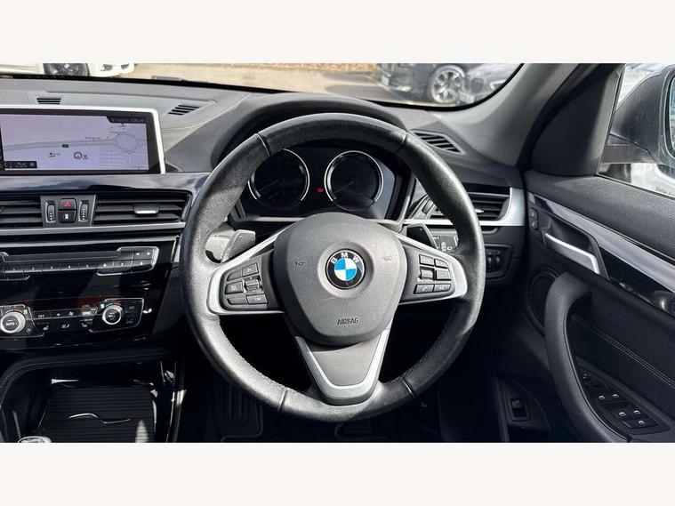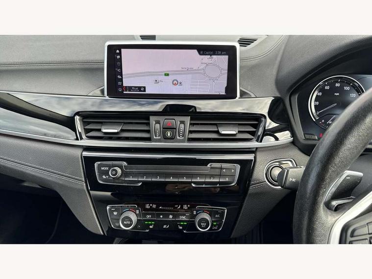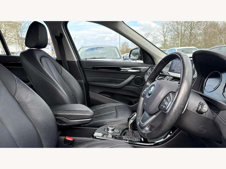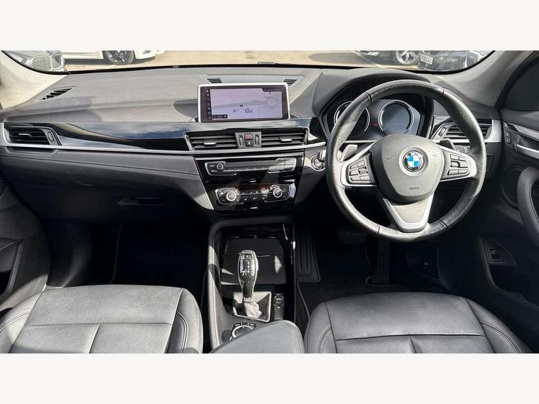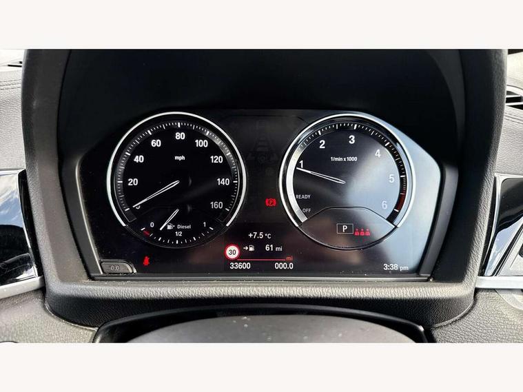 Active Guard incl speed limiting and lane departure functions with auto steering, and front collision warning with brake intervention, Ambient temperature display, Apple CarPlay, Arrow pointers, north up, direction of travel and perspective map displays, Attentiveness assist, Automatic tailgate opening, BMW ConnectedDrive, BMW Online services, BMW remote services, BMW Teleservices, Brake pad wear indicator in front and rear, Characteristic map controlled oil pump system, Cruise control with brake assist, Front axle single joint with specific axle kinematics to minimise drive influences on steering + provide increased rigidity agile driving behaviour, Front/rear park distance control (PDC), Instrument cluster with Black optic display featuring superimposed dials and 5.7" colour display, Instrument cluster with speedometer with miles per hour read out, tachometer and fuel gauge, Integrated hard drive with map data updates via USB interface, Lights on warning by audio warning signal when ignition is switched off, On board computer, Operation by iDrive with direct selection buttons and 8 programmable buttons, Optimum shift indicator, Outside temperature gauge, Park assist system, Personal Profile - automatic lock when driving away selectable, Real time traffic information, Rigidly mounted rear subframe - Multi link construction with separate spring / damper configuration and excellent driving characteristics, Service interval indicator, Servotronic PAS, Tyre puncture warning system, 12V compressor with integrated sealant injection bottle and hose, Aluminium lightweight construction including crankcase, Anti-roll bars, Balancer shaft, Diesel particulate filter, DOHC valvetrain with two upper camshafts, Double VANOS, Drive performance control with ECO PRO comfort + sport mode, Eight speed sport automatic transmission, Electronic differential lock control (EDLC), High precision injection, Incorrect fuelling protection, Performance Control, Standard suspension, Stop/start function, Twin tube gas filled shock absorbers with degressive characteristic curve, BMW professional radio includes amplifier power 100w, Two mide range speakers in door trims and two woofers as central bass speaker under front seats, DAB Digital radio, Adjustable headlights, Aero curtain, Automatically dimming rear view mirror, BMW Icon design LED daytime driving lights, Body colour bumpers, Body colour door handles, Body colour door mirrors, Direction indicator side lights integrated exterior mirrors, Dynamic brake lights, Electric windows - front and rear, with open/close fingertip control, anti-trap facility and comfort closing, Electrically adjustable door mirrors with aspheric on driver side, convex on passenger side with integrated indicators, Exclusive front door sill finishers with BMW designation, Exterior mirrors - electrically folding with anti-dazzle, Follow me home headlights, Front air guide finished in black silver, Front air inlets in matt black with silver finisher matt, Front and rear bumper system, Front bumper underbody protection in silver matt, Green tinted heat protection glazing glass, Headlight beam throw control, Heated door mirrors, Heated windscreen washer jets, High level third brake light, Kidney grille with 14 chrome matt aluminium fronted with black matt sides vertical bars, LED direction indicator lights in headlight eyebrow, LED front fog lights, Lightweight engineering, Model designation, Rain sensor including auto headlights activation, Rear bumper underbody protection in black silver with silver matt insert, Rear fog lights, Rear window aerial, Rear window wash/wipe, Reversing light in rear light cluster, Roof mouldings in matt black, Shark fin antenna, Sill cover matt black with matt silver insert, Twin chrome exhaust tailpipes x2, Two eye face design on light, Visible VIN plate, Welcome lighting, 12v power point in centre console, 2 cup holders in front, 3 rear headrests, 3 spoke sport leather steering wheel, 40:20:40 split folding rear bench seat, Black door sill finishers with BMW designation, Boot light, Centre armrest in 20 degree part rear seat backrest, Child seat ISOFIX attachment for two outer rear seats and front passenger seat with anchorage points, Conditioned based service, Dakota leather upholstery with perforation and contrast stitching, Driver and front passenger heated seats, Driver/front passenger seat backrest back with luggage net, Driver/passenger sunvisors with ticket holders, Dual zone automatic air conditioning, Four grab handles integrated in roof linings, Front and rear side armrests integrated into door trim, Front centre armrest/sliding cover, Front centre interior light over interior mirror and rear centre automatic interior light when door is opened/ignition switched off or via remote key, Front/rear adjustable head restraints, Illuminated glovebox, Leather gearknob/gaiter/handbrake grip, Luggage area underfloor compartment, Luggage compartment access via recessed handle below tailgate, Luggage compartment lighting, Luggage compartment loading edge with stainless steel insert, Manually adjustment steering wheel column, Multifunction steering wheel, Rear coded belt buckles, Single turbo charger, Standing free front adjustable armrest and fixed in different positions, Steering wheel gearshift paddles, Velour floor carpets, Extended lights pack - X1, Extended storage package - X1, ABS/EBD, Audio/visual collision warning system, Automatic Stability Control (ASC), Battery safety cut-off, BMW emergency call, Brake drying, Brake energy regeneration, Braking readiness, Collision mitigation braking system, Cornering brake control (CBC), Crash Sensor - activates hazard/interior lighting + unlocks doors, Driver/Front Passenger airbags, Driver/front passenger side airbags, Dynamic brake control, Dynamic stability control + (DSC+), Dynamic Traction Control - DTC, Electronic parking brake, Front and rear head airbags, Front passenger airbag deactivation, Front seatbelt for