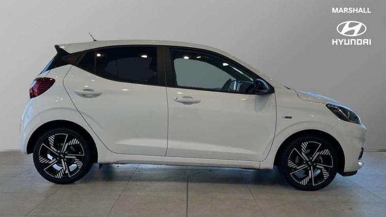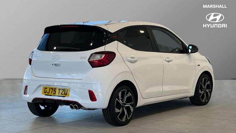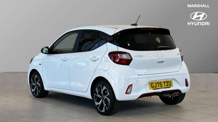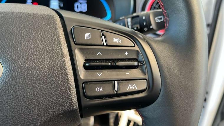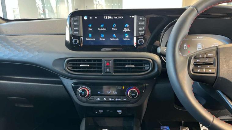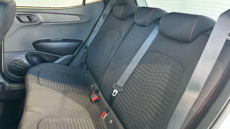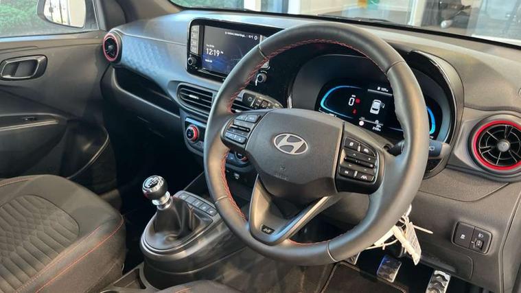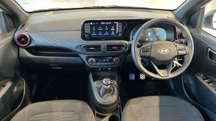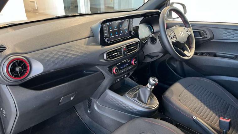 8" Touchscreen satellite navigation including mapcare and LIVE services, Apple car play/Android Auto, Bluelink mobile remote connectivity, Bluetooth connectivity with voice recognition, Cruise control, Driver attention alert system, eCall emergency call system, Forward Collision-Avoidance Assist (FCA) - Pedestrian/Cyclist, Full-width 4.2" LCD instrument cluster, Intelligent speed limit assist, Lane departure warning system with lane keep assist - LKAS, Lane follow assist, PAS, Rear parking sensors, Rear view camera with guidelines, Roadside assistance, Tailgate, Trip computer, Wireless charging pad, 2 front/2 rear speakers, Front and rear USB-C ports, Front USB connection, Leading vehicle alert (LVA), Steering wheel audio, phone and cruise controls, 1 speed non intermittent rear windscreen wiper, Black finish on B pillars, Body colour door handles, Body coloured bumpers, Electric folding door mirrors, Electric front windows, Electric rear windows, Electrically adjustable and heated door mirrors, Flat metal emblem, Front fog lights, Front intermittent wipers, Glossy black door mirrors, Halogen bi-function headlights, Headlights inner with Blade design, Heated rear window, High beam assist, Indicator light on door mirrors, LED daytime running lights, N Line Badging, N Line design front grille, Privacy glass for rear window, Rear LED combination lamps in H pattern, Rear roof spoiler with integrated LED brake light, Rear side wing doors, 12v power outlet - front, 3 seat bench in 2nd row, 60/40 split folding flat to floor rear seats, Air conditioning climate control, Auto light control, Bottle holders in front/rear doors + front centre console, Cabin and luggage compartment interior lighting, Cloth upholstery, Dashboard finisher in Dark Grey Metal with Flame Red air surrounds, Driver + passenger vanity mirrors, Driver's seat height adjustment, Driver/passenger sunvisors with ticket holders, Floor mats, Front door pockets, Front Head Restraints - Vertical and Horizontal Adjustment, Front LED blue mood lighting, Glove compartment, Heated front seats, Heated steering wheel, Height adjustable steering column, Isofix child seat preparation, Leather wrapped steering wheel and gear knob, N Line branded leather gear stick, N Line branded leather steering wheel, Rear door pockets, Single front passenger seat, Vertical adjustment rear head restraints, 13" Rear brake discs, 3x3 point rear seatbelts, Airbags - front, front side and curtain airbags, Anti-lock brake system (ABS), Autonomous emergency braking (AEB) with forward collision warning system, Brake assist function, Childproof rear door locks, Electronic stability control, Front and rear seatbelt reminder, Front seatbelt pretensioners, Hill start assist control (HAC), Passenger airbag deactivate switch, Traction control, Tyre pressure monitoring system, Immobiliser, Perimeter alarm, Rear occupant alert, Remote central locking, Second remote key, Smart key with keyless entry and engine start/stop button, Speed sensitive auto door locking, 16" alloy wheels, N logo centre caps, Temporary mobility kit (TMK),