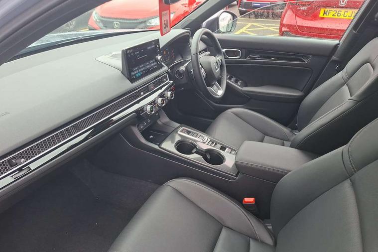 10.2" Multi information display, Adaptive cruise control, Adaptive motion for electric power steering, Adjustable speed limiter, Agile handling assist, BLIS (Blind Spot Information System) with Cross Traffic Monitor, Bluetooth hands free telephone connection, Driving modes, Economy mode, Electric power steering wheel with variable gear ratio steering, Emergency call service, Emergency stop signalling system, Forward collision warning, Front and rear parking sensors, Honda CONNECT with Navigation 9" touchscreen, AM/FM/DAB, Apple Carplay and Android Auto, live traffic info, Honda sensing, Idle stop, Intelligent speed limiter, Lane departure warning system, Lane keep assist, Low speed following, Power meter, Rear parking camera, Road departure mitigation, Smartphone wireless charging plate, Tailgate, Traffic jam assist, Traffic sign recognition, Wireless apple carplay, Vehicle stability assist, 'Shark fin' mobile antenna, 2x USB Front socket (1 data & 1 charge), Centre speaker, Digital Audio Broadcast (DAB) Tuner, Front tweeters, Premium BOSE audio system with 12 speakers, Steering wheel mounted audio controls, Subwoofer, Adaptive driving beam, Aspherical driver door mirrors, Auto dimming rear view mirror, Auto headlight adjuster, Auto headlights, Automatic coming/leaving home lighting function, Automatic rain sensing wipers, Body colour door handles, Chrome window garnish, Electric adjustable heated door mirrors, Electric front and rear windows, Electrically folding door mirrors, Headlight extension aluminium, High beam assist, High level LED brake light, LED daytime running lights, LED front fog lights, LED front turn type, LED Headlights, LED rear lights, Material finish grille, Panorama glass roof, Pop up hood, Privacy glass, Rear side wing doors, Rear wiper, Single hidden exhaust pipe, Variable front intermittent wipers, 3 seat bench in 2nd row, 4 way electric adjustable passenger seat, 60/40 split folding rear seat, 8 way electric adjustable drivers seat, Cargo accessory power socket, Cargo net hooks, Driver and front passenger seat armrests, Driver and front passenger seat electric lumbar adjustment, Driver's seat electric height adjustment, Driver/passenger front seatback pockets, Dual climate control air conditioning system, Front accessory power socket, Front map lights, Front/rear courtesy lights, Glovebox light, Heated front seats, Heated steering wheel, Hybrid emblem, Isofix points/i size, Leather steering wheel, Leather/synthetic leather upholstery, Meter Illumination white, Platinum chrome interior door handles, Rear air vents, Rear head restraints, Rear reading lights, Rear seat centre armrest, Single front passenger seat, Stainless steel sports pedals, Sunglasses holder, Sunvisors with illuminated vanity mirrors, Tilt/telescopic adjustable steering wheel, Tonneau cover, Trunk light, USB Rear number 2 x charge, White ambient roof light, 3x3 point rear seatbelts, ABS+EBD+Brake assist, Airbags - driver and front passenger, Airbags - Knee (AS), Airbags - Knee (DR), Anti-whiplash front headrests, Brake hold function, Collision mitigation braking system, Collision mitigation throttle control, Deflation detection system, Driver SRS airbag (single stage inflation), Electronic parking brake with auto hold, Front and rear curtain airbags, Front and rear seat belts with emergency locking retractor (ELR), Front centre airbag, Front side airbags, Hill start assist, Low speed brake system, Manual child lock in rear doors, Passenger airbag deactivate switch, Rear airbags, Regenerative braking/deceleration paddle control, Immobiliser, Mirrors and windows key fob, Remote central locking with 2 jack knife keys, Security alarm, Selectable door unlock, Smart entry + Smart start, Superlocking, Tilt sensors, Ultrasonic security sensor, Tyre repair kit,