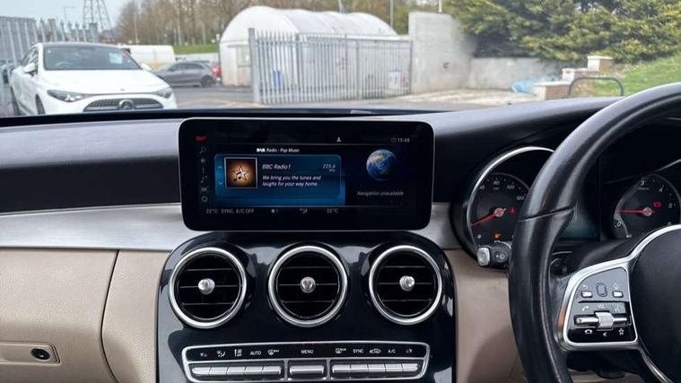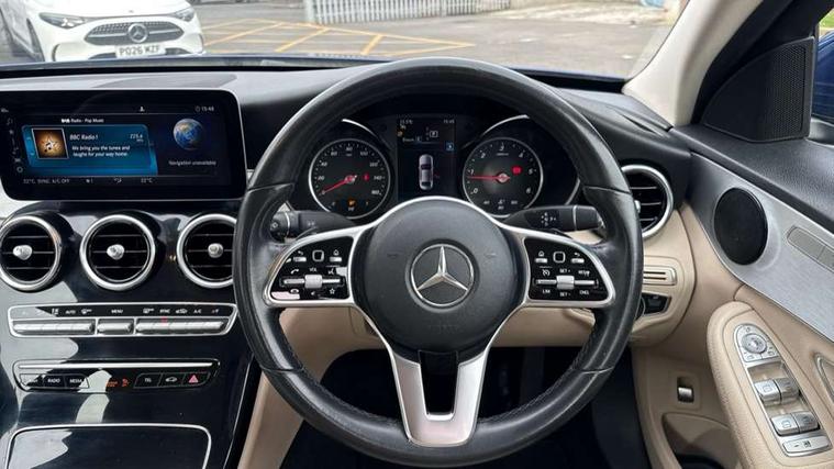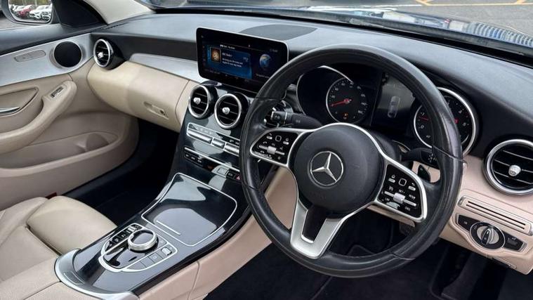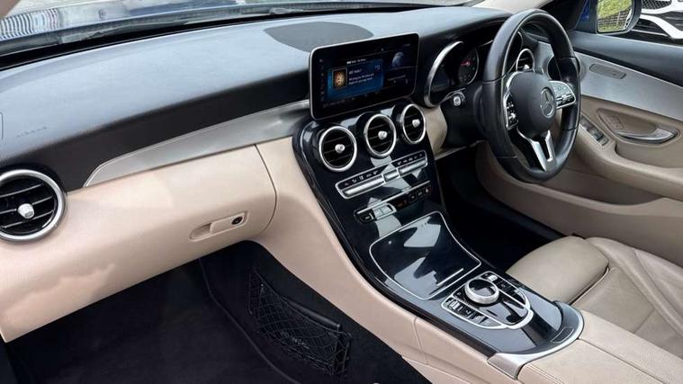 10.25" display screen, Active park assist with parktronic system, Attention assist, Bluetooth system, Collision prevention assist plus, Cruise control with speedtronic variable speed limiter, DYNAMIC SELECT with a choice of driving modes (ECO, Comfort, Sport, Sport+ and Individual), Instrument cluster with display, Multi function trip computer, Multifunction colour display, Navigation system, Outside temperature gauge, Pre-wiring for SD navigation system, Remote boot release, Reversing camera, Service indicator (ASSYST PLUS), Speed sensitive steering, Diesel particulate filter, 2 USB ports in centre console, DAB Digital radio, Frontbass loudspeakers, Mercedes Audio 20 radio/single CD + telephone keypad, SD card slot, Steering wheel mounted audio controls, Adaptive brake lights, Aerial in rear window, Body coloured bumpers, Body coloured door mirrors, Electric windows one touch open/close, Electrically adjustable and heated door mirrors, Green tinted glass, Heated windscreen washers, LED daytime running lights, LED Headlights, LED Indicators, LED tail lights, LED third brake light, Radiator grille with integral star and 2 louvres in matt iridium silver with chrome trim, Rain sensor windscreen wipers, Side windows surround in polished aluminium, 2 cupholders in front centre console, 3 spoke leather multi function steering wheel with silver chrome trim, 40:20:40 split folding rear seats, Artico man-made leather upholstery, Auto Mercedes-Benz child seat recognition sensor, Black floor mats, Dual zone automatic climate control, Electric front seat height adjustment, Front and rear head restraints, Front centre armrest with storage compartment, Front door sills with Mercedes Benz lettering, Gearshift paddles, Heated front seats, Illuminated glovebox, Rear top tether child seat ISOFIX attachment, Sports seats, Sunvisors with illuminated vanity mirrors, Lighting pack - C class, Mirror pack - C Class, Seat comfort pack - C Class, Stowage space pack - C Class, 3 rear 3 point seatbelts, ABS with Brake Assist, Active bonnet, Adaptive brake system, Black seat belts, Child proof door locks, Crash sensor, Drivers knee airbag, Drivers pelvis airbag, Dual stage driver/passenger airbags, Electronic parking brake, ESP with ASR, Front passenger seat occupancy sensor, Front side airbags, Hill start assist, Rear seatbelt warning indicator, Tyre pressure monitoring system, Warning triangle and first aid kit, Window airbags, Alarm system/interior protection/immobiliser, Chrome surround electric key, Remote central locking, Brushed aluminium trim, 17" 5 spoke aero alloy wheels in Silver, Tyre inflation kit,