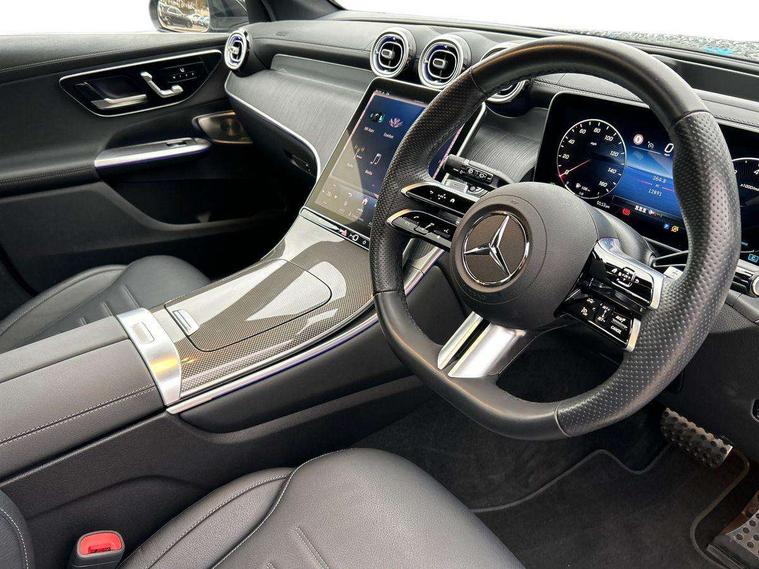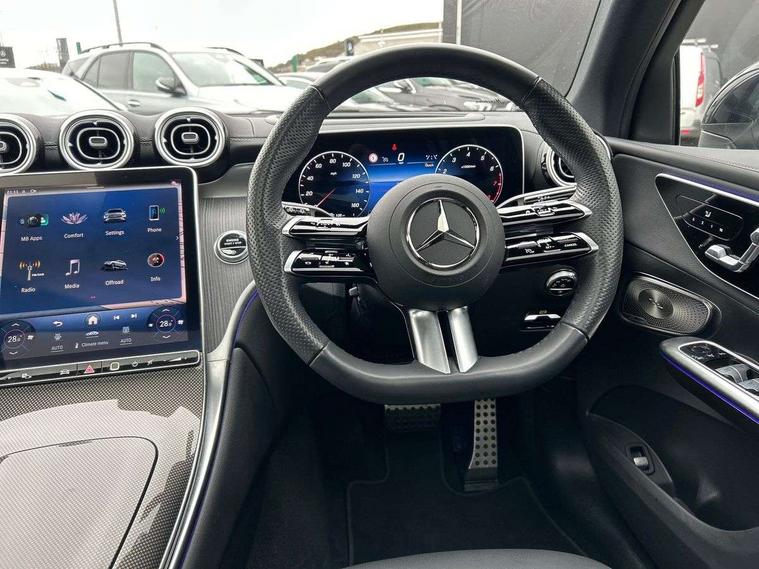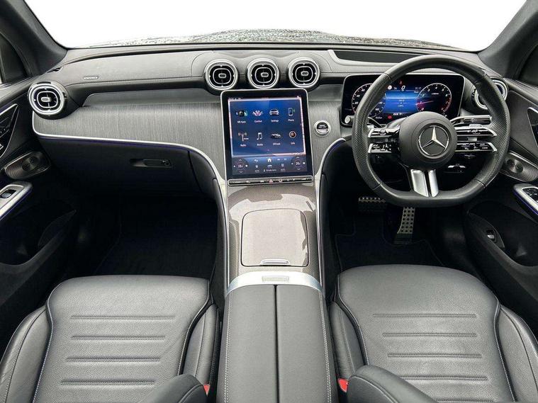 11.9" high resolution multimedia colour display, 12.3" Digital individually configurable instrument display, Acoustic presence indicator, Active lane keeping assist, Attention assist, Bluetooth interface for hands free telephone, Collision prevention assist plus, Dashcam - front camera for video recording, Direct steer speed sensitive steering, DYNAMIC SELECT with a choice of driving modes (ECO, Comfort, Sport, Sport+ and Individual), eCall emergency call system, ECO start/stop function, Fingerprint scanner, Fluorescent jacket for driver, Hard disc navigation, Head up Display, Instrument display in miles with English lettering, MBUX navigation premium, MBUX voice control activated by keywords "Hey Mercedes", Mercedes me connect, Outside temperature display, Remote boot release, Remote services, Road sign recognition system, Service indicator (ASSYST), Smartphone integration, Status display for rear seat belts in instrument cluster, Traffic sign assist, Trip computer, Wireless charging, 48V Mild hybrid technology, 4MATIC permanent four wheel drive, 62 litre fuel tank, 9G TRONIC plus automatic transmission, Petrol Particulate Filter (PPF), Residual engine heat utilisation, Sport suspension, Burmester 3D surround sound system, DAB digital radio tuner, MBUX extended functions, Pre installation for Mercedes Benz Link, Sound personalisation, Adaptive brake lights, Adaptive high beam assist plus, Aluminium look running boards with rubber studs, Aluminium roof rails, AMG bodystyling front apron, rear apron and side skirts, AMG Line exterior, Auto headlights, Body colour bumpers, Body colour door mirrors, Digital light LED headlights with projection function, Electric panoramic glass sunroof, Electrically adjustable door mirrors, Front and rear electric windows, Headlight washers, Heat insulating dark tinted glass, Heated rear window, High level LED brake light, Integrated LED daytime running lights, LED indicator lights, LED rear fog lights, LED tail lamp, Motor way mode function and locator lighting, Noise acoustic glass, Radiator grille with Mercedes Benz pattern and integreated Mercedes star and louvre in dark grey matt with chrome inlay and black frame, Rain sensor windscreen wipers, Range adjustable headlights, Rear side wing doors, Rear wiper, Transparent Bonnet, Two chrome plated tailpipe trim elements, Variable front intermittent wipers, Welcome and follow-me home light functionality, Wider wheel arch for AMG wheels, 3 seat bench in 2nd row, 40:20:40 split folding rear seats, Ambient lighting premium, AMG line interior, Audio and onboard settings control on multifunction steering wheel, Automatic child seat recognition sensor, Black fabric roof lining, Black floor mats with AMG lettering, Double cup holder in centre console, Easy-pack removable load compartment cover, Electrically height/reach adjustable steering column, Front centre armrest with stowage compartment, Front head restraints, Galvanised steering wheel gearshift paddles, Heated front seats, Illuminated door sill panels with Mercedes Benz lettering, Illuminated glove compartment, Instrument panel and beltlines in ARTICO manmade leather in nappa look, Multifunction sports steering wheel in nappa leather, Rear centre headrest, Rear head restraints, Rear top tether child seat ISOFIX attachment, Single front passenger seat, Sports pedals with stainless steel surfaces and rubber studs, Sports seats, Sun visors, THERMOTRONIC 4 zone automatic climate control, Anti theft protection package - GLC, Boot comfort package - GLC, Exterior chrome package - GLC, Interior chrome package - GLC, Interior lighting pack - GLC, Keyless-Go comfort package - GLC, Memory pack - GLC, Mirror pack - GLC, Parking package with 360 degree camera - GLC, Seat comfort package - GLC, Stowage space package - GLC, USB Plus Pack - GLC, 3 rear 3 point seatbelts, Anti-lock braking system (ABS), ASR traction control, Automatic front passenger airbag deactivation, Black seat belts, Brake calipers with Mercedes-Benz lettering + perforated brake discs, Braking system with larger brake discs on the front axle, Child proof door locks, Dual-stage airbags - driver and front passenger, driver knee bag and window bags for driver, front passenger and rear passengers, Electronic parking brake, Electronic stability programme (ESP) with curve dynamic assist and cross wind assist, Front and rear seatbelt reminder, Front passenger seat occupancy sensor, Front seatbelt pretensioners, Hill start assist, Tyre pressure monitoring system, Warning triangle and first aid kit, Automatic door locking, Guard 360 degree vehicle protection plus, Interior protection/immobiliser, Remote central locking, Anthracite linestructure lime wood trim, Centre console in metal structure finish, 20" AMG multi spoke light alloy wheels in painted black with high sheen finish, Summer tyres, TIREFIT with tyre inflation compressor,