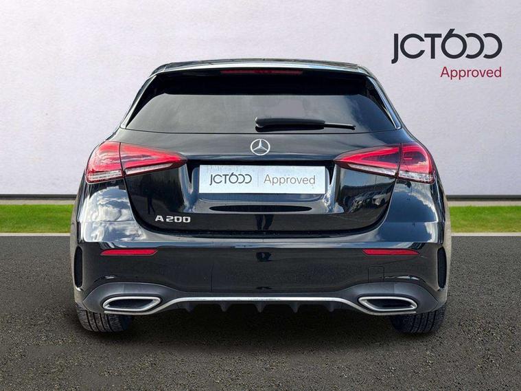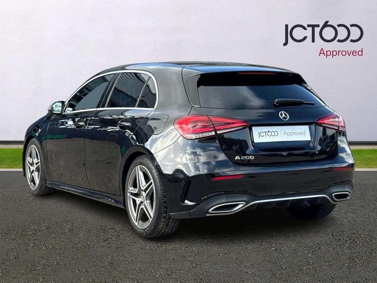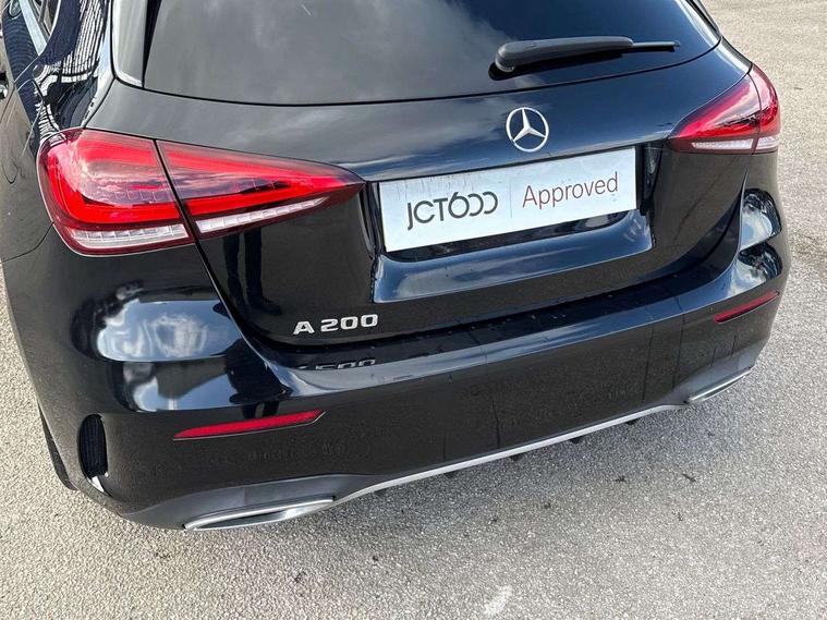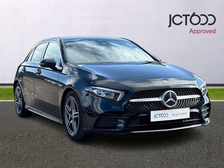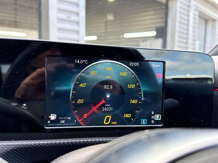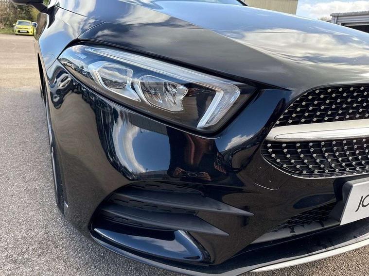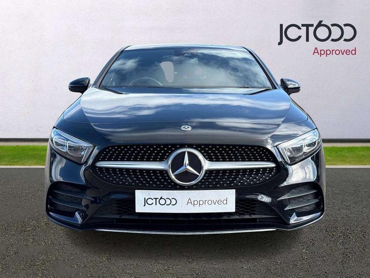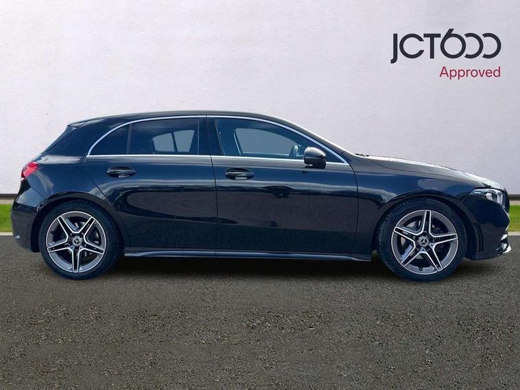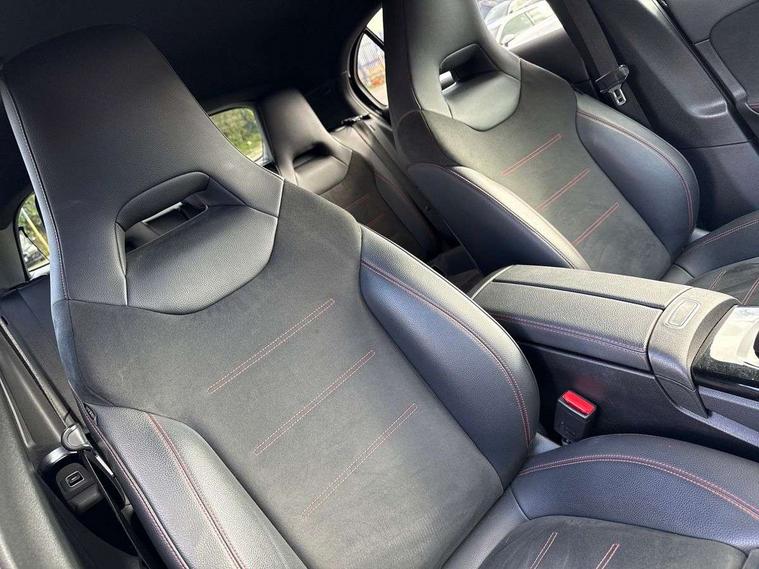 180 degree rear view camera with parking guidelines, 7" colour screen in instrument panel, 7" touchscreen media display, Active lane keep assist, Attention assist, Brake pad wear indicator warning light, Car wash mode, Cruise control + speed limiter, Direct steering, Dual bluetooth interfaces, DYNAMIC SELECT with a choice of driving modes (ECO, Comfort, Sport and Individual), ECO start/stop function, Fluid level warning indicator for fuel, oil, coolant and washer fluid, Hard-disk navigation, Hey Mercedes Voice activation, Lamp failure indicator, Mercedes me connect including emergency call system, accident recovery, breakdown and maintenance management, Outside temperature gauge, Owners manual in English, Pre-installation for private car sharing, Pre-installation for Vehicle Monitoring, Pre-installation for Vehicle Setup, Preinstallation for Mercedes Benz link, Service indicator (ASSYST), Speed sensitive power steering, Trip computer, Lowered comfort suspension, Rear axle torsion beam, 2 USB ports (type C) in rear stowage compartment and one in front of center console, 6 speakers, DAB Digital radio, MBUX multimedia system with DAB digital radio and touchpad including satellite navigation, Mercedes-Benz sound system - 100W, 4 Electric Front and Rear windows, Adaptive brake lights, AMG bodystyling - Front apron with splitter in chrome, rear apron with chrome trim and chrome visible trim elements in tailpipe, Black weather strip, Body colour bumpers, Body colour door handles, Body colour side skirt, Body coloured door mirrors, Chrome beltline trim, Diamond radiator grille with chrome pins and silver louvre + chrome insert, Electric adjustable and heated door mirrors with integrated LED side indicators, Exhaust system - Twin visible tailpipes in polished stainless steel, Headlamp assist automatic headlamp activation, Heated glass rear windscreen + timer control, LED high performance headlamps with integrated LED daytime running lights, LED tail lamp, LED third brake light, Privacy glass, Radio aerial, Rain sensing windscreen wipers with two sensitivity settings, Rear fog lights, Rear wiper, Window line trim strip in chrome, 3 Spoke flat bottom leather multi function steering wheel with perforated leather in grip area, 40:20:40 split folding rear seats, Artico man-made leather/Microfibre Dinamica upholstery with red contrast stitching, Auto Mercedes-Benz child seat recognition sensor, Black air vents with surround in silver chrome, Black roof lining, Brushed stainless steel sports pedals with rubber studs, Controller on centre console with chrome surround, Floor mats with stitched edging and AMG lettering, Front centre armrest with storage compartment, Front door sills with Mercedes Benz lettering, Front seat backs luggage nets, Front seat cushion length adjustment, Galvanished gear shift paddles on steering wheel, Heated front seats, Height/reach adjustable steering column, Interior mirror with reading lamps in black and frameless, Manual height adjustable front seats, Rear head restraints, Seat occupancy sensor for front passenger seat, Sports seats with integrated headrests, Stowage compartment in centre console with retractable cover, Sunvisors with illuminated vanity mirrors, Touchpad on center console, Twin front cupholders, Two zone thermotronic luxury automatic climate control, Light and sight pack - A Class, Seat comfort pack - A Class, 3 rear 3 point seatbelts, ABS with Brake Assist, Active bonnet, Active brake assist includes forward collision warning system with autonomous braking, Adaptive brake assist with hold function and hill start assist, Childproof locks manually operated for rear doors and electrically operated for rear power windows, Crash responsive emergency lighting, Driver and passenger head and side airbags, Drivers knee airbag, Dual stage driver/passenger airbags, Electronic parking brake, ESP curve dynamic assist, ESP with ASR, Front and rear seatbelt reminder, Front brake callipers with Mercedes Benz lettering, ISOFIX and top tether child seat fixing points in two outer rear seats, Tyre pressure monitoring system, Warning triangle and first aid kit, Window airbags, Alarm system/interior protection/immobiliser, Keyless Go, Remote central locking and crash sensor with emergency opening function, Urban guard vehicle protection system with immobiliser and interior protection, Black seatbelts, Dinamica microfibre trim in black, 18" AMG 5 twin spoke light alloy wheels in titanium grey with highsheen finish, Summer tyres, Tirefit sealant kit,