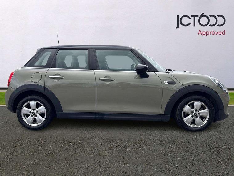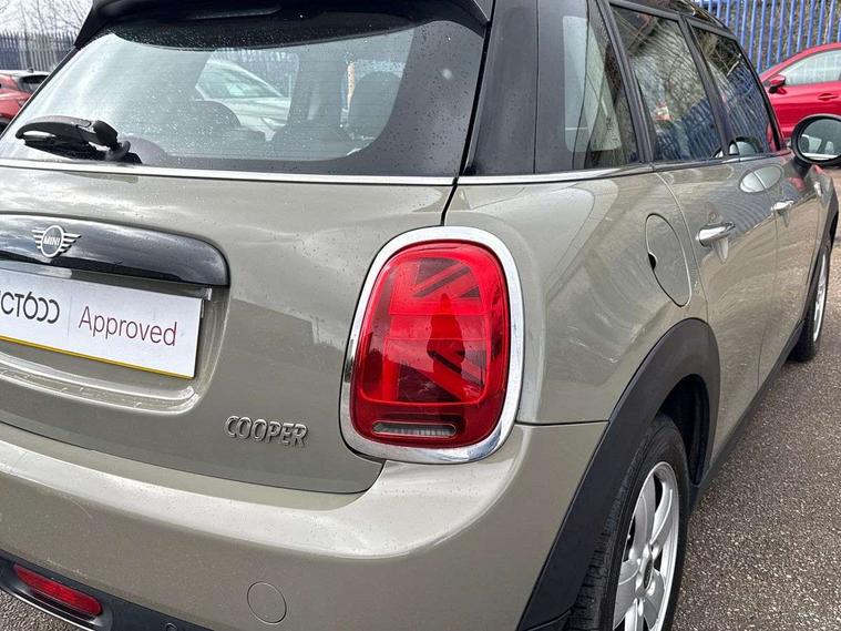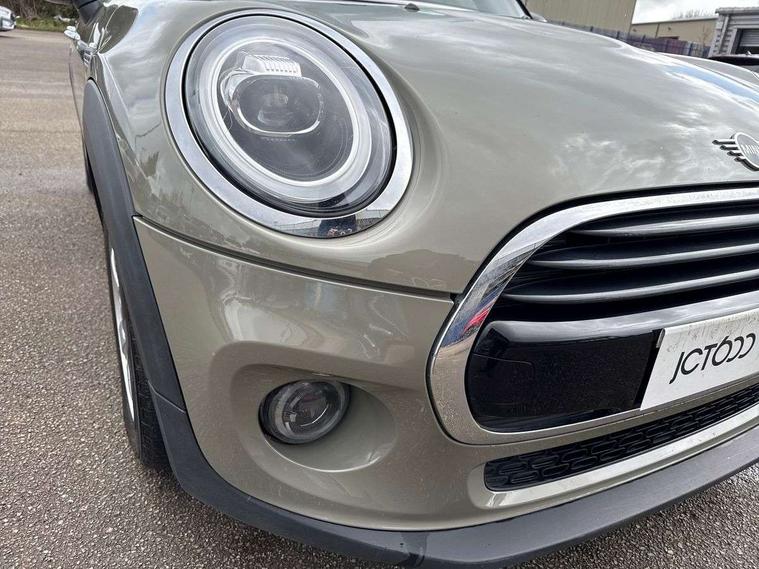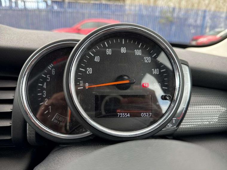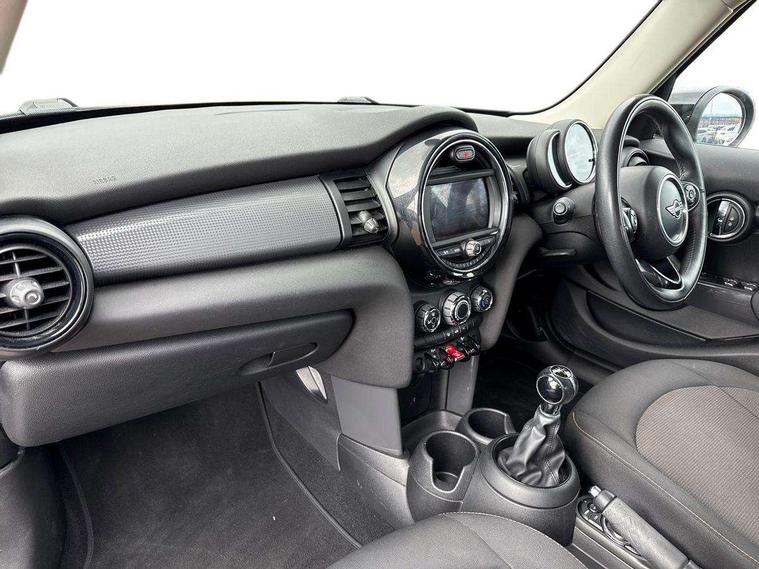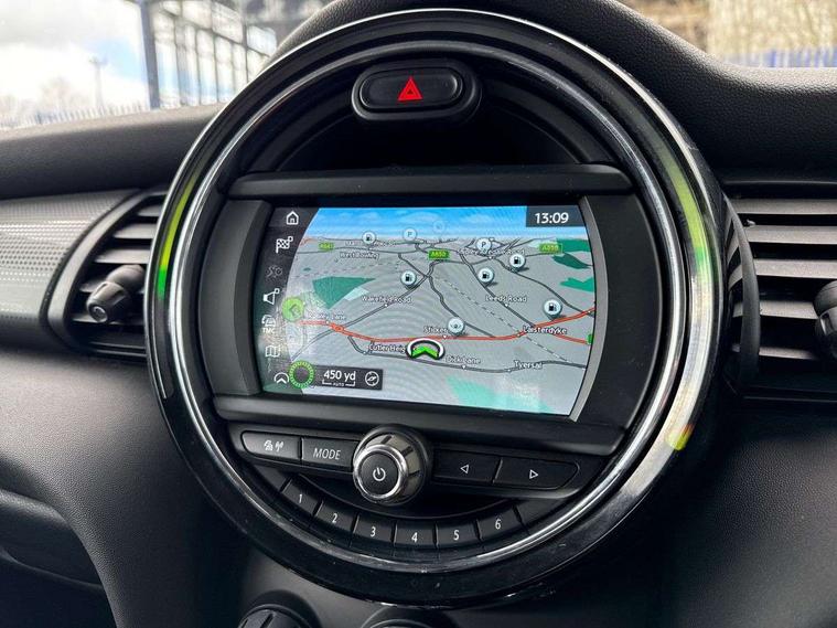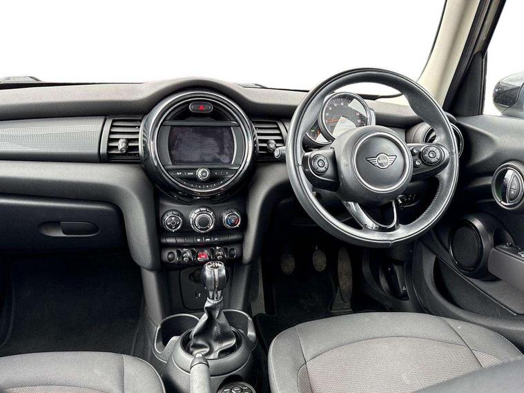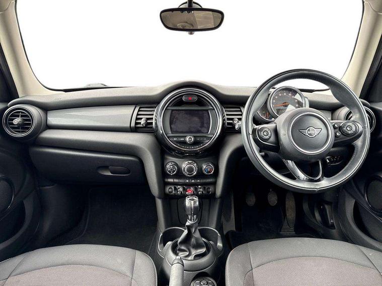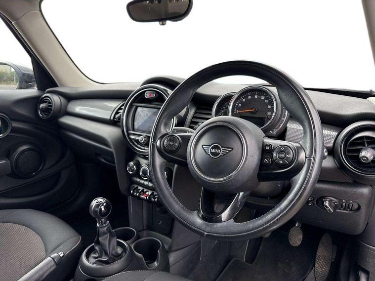 Automatic start/stop function with brake energy recuperation, Compatible mobile phone bluetooth with audio streaming, Electro-mechanical speed dependant steering assistance, Instrument cluster, Mini E-call, MINI TeleServices, On board computer, Service interval indicator, Double Vanos system, Fully variable valve control, High precision injection, 6.5" touchscreen with LED ring, FM tuner and DAB digital radio, Automatic headlight activation switch, Body colour fuel filler cap, Chrome border high gloss black slats radiator grille, Dynamic brake lights, Electric front+rear windows, Heated rear window, Heated windscreen washer jets, LED headlight with closed ring and daytime driving lights, Left exhaust tailpipe with chrome finisher, Metal door sill strips with MINI imprint, Model logo Cooper on right of tailgate, Rain sensor window wipers, Rear fog lights, Rear LED lights with union jack design, Rear window wiper, Side scuttle panel with integrated indicator, Sun/heat protection glass, White indicator lenses, 12V Accessory socket in centre console, 4 lashing eyes in luggage compartment, 60/40 split folding rear seat, Chrome interior highlights, Colour line - Carbon black, Cupholders, Front and rear head restraints, Front and rear isofix with front passenger airbag deactivation, Glove compartment, Height and length steering column adjustment, Interior lighting with 12 basic colours selectable via toggle switch in roof, Leather gearshift lever and handbrake gaiters, LED reading lights, vanity mirror lights, front foot well light and spotlight on front seats, Manual air conditioning, Mechanical seat adjustment, driver seat height adjust, forward/back and front seats backrest, Mini logo projection on floor from drivers exterior mirror, Multifunction steering wheel, Satellite grey headlining, Storage compartments in doors, Sunvisors with vanity mirrors, 3 point seatbelts on all five seats, 6 Airbags - front, side, head and seat belt tensioners, Anti-lock braking system (ABS), DSC - Dynamic Stability Control, Front and rear disc brakes, Hill start assist, Single tone fanfare horn, Tyre pressure monitoring system, Alarm system with tilt sensor, monitoring doors, bonnet interior and tailgate, Electronic vehicle immobiliser, Start/stop toggle with keyless go, Tool kit,