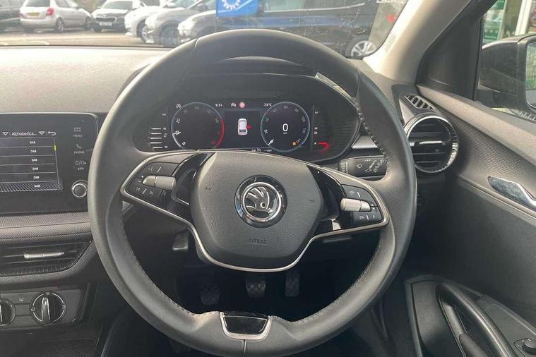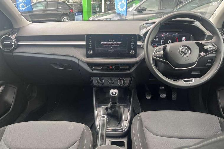 Advanced driver attention and drowsiness monitor, Bluetooth connection, Electromechanical power steering, Exterior temperature gauge, Service interval indicator, Traffic sign recognition, Virtual cockpit with 10.25" colour display, Wireless SmartLink for Apple CarPlay and Android Auto, 6 Speakers (4 in front and 2 in rear), Auxiliary socket for external MP3 player, DAB digital radio reception, Body coloured bumpers, Dimming rear view mirror with black frame, Door mirror integrated indicators, Front and rear electric windows, Front window wiper intermittent control, Headlight range control - Automatic, Ice scraper in fuel cap, LED daytime running lights with coming and leaving home feature, LED rear lights, Privacy glass, Rear LED fog light, Rear side wing doors, Rear window wiper with washing nozzles, Roof mounted spoiler, SKODA tailgate lettering in chrome, Third brake light, 2 reading lights in front and 2 reading lights in rear, 3 rear headrests, Backrest split and folding, Central console with removable cup holder and storage box, Chrome handbrake release button, Fabric upholstery, Front centre armrest, Gearshift knob/handle in leather, Grain satin black interior door handles, Hand brake lever handle in leather, Height adjustable front headrests, Height adjustable steering wheel, ISOFIX and TopTether anchorage points to the outer rear seats, ISOFIX and TopTether on the front passenger seat, Luggage compartment lighting, Manually adjustable lumbar support in front seats, Pollen filter, Rear seat bench unsplit, Single front passenger seat, Storm grey headlining, Sun visors with mirror and airbag label on passenger side, Textile floor mats, Ticket holder, Umbrella in drivers door, 3-point height adjustable front seats belts with pretensioner and force limiter, Automatic warning lights in case of crash, Driver and passengers airbag with switch off function, e-Call+, ESC including ABS, MSR, ASR, EDS, HBA and XDS, Front and rear seat belt warning, FRONT ASSIST (AEB City and AEB Inter Urban), Front side airbags, Head airbags, Hill hold control, One tone horn, Pedestrian protection, Three rear 3-points safety seat belts with pretensioner and force limiter including stop function for outer rear seat belts, Tyre pressure monitoring system, Anti-theft alarm system including immobiliser, interior monitoring, backup horn, and towing protection, Central locking with radio remote control, interior controls, SAFE function and 2 foldable keys, Colour Edition air vents, Grain satin black central console cover, Metallic grey upper decorative trim, Satin black door and side trim panel in front, Textile Kota grey lower decorative inserts, Anti-theft wheel bolts protection, Super-low rolling resistance tyres,
