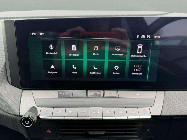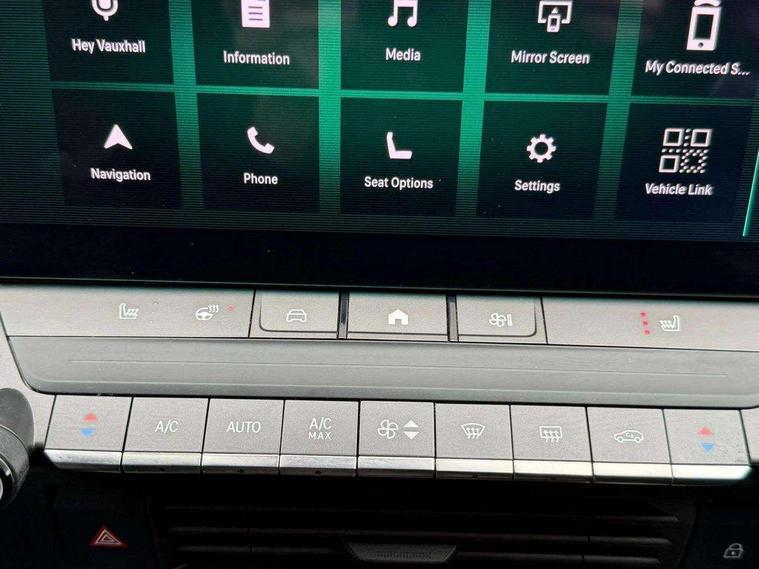 Adaptive cruise control with intelligent speed adaption, Bluetooth connectivity, Breakdown call (b-call), Digital central facia display with audio info, digital clock with automatic RDS time adjustment and Outside air temperature with ice warning function, Digital instrumentation - Speedometer, rev counter, satellite navigation display, low fuel & water temperature warning light, shift up/down indicate light, Drive Smart - Live navigation provided by TomTom and Real time traffic news, Driver drowsiness alert system, Driver information display - Total mileage, service due indicator, oil life, eCall emergency system, Extended traffic sign recognition, Front and rear parking distance sensors, Front camera system, Handsfree calls via steering wheel controls, In-crash braking, Intelli vision 360 degree panoramic parking camera, Lane departure warning with lane keep assist, Lights on audible warning, Live navigation plus, Multifunction trip computer - Trip mileage, vehicle range, average speed and fuel economy, instantaneous fuel economy and driving time, Natural voice recognition with satellite navigation commands, phone connectivity functions, choice of music playback and operation of electronic clima, Over the air updates and WiFi updates, PAS, Phone book access, Pure Panel pro 10" Digital instrument cluster and 10" Infotainment colour touchscreen with full glass execution, RDS with traffic programme, Service interval indicator, Speed sign recognition, Start/stop system, Vauxhall connect, Vehicle microphone, Vehicle status and information, 6 speakers, AM/FM stereo radio with 36 station presets, DAB Digital radio, Front USB connection, Front USB connection with iPod control, Smartphone interface with Apple CarPlay, Android Auto and Wireless smartphone projection, Steering wheel audio, phone and cruise controls, Active bonnet/headlight/wiper structure, Adaptive brake lights, Automatic lighting control, Black door mirrors, Black Griffin logo and vizor frame, Black lower window frame moulding, Body colour sports style bumpers with high gloss black lower front grille decor blade and rear valance panel, Body coloured door handles, Dark tinted rear windows, Door to door illumination, Electric adjustable/heated/folding door mirrors + puddle lights, Electrically operated front and rear windows with safety auto reverse and one touch up/down facility, Frameless automatic anti dazzle rear-view mirror, Heated rear window, High beam assist, Intermittent rear window wash/wipe, LED daytime running lights, LED front fog lights, LED Headlights, LED side repeat indicators, LED tail lights, Manual headlight levelling, Rear side wing doors, Shark fin aerial, Soundproof insulated windscreen, Third brake light, Two speed rain-sensitive windscreen wipers with variable intermittent wipe, Windscreen and side window demist vents, 12V electrical accessory socket in front, 3 seat bench in 2nd row, 60/40 split folding rear seat, Alloy effect sports pedals, Ambient light (customisable with 8 colours), Black headliner, Centre rear seat armrest and load through facility, Chrome effect interior door handles, Driver's and front passenger's sunvisors, Drivers ergonomic active sports-style seat (AGR approved), Dual zone electronic climate control, Eight way adjustable height, reach, tilt, backrest, seat cushion extension, head restraint in drivers seat, Fade up/down front and rear courtesy light, Flex load floor, Folding storage box on driver side lower facia, Four adjustable facia vents, Four lashing eyes in load compartment, Four way adjustable height, reach, backrest, head restraint in front passengers seat, Four way electrical lumbar adjustment, Front and rear seatbelts, Front centre armrest with cupholder, Front door pockets, Front head restraints, Fully carpeted load area, Glovebox with lid, Greta fabric upholstery with side bolsters and surrounds, Heated front seats, Heated steering wheel, Illuminated load area, Illuminated vanity mirrors, Interior tailgate handle, Isofix child seat mounting points on outer rear seats, Luggage compartment cover, Pollen filter, Reach and rake adjustable steering column, Rear centre headrest, Rear door pockets, Rear head restraints, Rear reading lights, Single front passenger seat, Storage compartment in centre console, Three spoke flat bottom perforated leather covered steering wheel, Twin gas assisted tailgate struts, Two drinks holder in centre console, 3x3 point rear seat belts, 8 Airbags - Drivers and front passengers airbags, Front seat side-impact airbags and Full-size curtain airbags, Anti-lock braking system (ABS), Automatic emergency braking with pedestrian detection, Child locks on rear doors, Cornering brake control, Deactivation switch for front passengers front and side impact airbags, Drag torque control, Electronic brake force distribution, Electronic parking brake, Emergency brake assist, ESC - Electronic Stability Control + traction control, Fading brake support, Forward collision alert at all speed, Front and outer rear seatbelt force limiters, Hill start assist, Outer rear seatbelt pretensioners, Rollover mitigation, Seatbelt unfastened audible warning and warning light, Straight line stability control, Tyre pressure monitoring system, Upper and lower bumper design to reduce upper and lower leg injuries, Deadlocking system, Key left in ignition audible warning, Keyless entry and start, Locking wheel nuts, Remote control central locking, Remote control ultrasonic security alarm system, Black facia with isabella trim inserts, Instrument panel bar in Liquid palladium, Mistral black trim inserts on front doors, Emergency tyre inflation kit,
