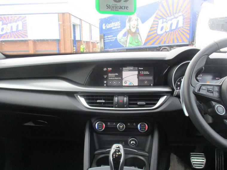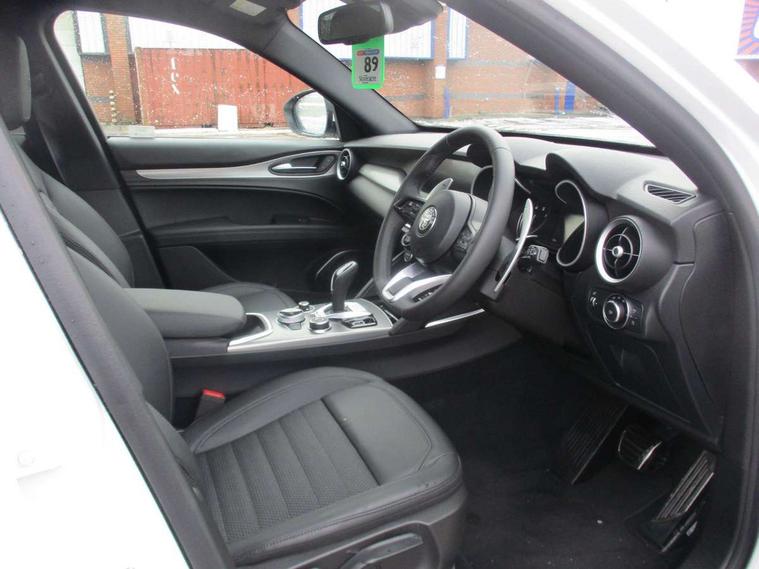 Cold weather pack - Stelvio, Electrically adjustable seats pack, Monotone wheel centre caps, Summer tyres, Alarm system with bonnet and intrusion protection, Immobiliser, Remote central locking, Thatcham vehicle theft alarm with hood protection and intrusion sensor, 2 USB Power socket for rear seat, DAB digital audio broadcast, USB and Aux in armrest, 3x3 point rear seatbelts, ABS, Autonomous emergency braking, Electronic parking brake, Electronic stability control, Hill descent control, Integrated brake system, Manual child lock in rear doors, Passenger airbag deactivation system, SOS - Emergency Call Button, Traction control, Tyre pressure monitoring system, 35W Bi-xenon headlamp with AFS function, Alfa romeo assistance sticker, Aluminium tunnel cover, dashboard insert and door handle surround, Automatic headlights with dusk sensor, Automatic rain sensing wipers, Body colour bumpers, Dark glossy front grille V insert, Stelvio Q4 badge, Mirror Caps, Exhaust tips and skid plate, Dark tinted rear windows, Daytime running lights, Electrically adjustable and folding door mirrors, Headlight washers, LED brake lights, LED rear lights, Rear side wing doors, Rear wash/wipe, Sprint badge front wing, Third brake light, Transportation protection cover, Twin chrome exhaust tailpipes, 12V outlet on dashboard, 230V/50hz auxiliary power outlet in trunk, 3 rear seats, Aluminium kick plate, Aluminium metal sport pedals and footrest, Aluminium scuff plates, Aluminium shift paddles on steering column, Black painted interior bezels, Dual zone auto temp control with humidity sensor, English handbook, Front head restraints, Front/rear floor mats, Leather upholstery, Rear climate control vent, Single front passenger seat, Sport leather steering wheel with multifunctional controls and engine start button, Sports leather gear knob, Third rear headrest, 7 - inch colour TFT instrument cluster, 8.8" screen colour display, Alfa Connect 3D Nav 8.8" Infotainment system (radio, 3D Nav, MP3, aux-in, bluetooth), Alfa connect box, Alfa connected services, Alfa Romeo DNA driving mode selector, Apple car play/Android Auto, Forward collision warning, Front and rear parking sensors, PAS, Rear view camera, Remote tailgate release with key fob button, Rotary pad, Stop/start system, TMC Pro, Trip computer, West European Map,