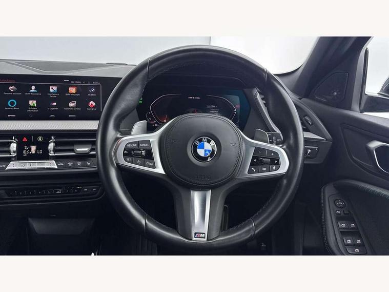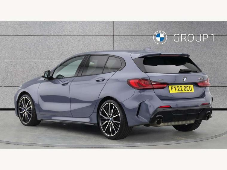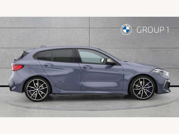 Active guard plus, Attentiveness assist, BMW ConnectedDrive online services, BMW Teleservices, Check Control warning system for monitoring of lights and door/luggage compartment open warning, Cruise control with brake assist, Eco pro mode, Electric power steering, Electro hydraulically controlled multi-plate clutch transfers drive to rear axle and with power take-off device located on the front differential., Energy efficient operating strategy, Front axle single joint with specific axle kinematics to minimise drive influences on steering + provide increased rigidity agile driving behaviour, Gearshift time display in manual mode, Integrated owners handbook, Lane departure warning system, M Sports steering with M135i xDrive specific settings, Oil sensor for level and grade, On board computer, Optimum shift indicator, Personal Profile, Pull away assistant, Rigidly mounted rear subframe - Multi link construction with separate spring / damper configuration and excellent driving characteristics, Speed limit Info including no-overtaking indicator, Speed limiter, Sporty fast gear shifting in sport mode, Aluminium lightweight construction, Anti roll bar front and rear, Balancer shaft, Double VANOS, Drive Performance Control, Eight speed sport automatic transmission with gearshift paddle switches, Electronic differential lock, Electronic selector lever, Engine cover with M performance designation, High precision injection, Larger fuel tank capacity (50 litres), Launch control, M135i specific heavily de-throttled engine intake air guide, M135i specific high-performance cooling package, M135i specific larger turbocharger with integrated divert-air valve, Petrol Particulate Filter, Twin tube gas filled shock absorbers with degressive characteristic curve, VALVETRONIC engine management, Variable, stepless and infinitely adjustable distribution of drive torque between the front and rear axles, xDrive intelligent all wheel drive with M135i specific reinforced components, DAB Digital radio, Auto dimming rear view mirror, Automatic headlight beam throw control, Automatic windscreen wipers and automatic headlight, Body colour door handles, Body colour roof trims, Cerium grey exterior mirror caps, Direction indicator side lights in exterior mirrors, Exhaust tailpipe, Cerium Grey with bevelled finish - twin, round 100mm, left and right split, Fading support, Folding side mirrors with auto dimming/folding wing mirrors with auto dimming, Follow me home headlights, Front and rear bumper system with replaceable deformation elements, Front and rear electric windows with open and close fingertip control, anti trap facility and comfort closing, Front door sill finishers with M135i designation, Green tinted heat protection glazing, Heated, electrically adjustable exterior mirror aspheric on driver side, convex on passenger side, High gloss shadowline window frame, Recess cover mirror frames and B/C pillar embelisher trim, High level third brake light, Integrated front windscreen with washer jets, Kidney grille frame in Cerium Grey with Mesh design, LED daytime running lights, LED eyebrow turn indicators, LED front fog lights, Lightweight engineering, M logo designation side in cerium grey, M Performance exhaust system with valve control and minimised exhaust back pressure, M Performance specific setup, M Sport spoiler, Matt black air guide grilles, Matt black wheel arch trim, Model designation on electric bootlid includes xDrive designation for M135i xDrive, Nearside reverse light in rear light cluster, Preparation for high beam assistant, Rear fog lights, Rear side wing doors, Rear window wiper, Reinforced crank drive, new pistons and adapted con rods, Shark fin antenna, Trailer stabilisation logic, Visible VIN plate, Welcome lighting, 12V power socket in front centre console with blanking plug, 3 rear seat head restraints, 3 seat bench in 2nd row, 3 spoke sports leather steering wheel with black leather and stitching, pearl chrome decorative finish, specific M Badge, Ambient interior lighting, Anthracite headlining, Black boot net with lashing eyes, Cargo function on 2nd seat row, Child seat ISOFIX attachment for two outer rear seats and front passenger seat with anchorage points, Conditioned based service, Driver and front passenger seat heating, Folding rear clothes hook, Four grab handles integrated in roof lining, Front and rear door pockets with bottle holders, Front and rear side armrest integrated into door trim, Front armrest, Front integrated head restraints, Front M sports seats, Glove compartment, Luggage compartment for bag hooks on left and right, foldable luggage compartment liner and four lashing eyelets, Manual adjust steering wheel, Multi-function controls for steering wheel, Single front passenger seat, Storage compartment in centre console, Sun visors with vanity mirrors and insert tab, Two front centre console cupholders, Two zone automatic air conditioning, Velour floor mats, Additional interior lighting pack - 1 Series M135i, BMW live cockpit professional pack- 1 Series, Connected pack professional - 1 Series, Interior lights pack - 1 Series, M Sport exterior styling aerodynamics pack - 1 Series 135i, 2 tone horn, 3 point seatbelts on all seats, front pyrotechnic belt tensioners, stopper and belt force limiters, rear coded belt buckles, Airbags - Front driver/passenger, front and rear curtain head protection, front side, manual deactivation of front passenger airbag, Anti lock braking system (ABS) with brake assist, BMW emergency call, Brake drying, Braking readiness, Child proof locking system in rear door, City braking function, Comfort modes, Cornering brake control, Crash sensor activating central locking release, hazard warning lights, fuel cut off, interior lighting + activation of safety battery terminal clamp, Driver and front passenger seat belt security check, Dynamic stability control + (DSC+), Dynamic Traction Control - DTC, Electrically operated hand brake including automatic ho