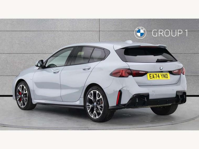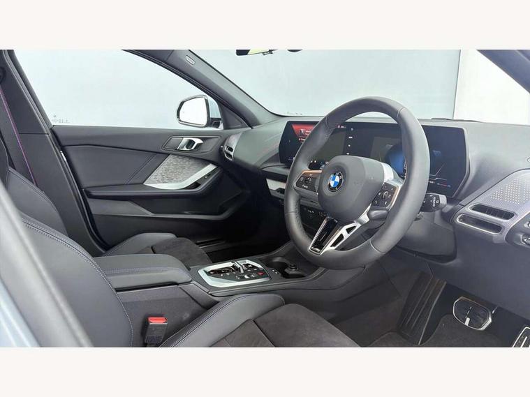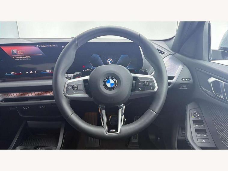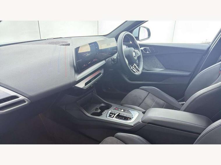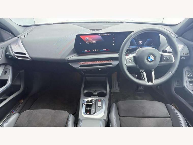 Active guard plus, Attentiveness assist, Bluetooth / WiFi interface for wireless connection of mobile terminal devices and audio streaming, BMW ConnectedDrive online services, BMW Live cockpit plus, BMW Teleservices, Check Control warning system for monitoring of lights and door/luggage compartment open warning, Cruise control with speed limiter, Eco pro mode, Electric power steering with Servotronic steering optimised at all speed ranges, Front and rear parking sensors, Front axle single joint with specific axle kinematics to minimise drive influences on steering + provide increased rigidity agile driving behaviour, Integrated owners handbook, Lane departure warning system, Oil sensor for level and grade, On board computer, Optimum shift indicator, Park assist including reversing assistant, lateral parking aid and reversing assist camera, Personal Profile, Pull away assistant, Rigidly mounted rear subframe - Multi link construction with separate spring / damper configuration and excellent driving characteristics, Speed limit Info including no-overtaking indicator, Speedometer, 49 litre fuel tank, Aluminium lightweight construction, Anti roll bar front and rear, Balancer shaft, Double VANOS twin scroll turbocharging system, Drive Performance Control, Electronic differential lock, High precision injection, M Adaptive suspension, Petrol Particulate Filter, Twin tube gas filled shock absorbers with degressive characteristic curve, VALVETRONIC engine management, DAB Digital radio, Auto dimming rear view mirror, Automatic headlight beam throw control, Automatic windscreen wipers and automatic headlight, Body colour door handles, Body colour mirror caps, Body colour roof trims, Chrome 'M' logo side designation, Chrome exhaust twin tailpipes round 90mm in left, Chrome kidney grille frame with Satin Aluminium struts, Direction indicator side lights in exterior mirrors, Electrically adjustable exterior mirror with mirror adjustment switch on drivers armrest and aspheric on driver side, convex on passenger side, Fading support, Folding side mirrors with auto dimming/folding wing mirrors with auto dimming, Follow me home headlights, Front and rear bumper system with replaceable deformation elements, Front and rear electric windows with open and close fingertip control, anti trap facility and comfort closing, Front door sill finishers in black plastic with M designation in metallic look, Green tinted heat protection glazing, High gloss shadowline window frame, Recess cover mirror frames and B/C pillar embelisher trim, High level third brake light, Integrated front windscreen with washer jets, LED daytime running lights, LED eyebrow turn indicators, LED front fog lights, LED Headlights, Lightweight engineering, Matt black air guide grilles, Matt black wheel arch trim, Nearside reverse light in rear light cluster, Preparation for high beam assistant, Rear fog lights, Rear side wing doors, Rear window wiper, Shark fin antenna, Trailer stabilisation logic, Visible VIN plate, Welcome lighting, 12V power socket in front centre console with blanking plug, 3 rear seat head restraints, 3 seat bench in 2nd row, 3 spoke sports leather steering wheel with black leather and stitching, pearl chrome decorative finish, specific M Badge, Anthracite headlining, Black boot net with lashing eyes, Cargo function on 2nd seat row, Child seat ISOFIX attachment for two outer rear seats and front passenger seat with anchorage points, Conditioned based service, Driver and front passenger backrest net on rear, Driver and front passenger seat heating, Driver side folding compartment in instrument panel, Folding rear clothes hook, Four grab handles integrated in roof lining, Front and rear door pockets with bottle holders, Front and rear side armrest integrated into door trim, Front armrest, Glove compartment, Height adjustable front head restraints, Luggage compartment for bag hooks on left and right, foldable luggage compartment liner and four lashing eyelets, Manual adjust steering wheel, Multi-function controls for steering wheel, Rear seat backrest with manual 60:40 split folding with 3 top tether clips integrated on rear of seat panels, Single front passenger seat, Storage compartment in centre console, Storage compartment in luggage compartment, Stowage of the parcel shelf in luggage compartment trim, Sun visors with vanity mirrors and insert tab, Two front centre console cupholders, Type C two USB ports in rear centre console, Velour floor mats, Connected pack professional - 1 Series, Interior lights pack - 1 Series, M Sport exterior styling aerodynamics pack - 1 Series, 2 tone horn, 3 point seatbelts on all seats, front pyrotechnic belt tensioners, stopper and belt force limiters, rear coded belt buckles, Airbags - Front driver/passenger, front and rear curtain head protection, front side, manual deactivation of front passenger airbag, Anti lock braking system (ABS) with brake assist, BMW emergency call, Brake drying, Braking readiness, Child proof locking system in rear door, Comfort modes, Cornering brake control, Crash sensor activating of airbags, Unlocking doors, hazard warning lights, interior light, safety battery terminal, Driver and front passenger seat belt security check, Dynamic stability control + (DSC+), Dynamic Traction Control - DTC, Electrically operated hand brake including automatic hold function, Front and rear disc brakes, Seatbelt warning, Side impact protection, Tyre pressure monitoring system, Warning triangle and first aid kit, Central locking switch for all doors, fuel filler cap and luggage compartment, Deadlocking function system to all doors, Drive away locking system on all doors and luggage compartment with de-activated in iDrive settings, Locking wheel bolts, Remote control with integrated key with High-gloss Black inlay and M designation and 1 button for open/ close lock, window, open luggage compartment, Start/stop button illuminated in centre console with keyless engine start and auto 