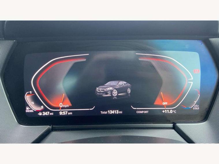 Active guard plus, Attentiveness assist, Auto start-stop, BMW Intelligent Personal Assistant, BMW Live Cockpit Professional with 10.25" high resolution instrument and control display, BMW Online services, BMW operating system with 7.0 mid interface, BMW Teleservices, Check Control warning system for monitoring of lights and door/luggage compartment open warning, Cruise control with braking function, Electric Power Steering (EPS) with Servotronic, iDrive controller with 7 short cut favourite buttons on centre console, Integrated navigation data with map data via USB +features such as 3D landmarks and micro city models, Integrated owners handbook, Intelligent voice assistant, Lane departure warning system, On board computer - average speed+fuel consumption, service interval, clock/date, odometer/trip meter, outside temperature display and ice warning, Optimum shift indicator, Personal Profile, Pull away assistant, Speed limiting function, 8 speed sport automatic transmission with electronic selector lever, auto P function, coasting idle, race track, sport, gearchange display manual mode, Aluminium lightweight construction, Balancer shaft, Common rail direct injection, Diesel particulate filter, DOHC valvetrain with two upper camshafts, Drive performance control with ECO PRO comfort + sport mode, Electronic differential lock, Larger fuel tank capacity (50 litres), Launch control, Performance Control, Suspension with twin tube gasfilled shock absorbers, Anti roll bars, single joint front axle kinematics to minimise drive + Rigidly mount rear subframe, TwinPower turbocharger with variable vane turbine geometry, 2x USB Type C ports (for charging and data transfer), 4G LTE Connectivity with hard wied 4G network sim card, DAB digital radio, MP3 players and RDS double tuner, Active aerodynamics, Auto wipers, Automatically dimming rear view mirror, Body colour door handles, Body colour mirror caps, Chrome exhaust single tailpipe, round, Direction indicator side lights integrated exterior mirrors, Electric windows - front and rear, with open/close fingertip control and trap release, Fading support, Follow me home headlights, Front and rear bumper system with replaceable deformation elements, Front bumper in Body colour with exclusive Sport air inlets finished in High gloss Black, Front door sill finishers in black plastic with BMW designation, Heated, electrically adjustable exterior mirror aspheric on driver side, convex on passenger side, High gloss black B pillar finish, High gloss shadow line exterior trim, High level third brake light, Kidney grille with 14 chrome high gloss black vertical bars, LED daytime running lights, LED front fog lights, LED Headlights, Lightweight engineering, Manual headlight beam throw control, Model designation on right side of tailgate, Preparation for high beam assistant, Rain sensor with automatic headlight activation, Rear boot, Rear bumper in Body colour with exclusive Sport design elements finished in High gloss Black, Rear fog lights, Rear side wing doors, Reversing light in rear light cluster, Welcome lighting, 12V power socket in centre console, 2 cupholders in front centre console, 3 rear seat head restraints, 3 rear seats, 3 spoke sports leather steering wheel and black leather rim with black stitching + decorative finisher in pearl chrome, Anthracite finished floor mats with contrasting surround, Automatic two zone climate control air conditioning, Child seat ISOFIX attachment for two outer rear seats and front passenger seat with anchorage points, Conditioned based service, Front and rear door pockets including bottle trays, Front and rear side armrests integrated into door trim, Front armrest foldable with integrated storage compartment, Front centre interior light over interior mirror and rear centre automatic interior light when door is opened/ignition switched off or via remote key, Front head restraints, Front passenger seat, Front sports seats with electric side bolster adjustment, Glove compartment, Glovebox with light, Luggage compartment lighting, Manually adjustment steering wheel column, Multi-function controls for steering wheel, Shift-by-wire selector shift, Steering wheel paddles, Sun visors with vanity mirrors and insert tab, Through loading system with 40/20/40 split folding rear seat, Two lashing eyes, Extended storage pack - 2 Series Gran Coupe, 2 tone horn, Airbag - Front driver and passenger, front and rear head, front side, curtain head protection, manual deactivation of front passenger airbag possible, Anti lock braking system (ABS) with cornering brake control, BMW emergency call, Brake drying, Braking readiness, City braking function, Crash sensor activating of airbags, Unlocking doors, hazard warning lights, fuel cut off, interior lighting+activation of safety battery terminal clamp, Dynamic stability control + (DSC+), Dynamic Traction Control - DTC, Electrically operated hand brake, Rear brake discs, Rear child proof door locks, Seat belt security check for driver and front passenger, Seatbelt warning, Side impact protection, Three point seat belts on all seats including front belt stopper, pyrotechnic belt tensioners and belt force limiters, Trailer stability control, Tyre pressure monitoring system, Ventilated front disc brakes, Warning triangle and first aid kit, Central locking switch for all doors, fuel filler cap and luggage compartment, Deadlocking function system to all doors, Drive away locking system on all doors and luggage compartment, Locking wheel bolts, Start/Stop button (illuminated) in centre console with keyless engine start and Auto Start-Stop deactivation button, Thatcham Cat.1 alarm and immobiliser, Two remote control key with integrated key - one button for open and close doors/fuel flap/tailgate and separate button for unlock luggage compartment, Contrast stitching on instrument panel, Illuminated Berlin interior trim, Reduced rolling resistance tyres,