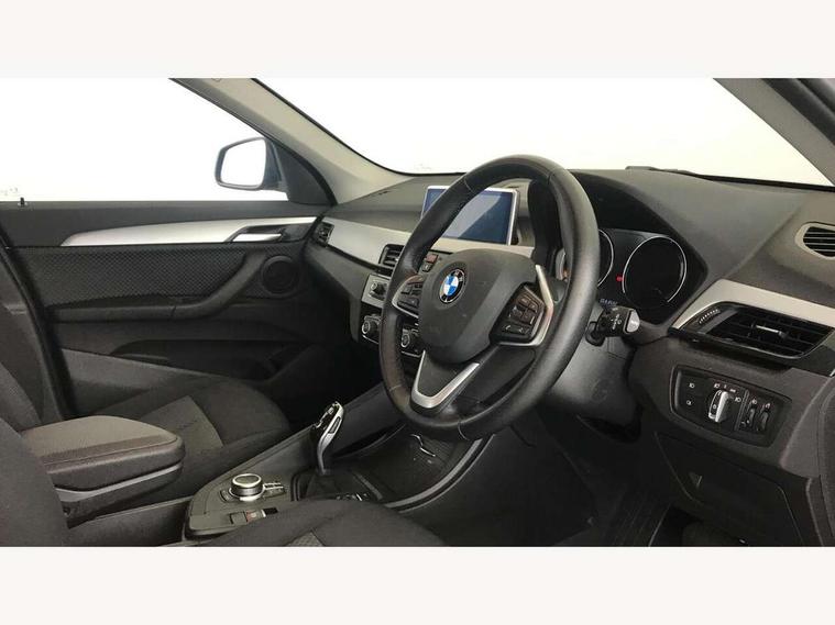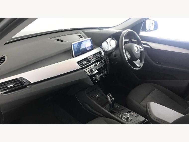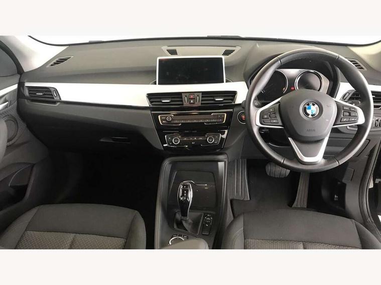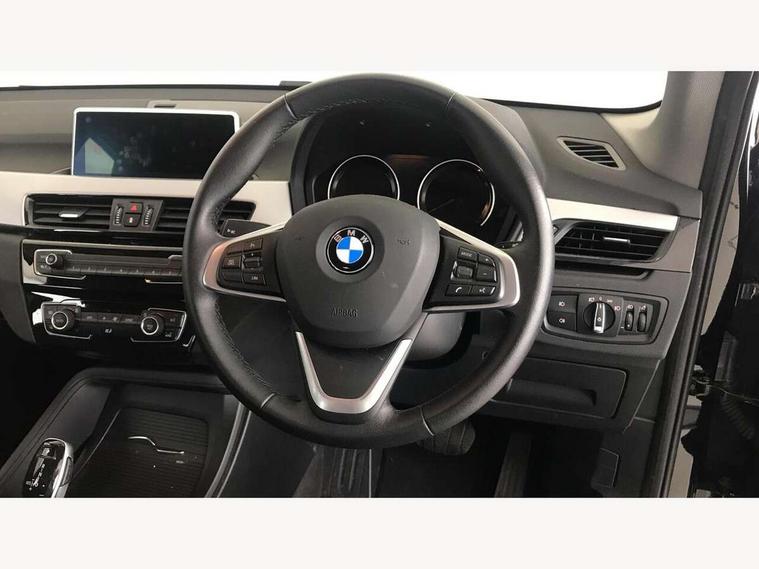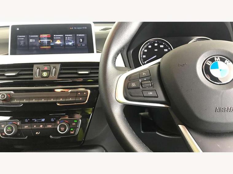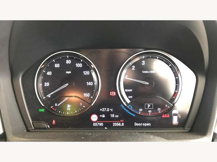 Ambient temperature display, Apple CarPlay, Arrow pointers, north up, direction of travel and perspective map displays, Attentiveness assist, Automatic tailgate opening, BMW ConnectedDrive, BMW Online services, BMW remote services, BMW Teleservices, Brake pad wear indicator in front and rear, Characteristic map controlled oil pump system, Front axle single joint with specific axle kinematics to minimise drive influences on steering + provide increased rigidity agile driving behaviour, Front/rear park distance control (PDC), Instrument cluster with Black optic display featuring superimposed dials and 5.7" colour display, Instrument cluster with speedometer with miles per hour read out, tachometer and fuel gauge, Integrated hard drive with map data updates via USB interface, Lights on warning by audio warning signal when ignition is switched off, On board computer, Operation by iDrive with direct selection buttons and 8 programmable buttons, Optimum shift indicator, Outside temperature gauge, Park assist system, Personal Profile - automatic lock when driving away selectable, Real time traffic information, Rigidly mounted rear subframe - Multi link construction with separate spring / damper configuration and excellent driving characteristics, Service interval indicator, Servotronic PAS, Tyre puncture warning system, 12V compressor with integrated sealant injection bottle and hose, Aluminium lightweight construction including crankcase, Anti-roll bars, Balancer shaft, Double VANOS, Drive performance control with ECO PRO comfort + sport mode, Electronic differential lock control (EDLC), High precision injection, Performance Control, Seven speed dual clutch automatic transmission (DCT), Standard suspension, Stop/start function, Turbocharger with Valvetronic, Twin tube gas filled shock absorbers with degressive characteristic curve, DAB Digital radio, Adjustable headlights, Aero curtain, Automatically dimming rear view mirror, Black roof rails, BMW Icon design LED daytime driving lights, Body colour bumpers, Body colour door handles, Body colour door mirrors, Direction indicator side lights integrated exterior mirrors, Dynamic brake lights, Electric windows - front and rear, with open/close fingertip control, anti-trap facility and comfort closing, Electrically adjustable door mirrors with aspheric on driver side, convex on passenger side with integrated indicators, Follow me home headlights, Front air guide finished in black silver, Front and rear bumper system, Green tinted heat protection glazing glass, Headlight beam throw control, Heated door mirrors, Heated windscreen washer jets, High level third brake light, Kidney grille with 14 chrome black vertical bars, LED direction indicator lights in headlight eyebrow, LED front fog lights, Lightweight engineering, Model designation, Rain sensor including auto headlights activation, Rear fog lights, Rear window aerial, Rear window wash/wipe, Reversing light in rear light cluster, Roof mouldings in matt black, Shark fin antenna, Sill cover finished matt black, Single chrome exhaust tailpipe, Two eye face design on light, Visible VIN plate, Welcome lighting, 12v power point in centre console, 2 cup holders in front, 3 rear headrests, 3 spoke sport leather steering wheel, 40:20:40 split folding rear bench seat, Black door sill finishers with BMW designation, Boot light, Centre armrest in 20 degree part rear seat backrest, Child seat ISOFIX attachment for two outer rear seats and front passenger seat with anchorage points, Conditioned based service, Driver/front passenger seat backrest back with luggage net, Dual zone automatic air conditioning, Four grab handles integrated in roof linings, Front and rear side armrests integrated into door trim, Front centre armrest/sliding cover, Front centre interior light over interior mirror and rear centre automatic interior light when door is opened/ignition switched off or via remote key, Front standard seats, Front/rear adjustable head restraints, Illuminated glovebox, Leather gearknob/gaiter/handbrake grip, Luggage area underfloor compartment, Luggage compartment access via recessed handle below tailgate, Luggage compartment lighting, Luggage compartment loading edge with stainless steel insert, Manually adjustment steering wheel column, Multifunction steering wheel, Rear coded belt buckles, Standing free front adjustable armrest and fixed in different positions, Steering wheel gearshift paddles, Velour floor carpets, Extended storage package - X1, ABS/EBD, Audio/visual collision warning system, Automatic Stability Control (ASC), Battery safety cut-off, BMW emergency call, Brake drying, Brake energy regeneration, Braking readiness, Cornering brake control (CBC), Crash Sensor - activates hazard/interior lighting + unlocks doors, Driver/Front Passenger airbags, Driver/front passenger side airbags, Dynamic brake control, Dynamic stability control + (DSC+), Dynamic Traction Control - DTC, Electronic parking brake, Front and rear head airbags, Front passenger airbag deactivation, Front seatbelt force limiters, Front ventilated disc brakes, Hill start assist, Pyrotechnically pre-tensioned front seatbelts, Rear disc brakes, Rear door child safety locks, Seatbelt security check for driver and front passenger, Side impact protection, Three point seat belts in all seats, Twin horns, Tyre pressure monitor, Warning triangle and first aid kit, Central locking switch for all doors, fuel filler cap and luggage compartment, Check control system for monitoring of lights and door/luggage compartment open warning, Engine immobiliser, Locking wheel bolts, Remote control Thatcham category 1 alarm, Remote control with integrated two key, Start/stop button with comfort go keyless engine start and auto start stop deactivation button, Contrast stitching on instrument panel, Oxide Silver interior trim with high gloss black finisher, Low rolling resistance tyres,
