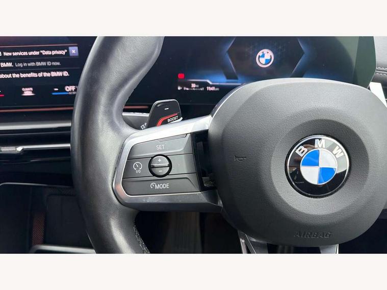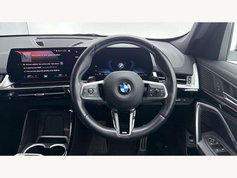 Active Guard + lane departure warning, speed limiting, front collision warning, Left turn warning with brake function and evasion assist, Attentiveness assist, Bluetooth / Wi-Fi interface with hands free system, BMW Intelligent Personal Assistant (natural voice control by voice command "Hey BMW"), BMW Live Cockpit Plus with 10.25" instrument cluster and 10.7" display, BMW Online services, BMW Teleservices, Brake pad wear indicator, Cruise control with brake assist, Drive off assistant, Electrically opening/closing tailgate with opening/closing with remote control and contactless opening and closing, Language version English, My Modes, Parking Assistant with Reversing Assistant, active PDC, Lateral Parking Aid, Rear View Camera and Park Distance Control, Personal Profile - automatic lock when driving away selectable, Servotronic PAS, Speed limiter, Tyre puncture warning system, Widescreen display, M Adaptive suspension, Performance Control, Steptronic transmission with double clutch and gear shift paddles, Stop/start function, DAB Digital radio, Tuner with diversity reception and RDS, AM radio and FM radio, Badge on engine compartment lid and tailgate, Body colour door mirrors, Body coloured bumpers, Contoured rear roof spoiler in vehicle colour with side aeroblades in black high-gloss, Daytime running lights, Dynamic brake lights, Electric adjustable heated door mirrors, Electric windows - front and rear, with open/close fingertip control, anti-trap facility and comfort closing, Folding door handles integrated flush with surface, Front and rear bumper panel with M specific design, in body colour with inserts in black high gloss, Front bumper panel with air inlet in matt black, Front door exit lights, Front entry sills aluminium inserts with M inscription, Heated rear window, High gloss shadow line roof rails, Invisible exhaust tailpipe, Key with M identification, LED 3rd brake light integrated in rear roof spoiler, LED number plate light, M specific radiator grille in satinated aluminium, Mirror caps painted in contrasting colour dark grey, Model inscription on right tailgate, Radiator grille struts in aluminium matt, Rain sensor including auto headlights activation, Rear bumper panel with two L-shaped trims In pearl chrome, Rear side wing doors, Rear wiper, Roof trim strips painted in body colour, Side sill covers with M specific design in body colour, Trailer stabilisation logic, Window washer nozzle for rear view camera, Windscreen wipers with front and rear heated washer nozzles, 2 cup holders in front, 2 x 12 V (in luggage compartment and front centre console), 2 x USB Type C ports for charging and data transmission (front centre console) and 2 x USB Type C ports for charging (rear centre console), 3 rear headrests, 3 seat bench in 2nd row, 3 upper retaining strap clips integrated into rear panels of seat backrests, 40:20:40 split folding rear bench seat, Ambient interior lighting, Anthracite headlining, Anthracite Velour front and rear floormats, Bottle trays in all doors, Child seat ISOFIX attachment for two outer rear seats and front passenger seat with anchorage points, Clothes hook rear, Driver and front passenger heated seats, Dual zone automatic air conditioning, Front and rear door pockets, Front centre console storage compartment, Front sports seats, Front/rear adjustable head restraints, Glove compartment, M Sport nappa leather 3-spoke steering wheel, Manual steering column height and depth adjustment, Map pockets, Middle centre console storage compartment, Passenger seat with manual adjustment of seat fore/aft position, backrest tilt, seat depth adjustment and seat and backrest side bolsters raised, Rear armrest in door trim panel, Single front passenger seat, Sliding rear seats - Mechanical fore and aft adjustment 130mm, Sport leather multifunction steering wheel with thumbrests and operation of instrument display, audio, telephone and driver assistance, Storage compartment with folding cover under centre console armrest cushion, Connected Package Professional - X1, Premier pack - X1, Technology pack - X1, ABS/EBD, Automatic hold function, Automatic Stability Control (ASC), Black belt painted in contrasting colour dark grey, BMW emergency call, Braking readiness, Cornering brake control (CBC), Crash Sensor - activates hazard/interior lighting + unlocks doors, Driver/Front Passenger airbags, Driver/front passenger side airbags, Dynamic stability control + (DSC+), Electromechanical parking brake, Energy recovery system, Front and rear brake discs, Front and rear head airbags, Front passenger airbag deactivation, Integrated brake system, PC iBrake PostCrash approach control warning with light braking function, Rear door child safety locks, Three point seat belt with belt buckle pre loading and belt force limiter, Three point seat belts in all seats, Tyre pressure monitor, Warning triangle and first aid kit, Alarm system with interruption of battery voltage, acoustic alarm, activation of hazard warning lights, Closing system with central locking including 2 vehicle keys with integrated emergency key, Immobiliser, Locking wheel bolts, Luxury instrument panel,