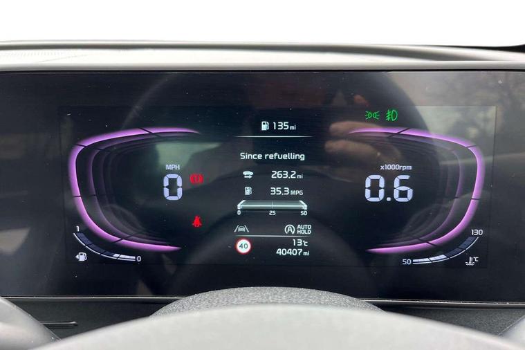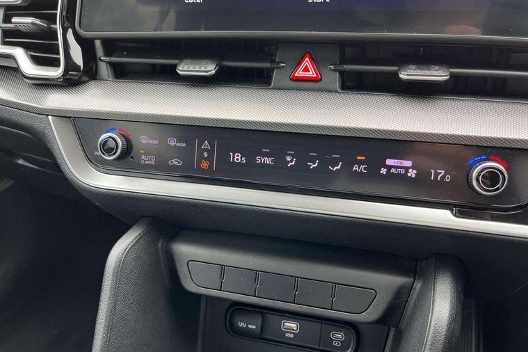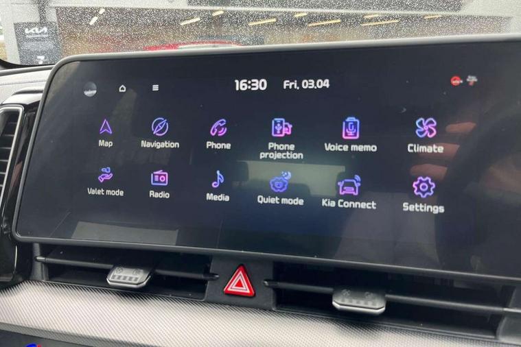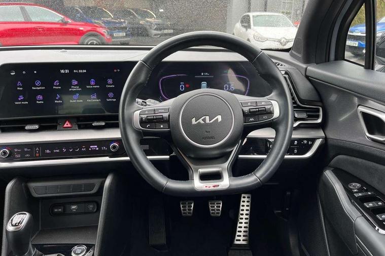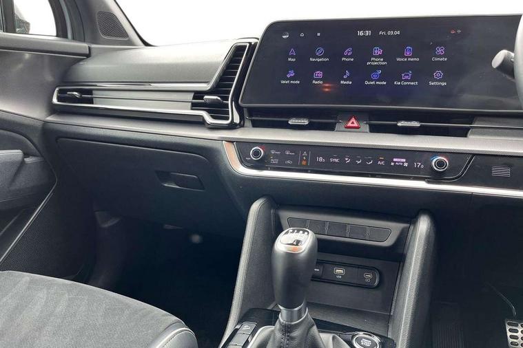 12.3" Display with navigation, 4.2" supervision colour cluster display, Apple car play/Android Auto with voice control, Cruise control + speed limiter, Drive mode selector, E-call, Forward collision avoidance assist (FCA) - city/pedestrian/cyclist/junction covering, Front and rear parking sensors, Intelligent speed limit assist, Kia Connect (UVO), Lane Following Assist (LFA), Lane keep assist, Low washer fluid warning, Rear view monitor, Reversing camera system integrated into centre fascia screen, Speed sensitive power steering, Trip computer, Windscreen washer level indicator, Intelligent Stop and Go, 6 speaker audio system, Bluetooth audio streaming, DAB Radio with MP3, Rear USB port, Steering wheel mounted audio controls, USB port for connection of a media device, All round electric windows with drivers and front passenger auto up/down function, Automatic headlight control system, Automatic window defogger, Backlite glass heated with timer, Body colour and black bumper with silver accents, Body colour door mirrors, Body colour exterior door handles, Body colour radiator upper garnish and door garnish, Electrically adjustable/heated/folding door mirrors with LED indicators, Front and rear skid plate - chrome, Gloss black radiator grille, Gloss black side sill and wheel arch body mouldings, High beam assist, Interior electrochromic mirror, LED daytime running lights, LED front fog lamps, LED headlamps (low and high beam - MFR type), LED High mounted stop light, LED rear combination lamp, Rain sensing wipers with aero blades, Rear fog lamp, Rear privacy glass, Rear side wing doors, Rear spoiler, Rear wiper, Satin finished beltline, Silver roof rack, Trailer stability assist, 12V power socket in front centre fascia and luggage compartment, 2nd row personal lamps, 3 seat bench in 2nd row, 3 x passenger assist grips, 40/20/40 split folding rear seat, All-round height adjustable headrests, Black headlining, Centre console storage box, Cupholders in rear armrest, D-Shaped sports leather steering wheel and perforated inserts with GT-Line logo, Door courtesy lamps, Drink holder at centre armrest, Driver and front passenger side sunvisors with illuminated vanity mirrors, Driver's seat manual height adjust, Drivers seat power lumbar support, Front and rear door storage, Front seat and rear pockets, Front/rear centre armrests, Gear shift indicator, Glovebox illumination, Interior door lock/unlock function, ISOFIX Child seat top tethers and anchor fixings outer rear seats, Luggage area light, Luggage area load cover, Luggage net with hooks, Metal paint interior door handles, Overhead console lamp, Rear coat hooks, Single front passenger seat, Sports pedals, Suede leather upholstery, Three zone climate control, Tilt/telescopic adjustable steering wheel, Ventilation ducts to rear compartment, Active front headrests, All round 3-point seatbelts, Anti-lock braking system (ABS), Dual front side airbags, Dual horn, Electronic parking brake, Electronic stability control with downhill brake control, Front passenger airbag cut-off switch, Front seatbelt pretensioners + load limiters, Height adjustable front seatbelts, Hill start assist control (HAC), Impact sensing auto door unlocking, Multi collision brake assist, Rear door child safety locks, Rear seat alert system, Traction control, Twin curtain airbags, Twin front airbags, Tyre pressure monitoring system, Advanced anti-theft system including immobiliser and alarm, Door deadlocks, Engine Start/Stop Button with Smart Entry System, Locking wheel nuts, Speed sensitive auto door locking, Visible vehicle identification number, Aluminium pattern finish centre fascia and door garnish, 19" Alloy wheels, Tyre mobility kit,