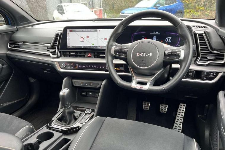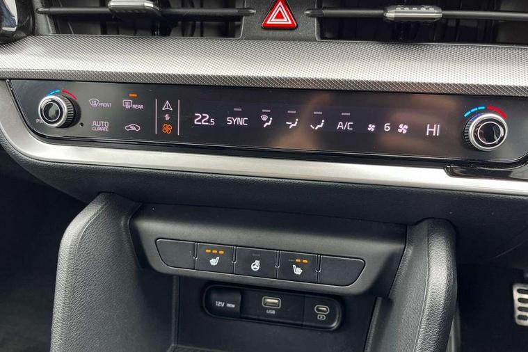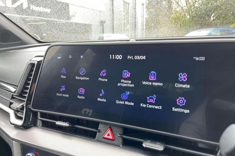 12.3" Display with navigation, 4.2" supervision colour cluster display, Apple car play/Android Auto with voice control, Drive mode selector, E-call, Forward collision avoidance assist (FCA) - city/pedestrian/cyclist/junction covering, Front and rear parking sensors, Intelligent speed limit assist, Kia Connect (UVO), Lane Following Assist (LFA), Lane keep assist, Low washer fluid warning, Rear view monitor, Reversing camera system integrated into centre fascia screen, Speed sensitive power steering, Trip computer, Windscreen washer level indicator, Intelligent Stop and Go, 6 speaker audio system, Bluetooth audio streaming, DAB Radio with MP3, Rear USB port, Steering wheel mounted audio controls, USB C type charging ports on centre console, USB C type charging ports on side of front seats, USB port for connection of a media device, All round electric windows with drivers and front passenger auto up/down function, Automatic headlight control system, Automatic window defogger, Backlite glass heated with timer, Black bumpers, Body colour and black bumper with silver accents, Body colour exterior door handles, Body colour radiator upper garnish and door garnish, Electrically adjustable/heated/folding door mirrors with LED indicators, Front and rear chrome skid plates, Gloss black door mirrors, Gloss black radiator grille, Gloss black side sill and wheel arch body mouldings, Glossy black roof rack, High beam assist, Interior electrochromic mirror, LED daytime running lights, LED front fog lamps, LED headlamps (low and high beam - MFR type), LED High mounted stop light, LED rear combination lamp, Rain sensing wipers with aero blades, Rear fog lamp, Rear privacy glass, Rear side wing doors, Rear spoiler, Rear wiper, Satin finished beltline, Silver coloured inserts to bumpers, Tinted rear glass, Trailer stability assist, 12V power socket in front centre fascia and luggage compartment, 2nd row personal lamps, 3 seat bench in 2nd row, 3 x passenger assist grips, 40/20/40 split folding rear seat, All-round height adjustable headrests, Black headlining, Centre console storage box, Cupholders in rear armrest, D-Shaped sports leather steering wheel and perforated inserts with GT-Line logo, Door courtesy lamps, Drink holder at centre armrest, Driver and front passenger side sunvisors with illuminated vanity mirrors, Driver's seat manual height adjust, Drivers seat power lumbar support, Front and rear door storage, Front seat and rear pockets, Front/rear centre armrests, Gear shift indicator, Glovebox illumination, Heated front seats, Heated steering wheel, Interior door lock/unlock function, ISOFIX Child seat top tethers and anchor fixings outer rear seats, Luggage area light, Luggage area load cover, Luggage net with hooks, Metal paint interior door handles, Overhead console lamp, Rear cabin light, Rear coat hooks, Single front passenger seat, Sports pedals, Suede leather upholstery, Three zone climate control, Tilt/telescopic adjustable steering wheel, Ventilation ducts to rear compartment, Active front headrests, All round 3-point seatbelts, Anti-lock braking system (ABS), Dual front side airbags, Dual horn, Electronic parking brake, Electronic stability control with downhill brake control, Front passenger airbag cut-off switch, Front seatbelt pretensioners + load limiters, Height adjustable front seatbelts, Hill start assist control (HAC), Impact sensing auto door unlocking, Multi collision brake assist, Rear door child safety locks, Rear seat alert system, Traction control, Twin curtain airbags, Twin front airbags, Tyre pressure monitoring system, Advanced anti-theft system including immobiliser and alarm, Door deadlocks, Engine Start/Stop Button with Smart Entry System, Locking wheel nuts, Speed sensitive auto door locking, Visible vehicle identification number, Aluminium pattern finish centre fascia and door garnish, 19" GT-Line alloy wheels, Tyre mobility kit,