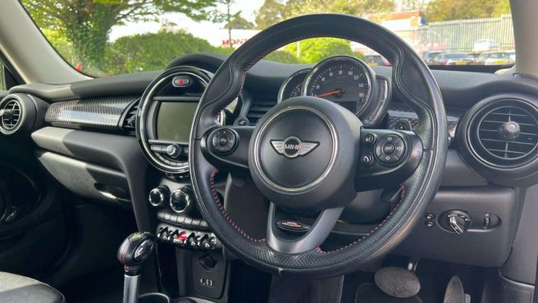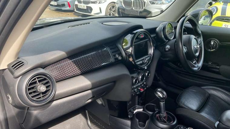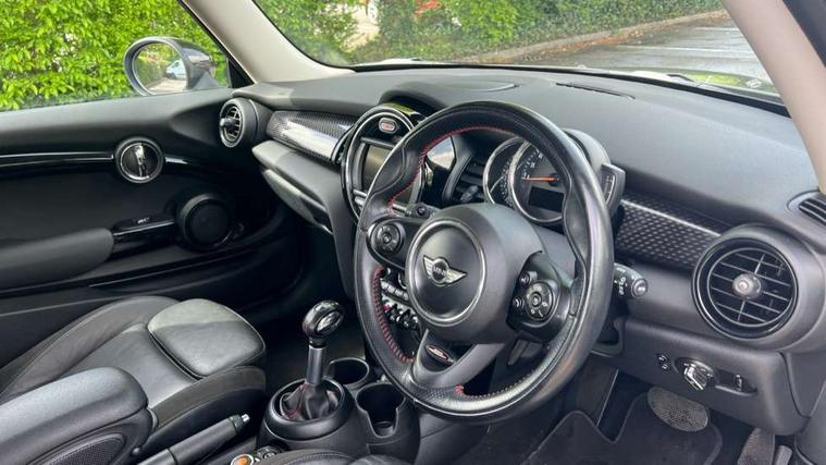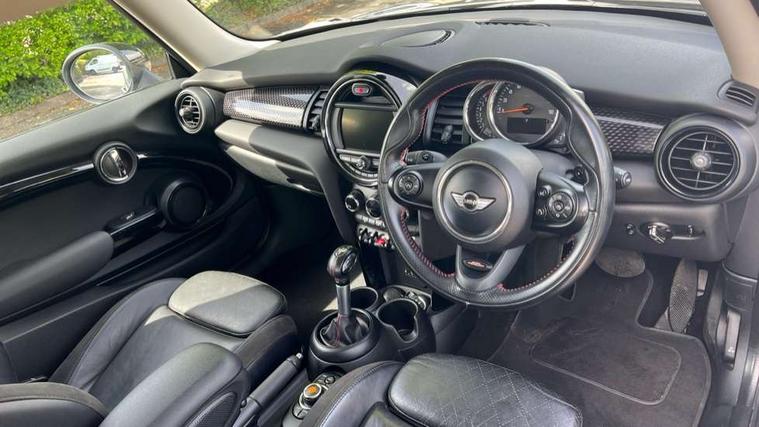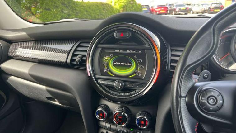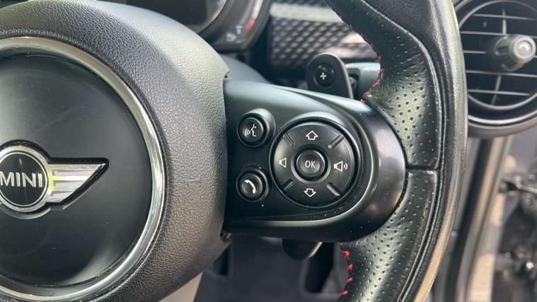 Acoustic seat-belt warning, Brake fluid level warning light, Brake pad wear indicator warning light, DTC - Dynamic traction control, Exterior temperature gauge, Intelligent emergency call, MINI TeleServices, Oil level indicator, On board computer, Push button starter, Service interval indicator, Servotronic PAS, Electronic differential lock, Performance Control, Auxiliary input socket, DAB digital radio module, 2 speed wipers+intermittent wipe, Anti dazzle mirror, Anti trapping/one touch open close front windows, Body colour scoop integrated into engine- compartment lid, Body coloured bumpers, Chrome bezels around rear lights and headlights, Chrome door handles, Chrome plated fuel cap, Chrome plated trim on bottom edge of window, Chrome strip on lower grille, Electric front windows, Electrically adjustable door mirrors, Flared wheel arches, Follow me home headlights, Green tinted heat insulating glass, Heated door mirrors/heated windscreen washers, Heated rear window with auto timer, High gloss black tailgate, Honeycomb radiator grille, Rear wiper, Twin chromed exhaust pipes, White indicator lights, 2 rear head restraints, 4 boot load lashing points, 4 way manually adjustable passenger seat with height, reach, tilt, backrest and headrest, 6-way manually adjustable driver's seat, Active carbon filter, Air recirculation system, Auxiliary socket in centre console storage compartment, Centre console storage, Driver's seat height adjuster, Driver/passenger sunvisors, Easy entry seats, Front and rear cupholders, Front head restraints, Front interior light, Front passenger grab handle, Front seat backrest storage nets, Front sports seats, Gear/selector and handbrake in artificial leather, Internal chrome door handles, Isofix child seat preparation, Luggage compartment lighting, Multifunction steering wheel, Reach + rake adjustable steering column, Rear grab handles, Rear storage trays, Split folding rear seats, Storage compartments in doors, Toolkit in luggage compartment, 3 point seatbelts, ABS/EBD, ASC+T, Cornering brake control (CBC), Crash Sensor - activates hazard/interior lighting + unlocks doors, Driver and passenger airbags, Driver/front passenger side airbags, DSC - Dynamic Stability Control, Fuel cut off safety device, Head airbags, Hill start assist, Passenger airbag deactivation system, Seatbelt pretensioners, Tyre pressure warning, Ventilated front disc brakes, Drive away door locking, Locking wheel bolts, Remote central locking/doors+fuel cap+tailgate, Second remote key, Thatcham category 1 alarm + immobiliser,
