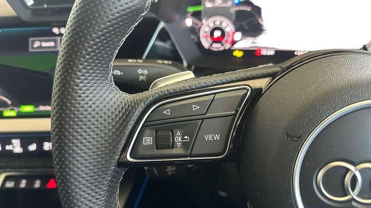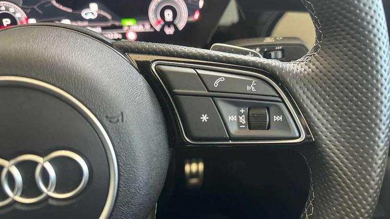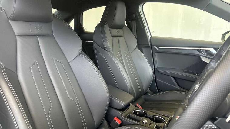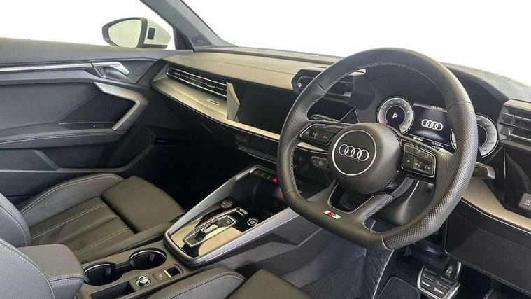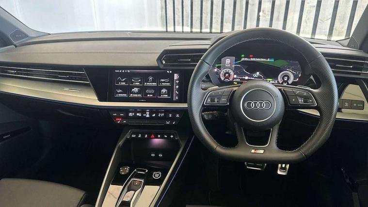 Adjustable speed limiter, Audi drive select, Audi smartphone interface with app store includes wireless Apple carplay, Android auto and Amazon alexa integration, Audi virtual cockpit plus - 12.3" full HD resolution dynamic digital instrument cluster, Automatic start/stop system with recuperation, Bluetooth interface, Camera based traffic sign recognition, Collision avoidance assistant, Cruise control, Distraction and Fatigue warning, e-Call (emergency call), Electromechanical power speed sensitive steering, Lane departure warning system, MMI Navigation Plus with high resolution 10.1" colour touch screen display, Park Assist with parking system Plus, Service indicator, Trip computer, Voice control system with natural language interaction, Sports suspension, Audi Phonebox light with wireless charging, Audi sound system - 10 loudspeakers including centre loudspeaker and subwoofer, DAB Digital radio, USB ports with charging function in the rear, Acoustic glass windscreen, Aluminium window trim, Auto dimming frameless rear view mirror, Body colour exterior mirrors, Chrome exhaust tailpipes, Electrically adjustable/heated/folding/auto dimming door mirrors with integrated LED indications + kerb view function for passenger side, Exterior model badging, Front and rear side air inlets in grained matt black with dark liquid chrome frame, Front electric windows, Front radiator grill in high gloss dark chrome, Heat insulating glass windscreen, Illuminated door sills with aluminium inserts at the front with S logo, LED 3rd brake light, LED daytime running lights, LED headlights with LED rear lights and dynamic rear indicators, Light and rain sensors, Privacy glass - dark tinted rear window, rear door and side windows, Rear boot, Rear diffuser and grill in grained matt black with inlay in dark liquid chrome, Rear electric windows, Rear side wing doors, S line bumpers, Side S line emblems on front wings, Side sill trim in dark liquid chrome, 12V socket and storage compartment in front centre console, 3 seat bench in 2nd row, 3 spoke flat bottomed leather multifunction sport steering wheel with gear shift paddles, 3-zone deluxe automatic air conditioning, 4 way electrically adjustable lumbar support for driver and front passenger, 40/20/40 split folding rear seat bench, Black cloth headlining, Front and rear centre armrest in artificial leather, Front and rear centre armrest in artificial leather with contrasting stitching on armrests and instrument panel, Front and rear headrests, Front/rear floor mats, Heated front seats, Height and reach adjustable steering wheel, Manual boot compartment lid, Manually adjustable front seats, Rear cup holders, S badging on the steering wheel, Seat side bolsters, Single front passenger seat, Stainless steel pedals and front footrest in black, Twin leather upholstery with front sports seats S embossed logo, Aluminium interior elements pack - A3, Multi-coloured LED interior lighting package - A3, 3x3 point rear seat belts, Driver and front passenger airbag with passenger airbag deactivation, Electronic Stabilisation Control (ESC) including ABS, ASR and EDL, First aid kit with warning triangle and 2 safety vests, Front side airbags with head airbags and interaction airbag, Hill hold assist, Pre-sense front with pedestrian and cyclist detection, Seatbelt monitoring, Tyre pressure loss indicator, Anti theft alarm, Anti-theft wheel bolts, Electronically operated child locks, Immobiliser, Remote central locking with safelock, Dash & door Inlay in dark aluminium Spectrum,