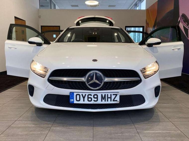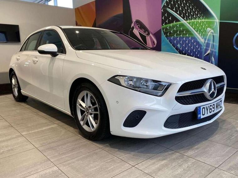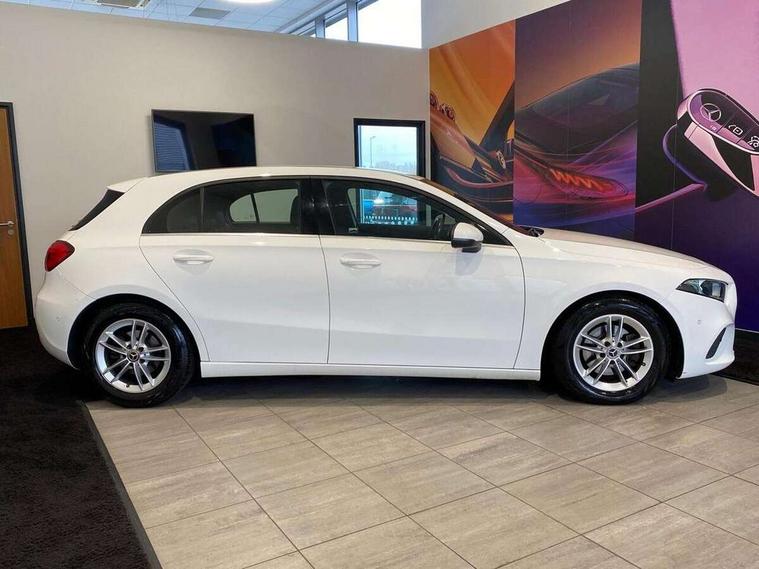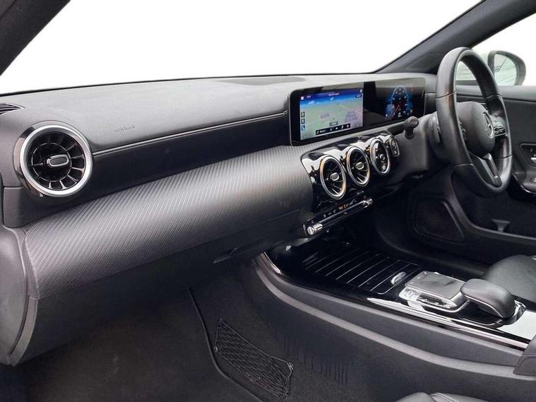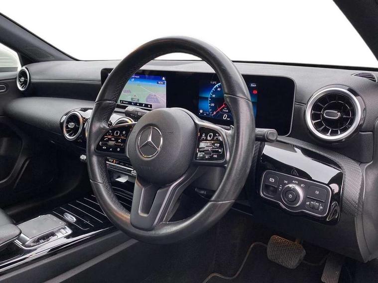 180 degree rear view camera with parking guidelines, 7" colour screen in instrument panel, Active lane keep assist, Active park assist with parktronic system including front and rear parking sensors, Attention assist, Brake pad wear indicator warning light, Cruise control + speed limiter, Direct steering, DYNAMIC SELECT with a choice of driving modes (ECO, Comfort, Sport and Individual), ECO start/stop function, Fluid level warning indicator for fuel, oil, coolant and washer fluid, Hard-disk navigation, Hey Mercedes Voice activation, Lamp failure indicator, Mercedes me connect including emergency call system, accident recovery, breakdown and maintenance management, Outside temperature gauge, Radio aerial integrated into roof spoiler, Service indicator (ASSYST), Speed sensitive power steering, Trip computer, Lowered comfort suspension, DAB Digital radio, Dual bluetooth interface, 2 USB ports (type C), MBUX multimedia system with DAB digital radio and touchpad including satellite navigation, 4 Electric Front and Rear windows, Active aerodynamics with AIRPANEL in the front apron, Adaptive brake lights, Black weather strip, Blue tinted glass, Body colour bumpers, Body colour door handles, Body colour side skirt, Body coloured door mirrors, Chrome beltline trim, Diamond radiator grille with black pins with one louvre in silver + chrome insert, Electric adjustable and heated door mirrors with integrated LED side indicators, Halogen headlamps with integrated daytime running lights, Headlamp assist automatic headlamp activation, Heated glass rear windscreen + timer control, LED third brake light, Part LED tail light, Rain sensor windscreen wipers, Rear fog lights, Rear wiper, 12V socket, 3 Spoke leather multi function steering wheel, 40:20:40 split folding rear seats, Air conditioning thermatic, Air vents surround and cruciform nozzle in silver chrome, Artico man-made leather/Bertrix fabric upholstery, Auto Mercedes-Benz child seat recognition sensor, Black roof lining, Controller on centre console with chrome surround, Cup holder and stowage compartment lighting, Floor mats, Freight packaging without tie-down hooks, Front centre armrest with storage compartment, Front comfort seats with adjustable head restraints, Front door sills with Mercedes Benz lettering, Front doors with ambient and signal light, Front footwell lights, Front reading lamps in left and right console downlighter, Front seat backs luggage nets, Front seat cushion length adjustment, Front signal exit lamp, Front vanity lights, Gearshift paddles on steering wheel, Handle recess/closing light, Heated front seats, Height/reach adjustable steering column, Illuminated glove compartment stowage, ISOFIX Child seat top tethers and anchor fixings, Luggage compartment cover, Manual height adjustable front seats, Oddments tray lighting, Rear head restraints, Rear Reading Lamps, Seat occupancy sensor for front passenger seat, Spectacles compartment for driver, Storage compartment under load area floor, Stowage compartment in centre console with retractable cover, Sunvisors with illuminated vanity mirrors, Touchpad, Touchpad illumination, Twin front cupholders, Light and sight pack - A Class, Mirror package - A Class, Seat comfort pack - A Class, 3 rear 3 point seatbelts, ABS with Brake Assist, Active bonnet, Active brake assist includes forward collision warning system with autonomous braking, Adaptive brake assist with hold function and hill start assist, Childproof locks manually operated for rear doors and electrically operated for rear power windows, Crash responsive emergency lighting, Driver and passenger head and side airbags, Drivers knee airbag, Dual stage driver/passenger airbags, Electronic parking brake, ESP curve dynamic assist, ESP with ASR, Front and rear seatbelt reminder, Tyre pressure monitoring system, Warning triangle and first aid kit, Window airbags, Alarm system/interior protection/immobiliser, Keyless Go, Remote central locking and crash sensor with emergency opening function, Black seatbelts, 16" 5 twin spoke light alloy wheels painted in vanadium silver, Summer tyres, Tirefit sealant kit,