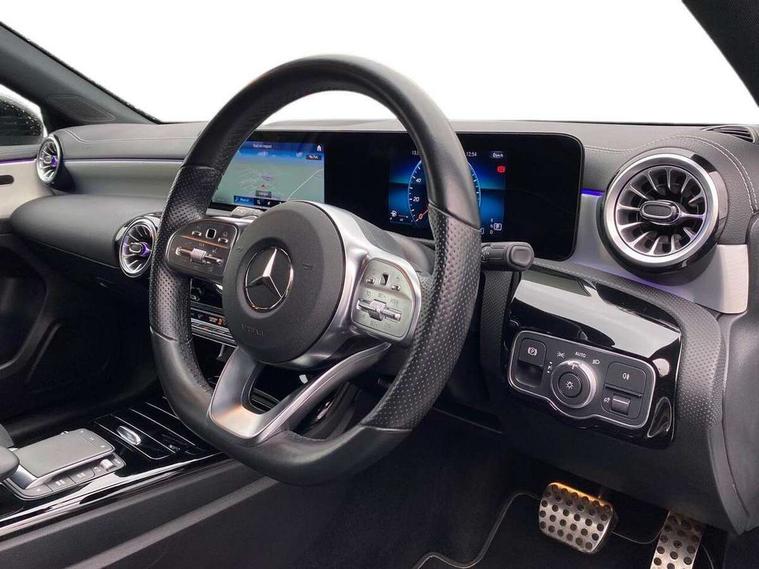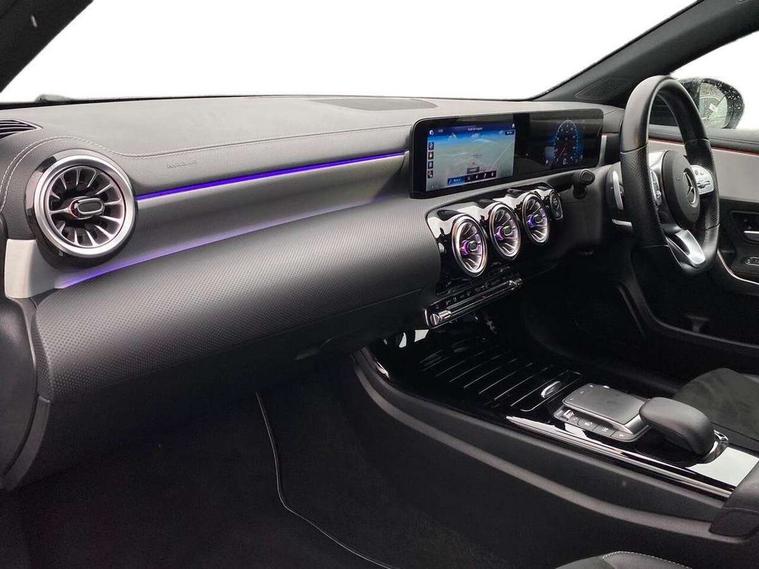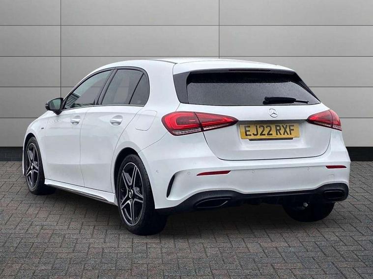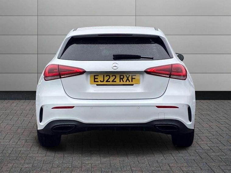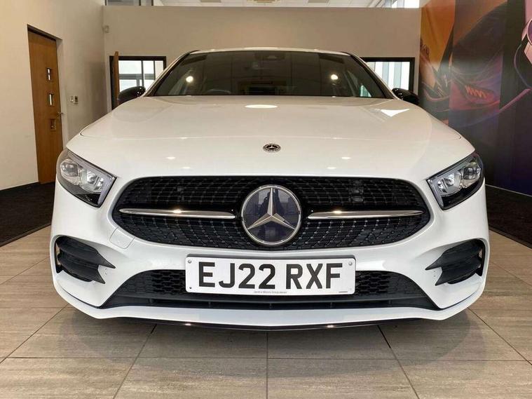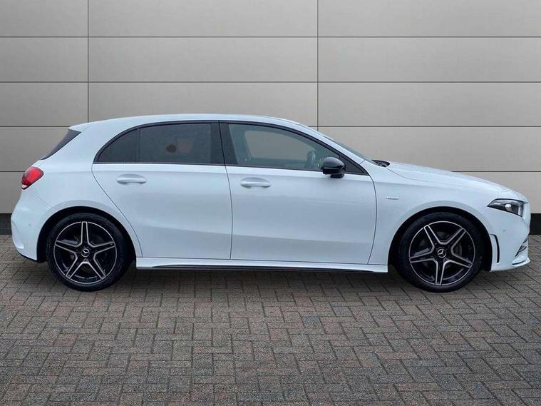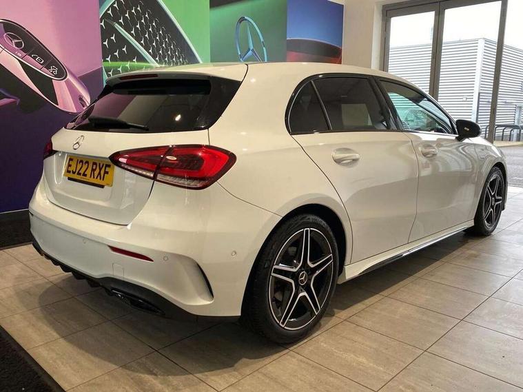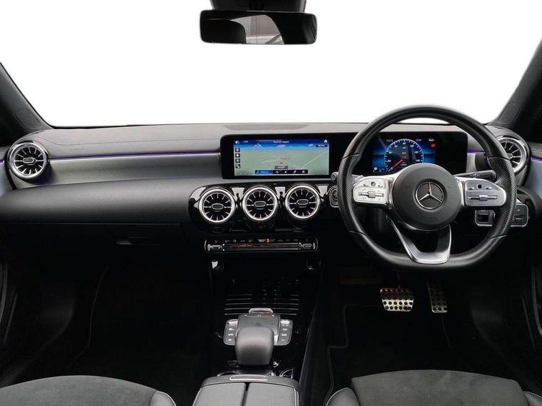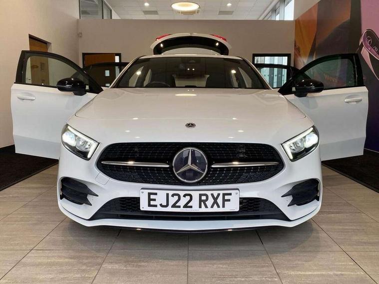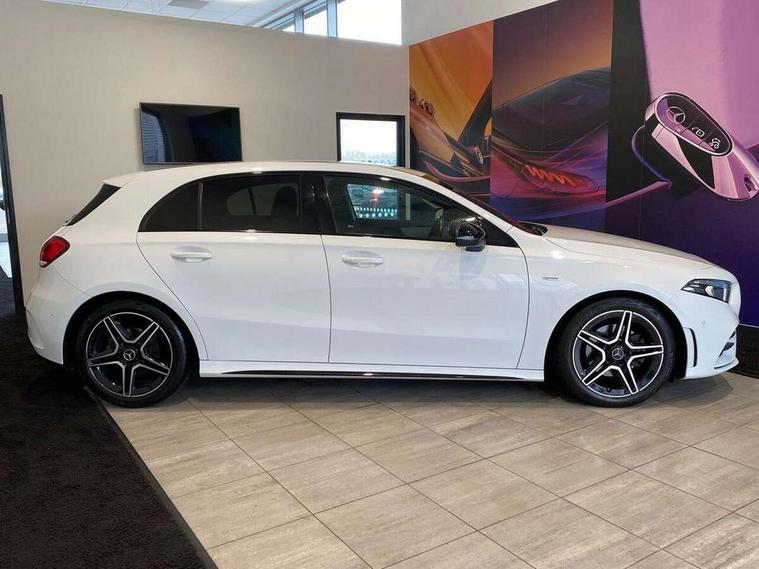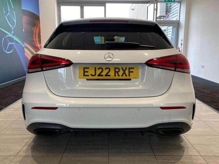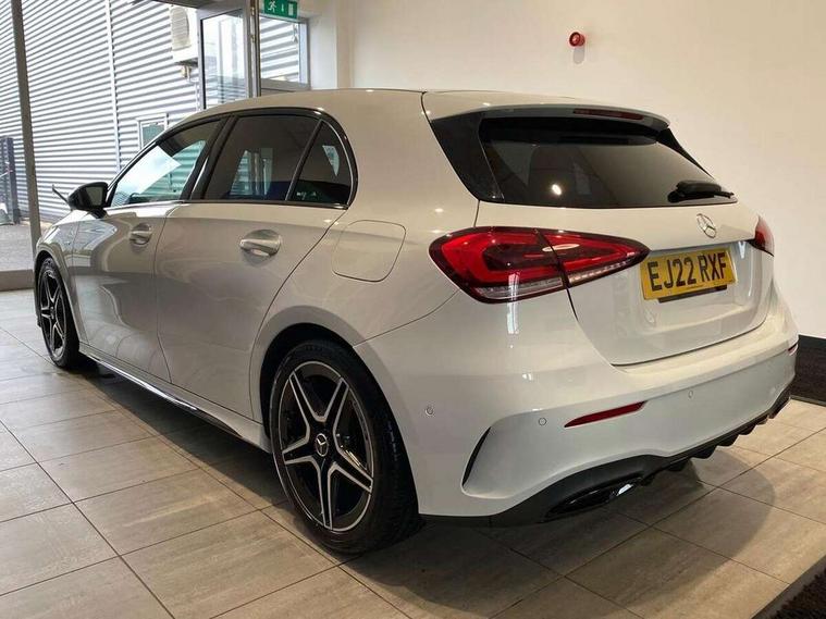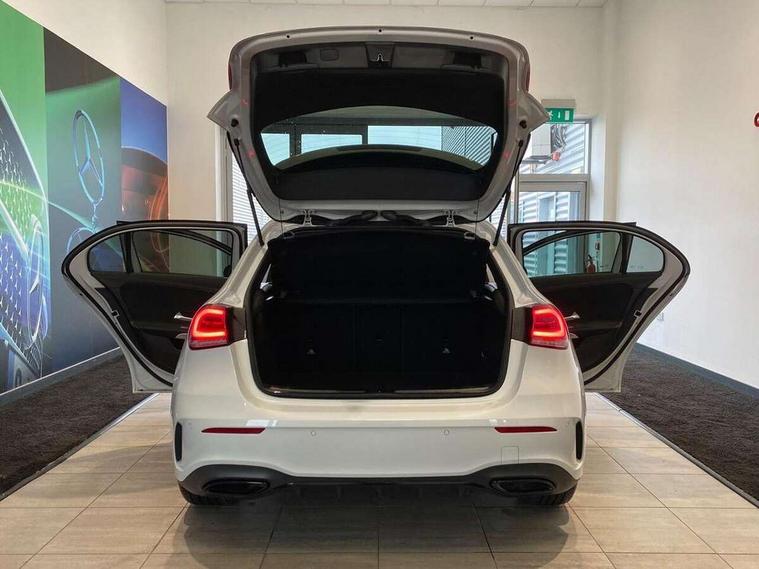 10.25" media display, 180 degree rear view camera with parking guidelines, 7" colour screen in instrument panel, Active parking assist with visual and audible warning of detected obstacles, Attention assist, Brake pad wear indicator warning light, Car wash mode, Cruise control + speed limiter, Direct steering, Dual bluetooth interfaces, DYNAMIC SELECT with a choice of driving modes (ECO, Comfort, Sport and Individual), ECO start/stop function, Fluid level warning indicator for fuel, oil, coolant and washer fluid, Hard-disk navigation, Hey Mercedes Voice activation, Lamp failure indicator, Lane keeping system, Mercedes me connect including emergency call system, accident recovery, breakdown management and maintenance, Mercedes me remote services, Outside temperature gauge, Owners manual in English, Pre-installation for car sharing, Preinstallation for Mercedes Benz link, Service indicator (ASSYST), Smartphone integration with Apple CarPlay and Android auto, Speed sensitive power steering, Trip computer, Ultrasonic sensors positioned in the front and rear bumpers, Lowered comfort suspension, Rear axle torsion beam, 2 USB ports (type C) in rear stowage compartment and one in front of center console, 6 speakers, DAB Digital radio, MBUX multimedia system with DAB digital radio and touchpad including satellite navigation, Mercedes-Benz sound system - 100W, 4 Electric Front and Rear windows, Adaptive brake lights, AMG bodystyling - Front apron with splitter in chrome, rear apron with chrome trim and chrome visible trim elements in tailpipe, Automatic headlights, Black weather strip, Body colour bumpers, Body colour door handles, Body colour side skirt, Body coloured door mirrors, Electric adjustable and heated door mirrors with integrated LED side indicators, Exclusive diamond radiator grille, Exhaust system - Twin visible tailpipes in polished stainless steel, Headlamp assist automatic headlamp activation, Heated glass rear windscreen + timer control, High gloss black beltline, LED High level third brake light, LED high performance headlamps with integrated LED daytime running lights, LED tail lamp, Privacy glass, Radio aerial, Rain sensing windscreen wipers with two sensitivity settings, Rear fog lights, Rear side wing doors, Rear wiper, Window line trim strip in high gloss black, 3 seat bench in 2nd row, 3 Spoke flat bottom leather multi function steering wheel with perforated leather in grip area, 40:20:40 split folding rear seats, Artico man-made leather/Microfibre Dinamica upholstery with contrast stitching in light grey, Auto Mercedes-Benz child seat recognition sensor, Black air vents with surround in silver chrome, Black roof lining, Brushed stainless steel sports pedals with rubber studs, Controller on centre console with chrome surround, Floor mats with black top stitching and embroidered edition logo and piping in light grey, Front centre armrest with storage compartment, Front door sills with Mercedes Benz lettering, Front seat backs luggage nets, Front seat cushion length adjustment, Galvanished gear shift paddles on steering wheel, Heated front seats, Height/reach adjustable steering column, Interior lighting - 64 colour Ambient lighting, Interior mirror with reading lamps in black and frameless, ISOFIX and top tether child seat fixing points in two outer rear seats, Manual height adjustable front seats, Rear head restraints, Seat occupancy sensor for front passenger seat, Single front passenger seat, Sports seats with integrated headrests, Stowage compartment in centre console with retractable cover, Sunvisors with illuminated vanity mirrors, Touchpad on center console, Twin front cupholders, Two zone thermotronic luxury automatic climate control, Light and sight pack - A Class, Mirror package - A Class, Night pack - A Class Saloon/Hatchback, Seat comfort pack - A Class, 3 rear 3 point seatbelts, ABS with Brake Assist, Active bonnet, Active brake assist includes forward collision warning system with autonomous braking, Adaptive brake assist with hold function and hill start assist, Black seatbelts, Childproof locks manually operated for rear doors and electrically operated for rear power windows, Crash responsive emergency lighting, Driver and passenger head and side airbags, Drivers knee airbag, Dual stage driver/passenger airbags, Electronic parking brake, ESP curve dynamic assist, ESP with ASR, Front and rear seatbelt reminder, Front brake callipers with Mercedes Benz lettering, Tyre pressure monitoring system, Warning triangle and first aid kit, Window airbags, Alarm system/interior protection/immobiliser, Keyless Go, Remote central locking and crash sensor with emergency opening function, Urban guard vehicle protection system with immobiliser and interior protection, Matrix look light longitudinal grain aluminium trim element, 18" AMG 5 twin spoke light alloy wheels aerodynamically optimised painted in black with highsheen finish, Summer tyres, Tirefit sealant kit,