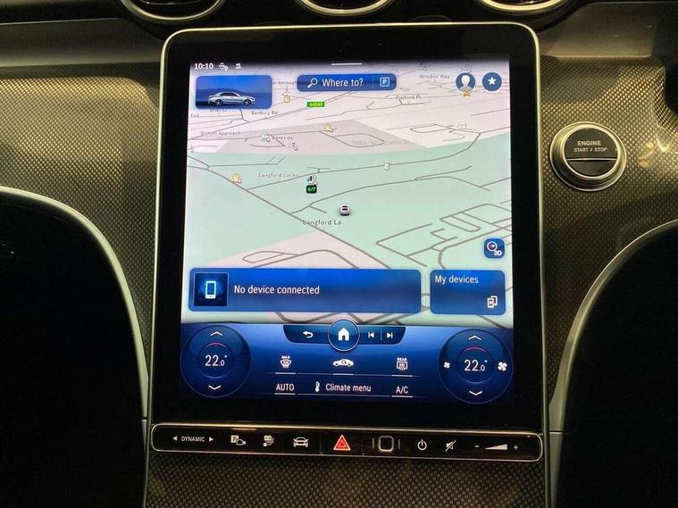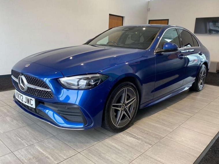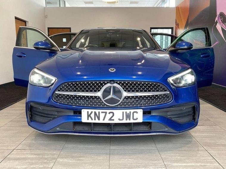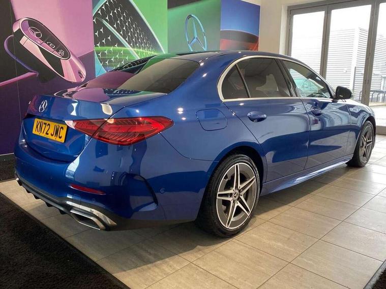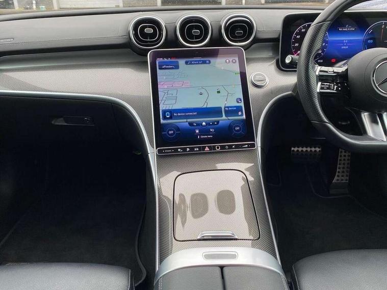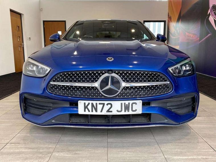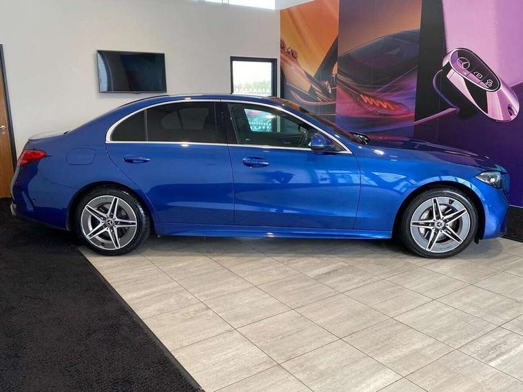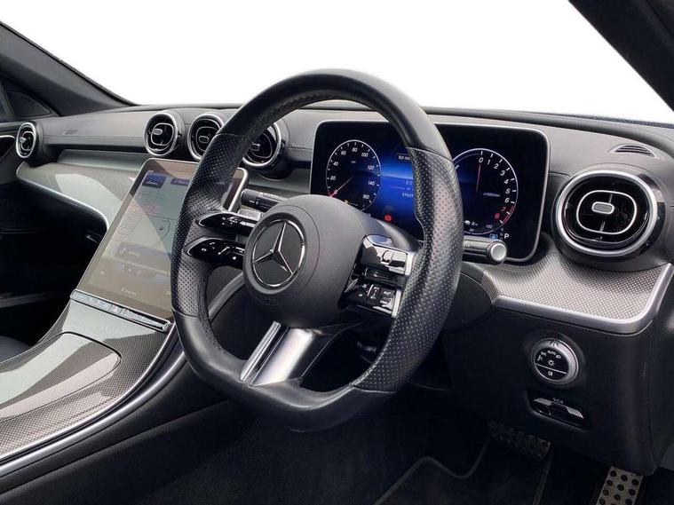 11.9" high resolution multimedia colour display, 12.3" digital instrument cluster display, Active blind spot assist, Active brake assist plus, Active lane keeping assist, AMG DYNAMIC SELECT with a choice of driving modes (Slippery, Comfort, Sport, Sport+, Individual), Attention assist, Cruise control with speedtronic variable speed limiter, E-call, Extended MBUX functions, Finger print sensor, Fluorescent jacket for driver, MBUX navigation premium, MBUX voice control activated by keywords "Hey Mercedes", Mercedes connect me, Mercedes me remote services, Outside temperature gauge, Pre-installation for digital key transfer, Remote boot release, Service indicator (ASSYST), Smartphone integration, Sports direct steer speed sensitive steering, Status display for rear seat belts in instrument cluster, 11 kW AC onboard charger, 5m charging cable for wall box/public charging stations(mode 3), 66l fuel tank with increased capacity, 9G TRONIC 9 speed automatic transmission, Agility control sports suspension and lowered by 15 mm, Petrol Particulate Filter, Sporty engine sound system, DAB Digital radio, MBUX multimedia system, Adaptive brake lights, Adaptive high beam assist, AMG body styling front apron, rear apron and side skirts, AMG front bumper with sporty air intakes and chrome elements, AMG rear bumper with high gloss chrome elements, AMG side skirts in vehicle colour, B-pillar trim in glossy black, Body coloured bumpers, Body coloured door mirrors, Chrome beltline trim, Daytime running lights, Electric windows with one touch opening/closing and obstruction sensors, Electrically adjustable and heated door mirrors, Green tinted glass, LED high performance headlamps, LED Indicators, LED tail lights, LED third brake light, Powerdomes on bonnet, Privacy glass, Radiator diamond grille with integrated Mercedes Benz star and louvre silver with chrome pins, Radio aerial integrated into rear window, Rain sensor with automatic windscreen wiper activation, Rear boot, Rear side wing doors, Side windows surround in polished aluminium, Two visible exhaust pipes integrated into rear bumper, 3 spoke flattened bottom AMG multifunction steering wheel in black nappa leather with chrome inserts and perforated leather in grip area, 40:20:40 split folding rear bench seat, AMG Leather upholstery, AMG sports seats, Audio and onboard settings control on multifunction steering wheel, Auto Mercedes-Benz child seat recognition sensor, Black air vents with silver chrome elements, Black floor mats with AMG lettering, Black roof liner, Door trim elements high gloss black with silver chrome surroundings and switches, Double cupholder in centre console, Folding rear seat backrest, Front and rear head restraints, Front centre armrest with storage compartment, Front door sills with Mercedes Benz lettering, Gearshift paddles on steering wheel, Heated front seats, Illuminated glove compartment stowage, Manually height and reach adjustable steering column, Overhead control unit in high gloss black, Rear top tether child seat ISOFIX attachment, Single front passenger seat, Sports pedals with stainless steel surfaces and rubber studs, Sunvisors with illuminated vanity mirrors, THERMATIC 2 zone automatic climate control, Interior lighting package - C Class, Mirror pack - C Class, Parking package with reversing camera - C Class, Seat comfort pack - C Class, Stowage space pack - C Class, USB package - C Class, 3 rear 3 point seatbelts, Active bonnet pedestrian safety measure which detects an impact and raises bonnet, Adaptive brake system with HOLD function and brake drying in the wet, Anti-lock braking system (ABS), Black seat belts, Brake calipers with Mercedes-Benz lettering + perforated front brake discs, Child proof door locks, Drivers knee airbag, Drivers pelvis airbag, Dual stage driver/passenger airbags, Electric parking brake, Electronic Stability Programme (ESP), Front centre airbag between driver and front passenger seats, Front side airbags, Larger brake discs on front axle, Rear passenger airbag, Rear seatbelt warning indicator, Sports braking system with perforated front disc brakes, Tyre pressure monitoring system, Warning triangle and first aid kit, Window airbags, Central locking with interior switch, automatic locking and crash sensor with emergency opening function, Chrome surround in electric key, URBAN GUARD vehicle protection (Thatcham Category 1) consisting of break-in, anti-theft alarm system (ATA), interior monitoring and tow-away protection, Artico man-made leather dashboard with contrast stitching, Centre console trim in metal weave, 18" AMG 5 spoke design aerodynamically optimised alloy wheels painted in tantalite grey with high sheen finish, Summer tyres, TIREFIT with tyre inflation compressor,