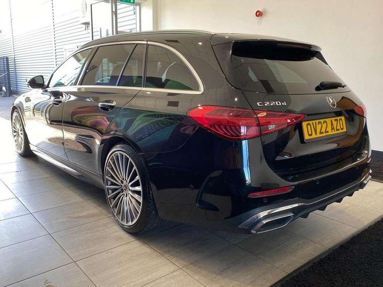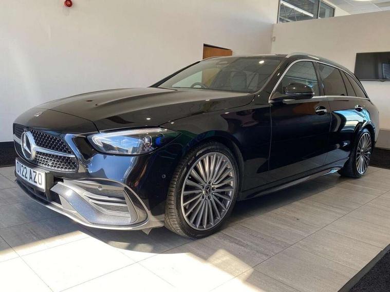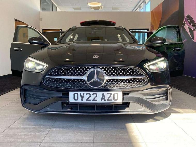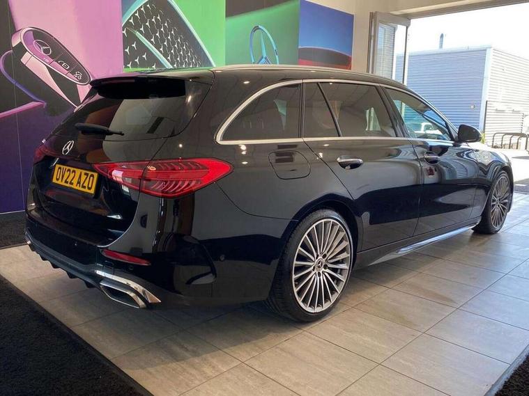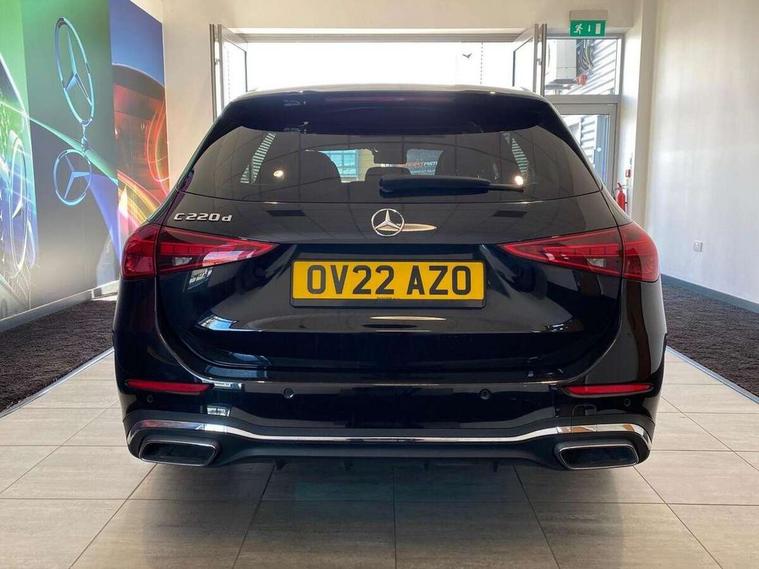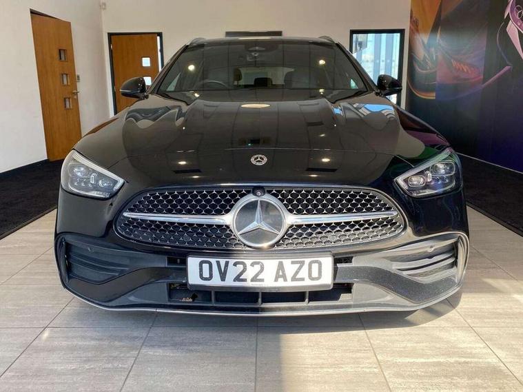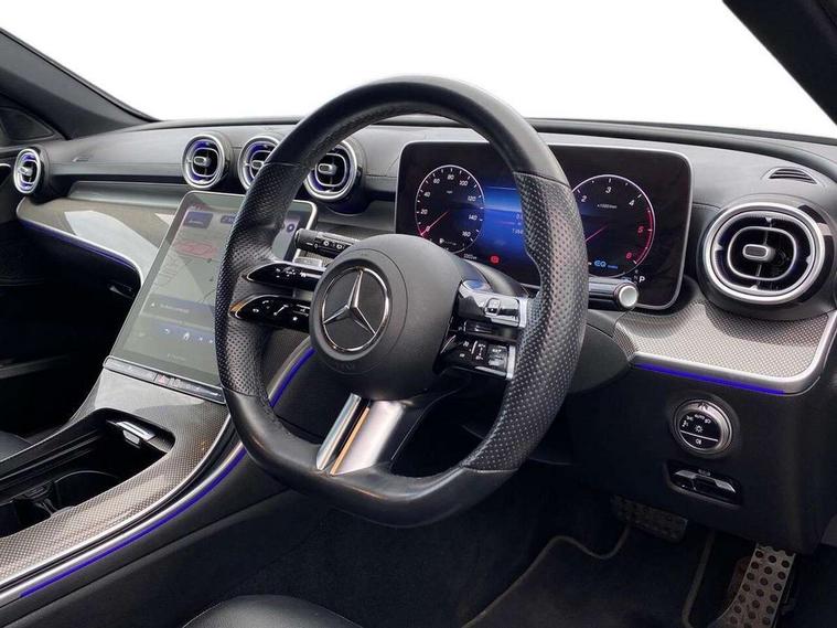 11.9" high resolution multimedia colour display, 12.3" digital instrument cluster display, Active blind spot assist, Active brake assist plus, Active lane keeping assist, Attention assist, Cruise control with speedtronic variable speed limiter, DYNAMIC SELECT with a choice of driving modes (ECO, Comfort, Sport, Sport+ and Individual), E-call, Easy pack automatic powered tailgate, Extended MBUX functions, Finger print sensor, Fluorescent jacket for driver, MBUX augmented reality for navigation, MBUX navigation premium, MBUX voice control activated by keywords "Hey Mercedes", Mercedes connect me, Mercedes me remote services, Outside temperature gauge, Pre-installation for digital key transfer, Remote boot release, Service indicator (ASSYST), Smartphone integration, Sports direct steer speed sensitive steering, Status display for rear seat belts in instrument cluster, Wireless charging system for mobile devices, 66l fuel tank with increased capacity, 9G TRONIC 9 speed automatic transmission, Diesel particulate filter, Sports suspension with selective damping system and lowered by 15 mm, DAB Digital radio, MBUX multimedia system, Steering wheel mounted audio controls, Adaptive brake lights, Adaptive high beam assist plus, AMG body styling front apron, rear apron and side skirts, AMG front bumper with sporty air intakes and chrome elements, AMG rear bumper with high gloss chrome elements, AMG side skirts in vehicle colour, B-pillar trim in glossy black, Body coloured bumpers, Body coloured door mirrors, Chrome beltline trim, Chrome roof rails, Daytime running lights, Digital light LED headlamps, Electric windows with one touch opening/closing and obstruction sensors, Electrically adjustable and heated door mirrors, Green tinted glass, LED Indicators, LED tail lights, LED third brake light, Powerdomes on bonnet, Privacy glass, Radiator diamond grille with integrated Mercedes Benz star and louvre silver with chrome pins, Radio aerial integrated into rear window, Rain sensor with automatic windscreen wiper activation, Rear side wing doors, Rear wiper, Two visible exhaust pipes integrated into rear bumper, 3 spoke flattened bottom AMG multifunction steering wheel in black nappa leather with chrome inserts and perforated leather in grip area, AMG sports seats, Auto Mercedes-Benz child seat recognition sensor, Black air vents with silver chrome elements, Black floor mats with AMG lettering, Black roof liner, Door trim elements high gloss black with silver chrome surroundings and switches, Double cupholder in centre console, Electrically height/reach adjustable steering column, Folding rear seat backrest, Front and rear head restraints, Front centre armrest with storage compartment, Gearshift paddles on steering wheel, Heated front seats, Illuminated door sills with Mercedes Benz lettering, Illuminated glove compartment stowage, Interior lighting - 64 colour Ambient lighting, Leather upholstery, Load compartment cover, Overhead control unit in high gloss black, Rear top tether child seat ISOFIX attachment, Single front passenger seat, Sports pedals with stainless steel surfaces and rubber studs, Sunvisors with illuminated vanity mirrors, THERMATIC 2 zone automatic climate control, Interior lighting package - C Class, Memory package - C Class, Mirror pack - C Class, Parking package with 360 degree camera - C Class, Seat comfort pack - C Class, Stowage space pack - C Class, USB package - C Class, 3 rear 3 point seatbelts, Active bonnet pedestrian safety measure which detects an impact and raises bonnet, Adaptive brake system with HOLD function and brake drying in the wet, Anti-lock braking system (ABS), Black seat belts, Brake calipers with Mercedes-Benz lettering + perforated front brake discs, Child proof door locks, Drivers knee airbag, Drivers pelvis airbag, Dual stage driver/passenger airbags, Electric parking brake, Electronic Stability Programme (ESP), Front centre airbag between driver and front passenger seats, Front side airbags, Larger brake discs on front axle, Rear passenger airbag, Rear seatbelt warning indicator, Sports braking system with perforated front disc brakes, Tyre pressure monitoring system, Warning triangle and first aid kit, Window airbags, Central locking with interior switch, automatic locking and crash sensor with emergency opening function, Chrome surround in electric key, Keyless Go comfort access, URBAN GUARD vehicle protection (Thatcham Category 1) consisting of break-in, anti-theft alarm system (ATA), interior monitoring and tow-away protection, Artico man-made leather dashboard with contrast stitching, Centre console trim in metal weave, 19" AMG multi spoke design alloy wheels painted in black with high sheen finish, Summer tyres, TIREFIT with tyre inflation compressor,