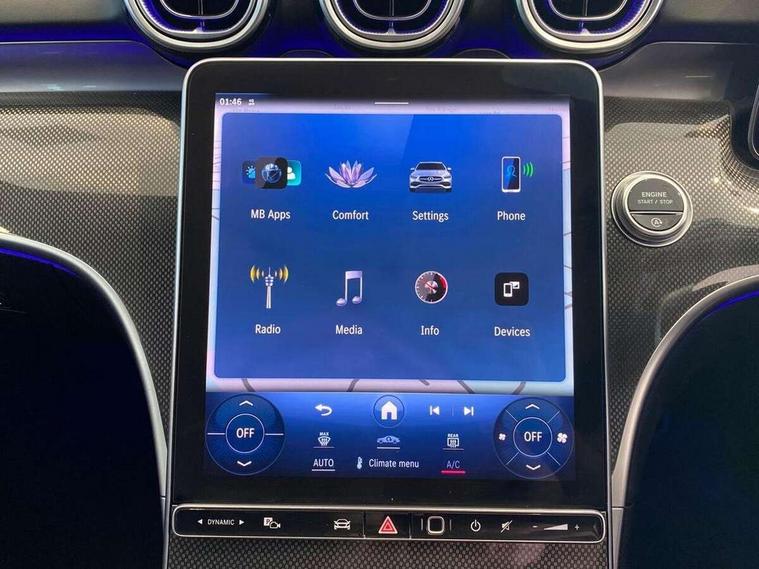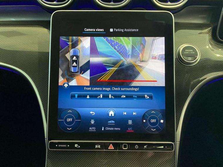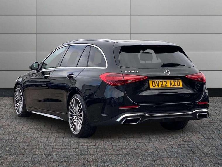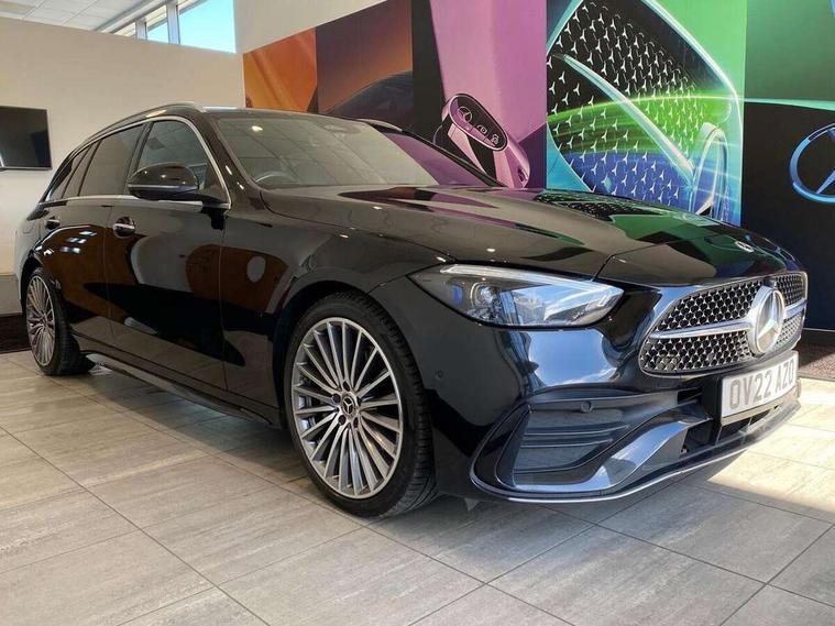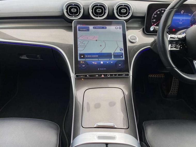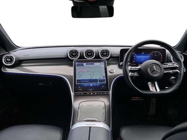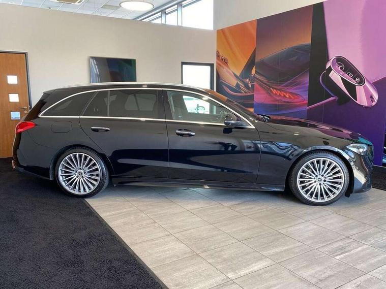 11.9" high resolution multimedia colour display, 12.3" digital instrument cluster display, Active blind spot assist, Active brake assist plus, Active lane keeping assist, Attention assist, Cruise control with speedtronic variable speed limiter, DYNAMIC SELECT with a choice of driving modes (ECO, Comfort, Sport, Sport+ and Individual), E-call, Easy pack automatic powered tailgate, Extended MBUX functions, Finger print sensor, Fluorescent jacket for driver, MBUX augmented reality for navigation, MBUX navigation premium, MBUX voice control activated by keywords "Hey Mercedes", Mercedes connect me, Mercedes me remote services, Outside temperature gauge, Pre-installation for digital key transfer, Remote boot release, Service indicator (ASSYST), Smartphone integration, Sports direct steer speed sensitive steering, Status display for rear seat belts in instrument cluster, Wireless charging system for mobile devices, 66l fuel tank with increased capacity, 9G TRONIC 9 speed automatic transmission, Diesel particulate filter, Sports suspension with selective damping system and lowered by 15 mm, DAB Digital radio, MBUX multimedia system, Steering wheel mounted audio controls, Adaptive brake lights, Adaptive high beam assist plus, AMG body styling front apron, rear apron and side skirts, AMG front bumper with sporty air intakes and chrome elements, AMG rear bumper with high gloss chrome elements, AMG side skirts in vehicle colour, B-pillar trim in glossy black, Body coloured bumpers, Body coloured door mirrors, Chrome beltline trim, Chrome roof rails, Daytime running lights, Digital light LED headlamps, Electric windows with one touch opening/closing and obstruction sensors, Electrically adjustable and heated door mirrors, Green tinted glass, LED Indicators, LED tail lights, LED third brake light, Powerdomes on bonnet, Privacy glass, Radiator diamond grille with integrated Mercedes Benz star and louvre silver with chrome pins, Radio aerial integrated into rear window, Rain sensor with automatic windscreen wiper activation, Rear side wing doors, Rear wiper, Two visible exhaust pipes integrated into rear bumper, 3 spoke flattened bottom AMG multifunction steering wheel in black nappa leather with chrome inserts and perforated leather in grip area, AMG sports seats, Auto Mercedes-Benz child seat recognition sensor, Black air vents with silver chrome elements, Black floor mats with AMG lettering, Black roof liner, Door trim elements high gloss black with silver chrome surroundings and switches, Double cupholder in centre console, Electrically height/reach adjustable steering column, Folding rear seat backrest, Front and rear head restraints, Front centre armrest with storage compartment, Gearshift paddles on steering wheel, Heated front seats, Illuminated door sills with Mercedes Benz lettering, Illuminated glove compartment stowage, Interior lighting - 64 colour Ambient lighting, Leather upholstery, Load compartment cover, Overhead control unit in high gloss black, Rear top tether child seat ISOFIX attachment, Single front passenger seat, Sports pedals with stainless steel surfaces and rubber studs, Sunvisors with illuminated vanity mirrors, THERMATIC 2 zone automatic climate control, Interior lighting package - C Class, Memory package - C Class, Mirror pack - C Class, Parking package with 360 degree camera - C Class, Seat comfort pack - C Class, Stowage space pack - C Class, USB package - C Class, 3 rear 3 point seatbelts, Active bonnet pedestrian safety measure which detects an impact and raises bonnet, Adaptive brake system with HOLD function and brake drying in the wet, Anti-lock braking system (ABS), Black seat belts, Brake calipers with Mercedes-Benz lettering + perforated front brake discs, Child proof door locks, Drivers knee airbag, Drivers pelvis airbag, Dual stage driver/passenger airbags, Electric parking brake, Electronic Stability Programme (ESP), Front centre airbag between driver and front passenger seats, Front side airbags, Larger brake discs on front axle, Rear passenger airbag, Rear seatbelt warning indicator, Sports braking system with perforated front disc brakes, Tyre pressure monitoring system, Warning triangle and first aid kit, Window airbags, Central locking with interior switch, automatic locking and crash sensor with emergency opening function, Chrome surround in electric key, Keyless Go comfort access, URBAN GUARD vehicle protection (Thatcham Category 1) consisting of break-in, anti-theft alarm system (ATA), interior monitoring and tow-away protection, Artico man-made leather dashboard with contrast stitching, Centre console trim in metal weave, 19" AMG multi spoke design alloy wheels painted in black with high sheen finish, Summer tyres, TIREFIT with tyre inflation compressor,
