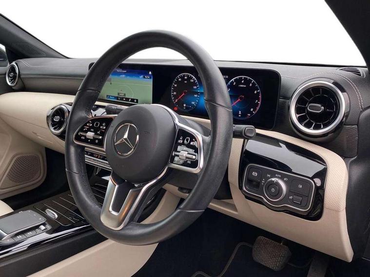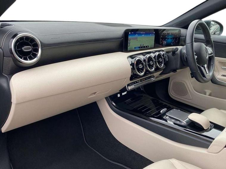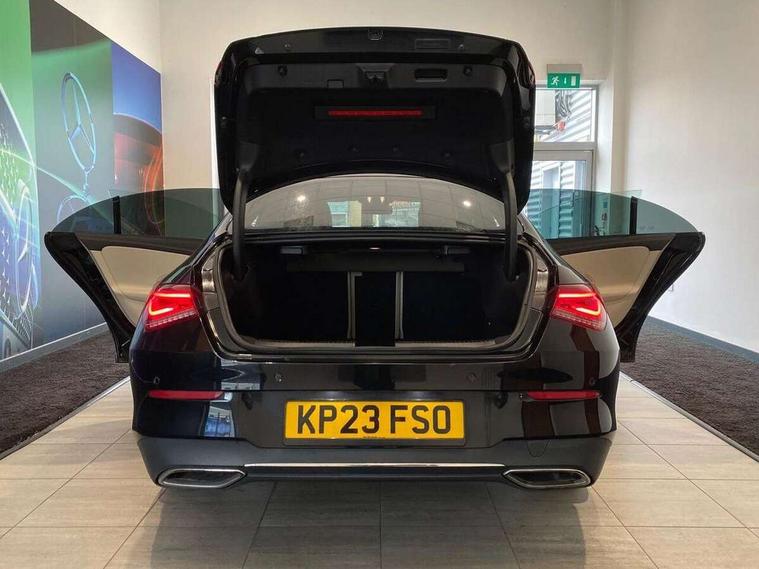 10.25 inch Instrument display with digital cockpit, 10.25 inch touchscreen central media display, Active lane keeping assist, Attention assist - Monitors steering behaviour and long journey fatigue, Bluetooth connection, Car wash mode, Cruise control with limiter, Direct steer system with speed sensitive power steering, DYNAMIC SELECT with a choice of driving modes (ECO, Comfort, Sport and Individual), ECO start/stop function, Fluid level warning indicator for fuel, oil, coolant and washer fluid, Hard-disk navigation, Hey Mercedes Voice activation, Lamp failure indicator, Mercedes me connect including emergency call system, accident recovery, breakdown and maintenance management, Mercedes me remote services, Outside temperature gauge, Owners manual and service booklet in English, Pre-installation of private car share, Preinstallation for Mercedes Benz link, Radio aerial integrated into front and rear windshields, Service indicator (ASSYST), Smartphone integration with Apple CarPlay and Android auto, Speed limit assist, Trip computer in multifunction display with current consumption indicator, Lowered comfort suspension, Rear axle multi-link, DAB digital radio tuner, MBUX multimedia system, Mercedes Benz sound system (100 W) with 6 speakers, USB (type C) ports (2) in stowage compartment and 1 in front of centre console, Adaptive brake lights, AMG bodystyling side skirts, Body colour bumpers, Body colour door handles, Chrome beltline strips, Diamond radiator grille pins in chrome, Electric windows, Electrically adjustable and heated door mirrors with integrated LED indicators, Exhaust system with 2 Visible tailpipe trim elements and rear apron with trim in chrome, Headlamp assist automatic headlamp activation, Heated glass rear windscreen + timer control, High level LED third brake light, Interior mirror with black reading lamps and frameless, LED high performance headlamps with integrated LED daytime running lights, LED tail lamp, Privacy glass with dark tinting on rear side windows and rear window, Progressive body-styling - Front apron with trim strip in chrome, visible tailpipe trim elements and rear apron with trim strip in chrome, Rain sensing windscreen wipers with two sensitivity settings, Rear boot, Rear fog lamp, Rear side wing doors, Variable front intermittent wipers, Window line trim strip in chrome, 3 seat bench in 2nd row, 40:20:40 split folding rear seat backrests, Air conditioning - Two zone thermotronic luxury automatic climate control with display, Air vents with surround in silver chrome, Artico man-made leather upholstery, Automatic child seat recognition sensor, Black roof lining, Brushed stainless steel sports pedals with rubber studs, Comfort seats, Front centre armrest with stowage, Front head restraints, Heated front seats, Illuminated glove compartment stowage, Leather multifunction sports steering wheel with black topstitching and bezel in silver chrome, Luggage net on driver/front passenger seat backrest, Manually adjustable front seats, Manually height and reach adjustable steering column, Rear head restraints, Single front passenger seat, Steering wheel gearshift paddles, Stowage compartment in centre console with retractable cover, Sunvisors with illuminated vanity mirrors, Touchpad on center console, Twin front cupholders, Two outer rear seat isofix and top tether child seat fixing points, Velour floor mats, Light and sight pack - CLA, Mirror pack - CLA, Parking package - CLA, Seat comfort pack - CLA, Active bonnet pedestrain safety measure which detects an impact and raises bonnet by 65mm, Active brake assist includes forward collision warning system with autonomous braking, Adaptive brake assist with hold function and hill start assist, Anti lock braking system (ABS) with brake assist, Black seat belts, Bonnet with power domes, Brake pad wear warning indicator, Childproof locks manually operated for rear doors and electrically operated for rear power windows, Crash responsive emergency lighting, Driver and front passenger head and sidebags, Driver and front passenger windowbags, Drivers knee airbag, Dual stage driver and front passenger airbags, Electric parking brake, Electronic stability programme with acceleration skid control, ESP curve dynamic assist, Front and rear seatbelt reminder, Front passenger seat occupancy sensor, Three point rear seat belts, Tyre pressure monitoring system, Warning triangle and first aid kit, Guard 360 degree guard vehicle protection system with immobiliser and interior protection, Keyless Go starting function, Remote central locking and crash sensor with emergency opening function, Black open-pore linden wood trim, 18" multi-spoke himalayas grey painted light alloy wheels with high sheen rim finish, Sport tyres, Tirefit tyre sealant kit,