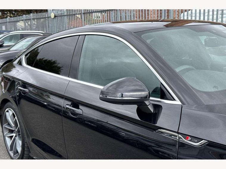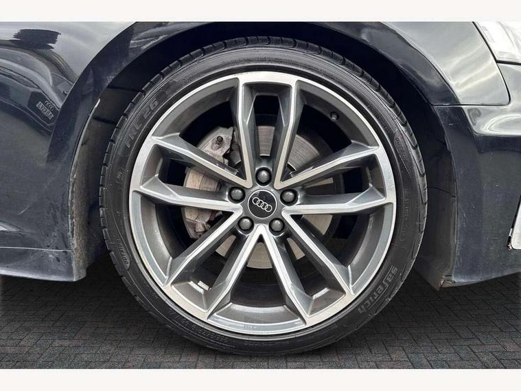 Audi connect safety and service (e-call), Audi connect with Amazon Alexa Integration, Audi drive select (Auto, Comfort, Dynamic, Efficiency and Individual), Audi parking system plus with front and rear sensors, Audi smartphone interface, Audi virtual cockpit - 12.3" full colour digital instrument cluster, vehicle/engine speed, Radio/media information+Driver assistance systems, Automatic start-stop system with coasting functionality and efficiency programme, Bluetooth interface, Electro-mechanical power steering, Email, calendar and text messages displayed via MMI, MMI nav+ with MMI touch - 10.1" high resolution MMI display, touch sensitive, 3D map, route/country info, dynamic route guide, personal route assist, Power operated tailgate, Rear view camera, Service interval indicator, Voice control system, 54 litre fuel tank, Sports suspension lowered by 23mm, 8 passive loudspeakers, CD player, DAB digital radio reception, Two additional USB ports for rear passenger in rear centre console, Two SDXC card slots, Auto dimming door mirrors, Auto dimming rear view mirror, Body colour bumpers, Body colour door handles, Body colour front spoiler lip, Body colour side sill trim, Body coloured door mirrors, Electric adjustable heated door mirrors, Electric folding door mirrors, Electric front windows, Front fog lights, Honeycomb structure radiator grille in grained matt black, Kerb-view function for passenger side, LED headlights and rear lights with LED daytime running lights, LED side indicator lights integrated into door mirrors, LED third brake light, Matt aluminium silver tailpipe trim, Privacy glass, Rain and light sensors, Rear side wing doors, Rear wiper, S line badges on front wings, S line front and rear bumpers with side skirts, S Line rear diffuser in matt anthracite black with trim strip in matt aluminium silver, Side air inlets in grained matt black with matt aluminium silver inlay, Variable front intermittent wipers, Windscreen with acoustic glazing, 3 seat bench in 2nd row, 3 spoke high multifunction leather sport steering wheel with paddle shfit and S badging perforated leather grips, 4 way electric lumbar support for driver and front passenger, 40/20/40 split folding 3 seater rear bench seat, Adjustable steering column, Black cloth headlining, Black perforated leather gearknob, Contrast stitching on seats, steering wheel and gear lever gaiter, Deluxe 3 zone electronic climate control, Front centre armrest, Front head restraints, Front/rear floor mats, Heated front seats, Illuminated door sill trim with S logo, ISOFIX child seat mounting and top tether, Luggage compartment mat, Manual seat adjustment, Rear centre armrest, Rear headrests, Single front passenger seat, Stainless steel pedals, Sunvisors with vanity mirrors, LED interior light pack - A5/RS5, 3x3 point rear seatbelts, 6 airbags - Driver, front passenger, curtain and side airbags, Electromechanical parking brake, Electronic Stabilisation Control (ESC) including ABS, ASR and EDL, Front passenger airbag deactivation, Height adjustable front seatbelts, Hill hold assist, Manual child lock in rear doors, Multi collision brake assist, Pop-up bonnet for pedestrian protection, Pre sense city, Seatbelt monitoring, Tyre pressure warning, Variable restraint system, Warning triangle and first aid kit, Anti theft alarm system, Anti theft wheel bolts, Immobiliser, Keyless Go, Remote central locking, Matt brushed aluminium inlays, Tool kit, Tyre repair kit,