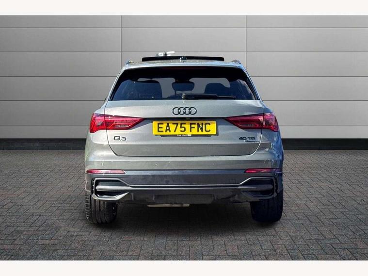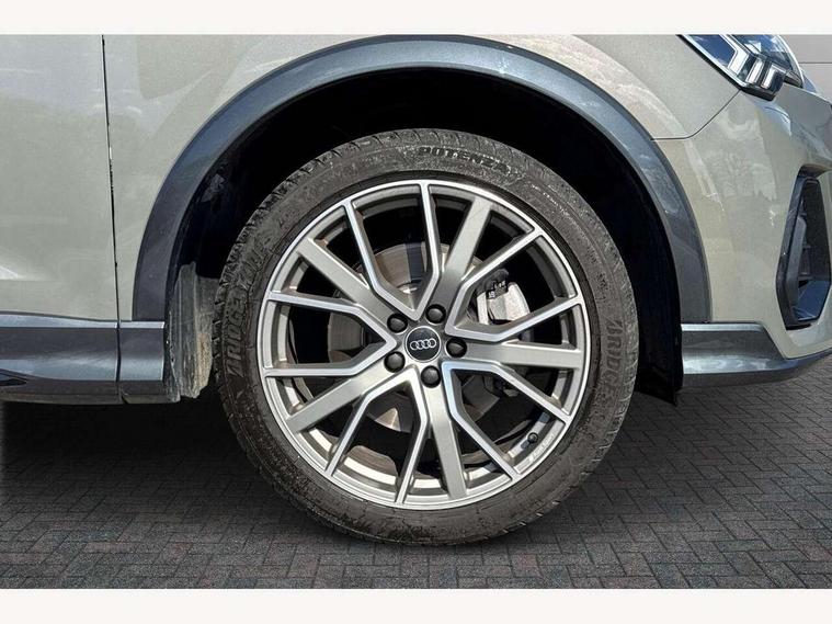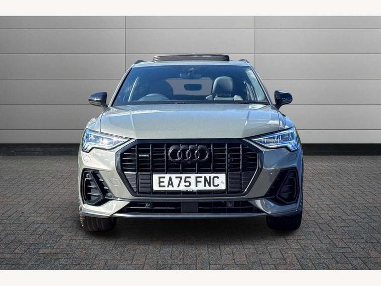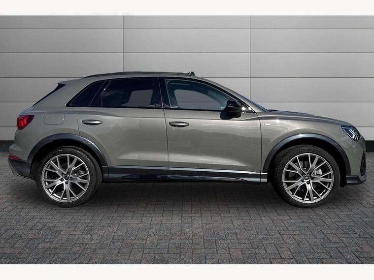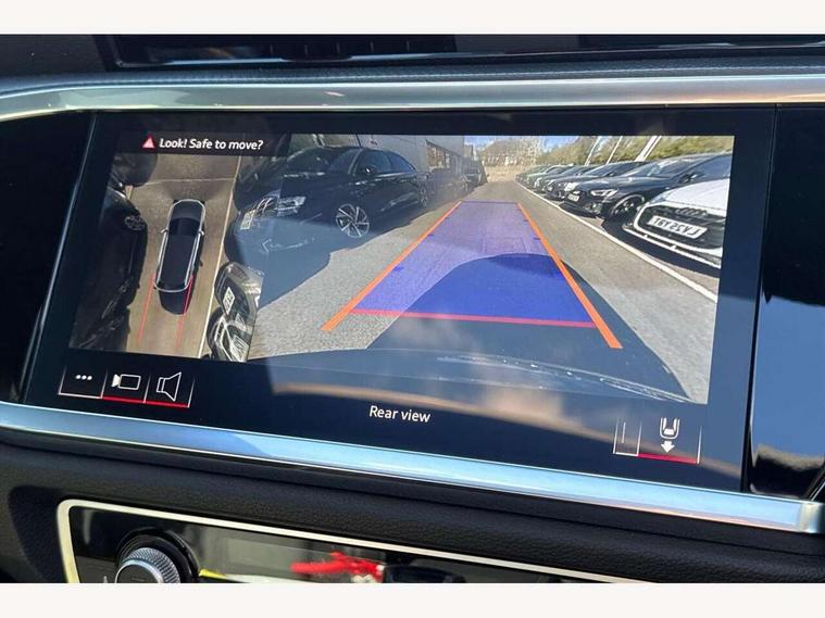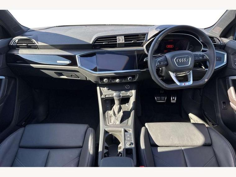 Amazon alexa Integration, Audi connect safety and service, Audi drive select, Audi lane departure warning, Audi Virtual Cockpit - 10.25" display, Bluetooth interface, Camera based traffic sign recognition, Distraction and Fatigue warning, Legal emergency call, MMI Navigation Plus with high resolution 10.1 inch touchscreen colour display, Power operated tailgate, Progressive steering, Service interval indicator, Smartphone interface includes wireless Apple carplay/Android Auto, Start stop system with recuperation, Voice control system with natural language interaction, Diesel particulate filter, Sports suspension, 2 USB-C ports with charge and data functions, 6 passive loudspeakers, DAB digital radio module, Acoustic windscreen, Anthracite black radiator grille, Audi Beam uses LEDs to project the Audi logo onto the ground as you exit your Q3, Auto dimming door mirrors, Auto dimming frameless rear view mirror, Black roof rails, Electrically folding, adjustable and heated door mirrors with integrated LED side indicators and kerb view function for passenger side, Front and rear electric windows, Front fog lights, Grille vertical bars in aluminium silver/Matt, High gloss black finish B and C pillars, LED Dynamic rear indicators, LED headlights with LED daytime running lights, LED rear lights, LED third brake light, Privacy glass dark tinted rear and rear-side windows (from B-pillar backwards), Rain and light sensors, Rear diffuser grille in grained matt black, Rear diffuser strip in matt anthracite black, Rear side wing doors, Rear wiper, S line bumpers in contrasting Manhattan grey, Variable front intermittent wipers, 12V socket in rear centre console, 3 seat bench in 2nd row, 40:20:40 folding with manual adjustment for 60:40 forwards/backwards position and backrest angle, Adjustable rear seat bench/backrest with centre armrest and cupholder, Black carpet mats, Black cloth headlining, Dual zone electronic climate control, Electric lumbar support, Front and rear black floor mats with contrast stitching in rock grey, Front and rear headrests, Front centre armrest, Height and reach adjustable steering wheel, Illuminated door sill trims with S logo, ISOFIX child seat mounting for front passenger with airbag deactivation and outer rear seat including top tether attachment point for outer rear seats, Luggage compartment sill protection in stainless steel, Manual front seats with height adjustment, Perforated leather gearknob, Single front passenger seat, Stainless steel pedals, Twin leather upholstery with front sport seats + S embossing, Black styling pack - Q3, Non smoking pack - Q3, 3x3 point rear seatbelts, 6 airbags - Driver, front passenger, curtain and side windows, Audi pre-sense front with pedestrain and cyclist recognition, Electrically operated child locks on rear doors, Electromechanical parking brake, Electronic stabilisation control including ABS, ASR and EDL, Front seatbelt reminder, Hill descent control, Hill hold assist, Pre sense basic, Seatbelt monitoring, Tyre pressure warning, Warning triangle and first aid kit, Anti theft wheel bolts, Immobiliser, Remote central locking, Thatcham approved category 1 anti theft alarm, Aluminium look interior elements, Detail dashboard around MMI touch colour display in glass look, black with surround in aluminium look, Leatherette door armrest, Piano black inlay,