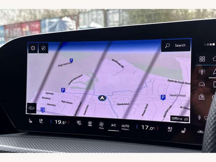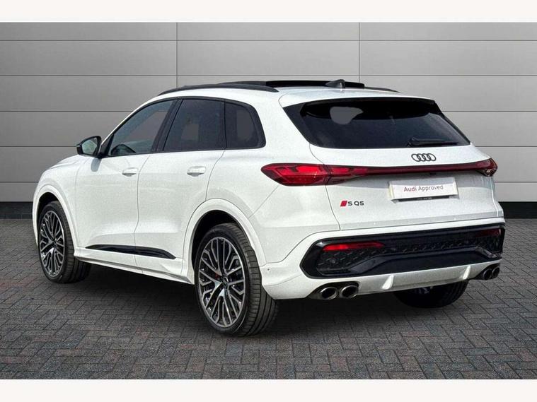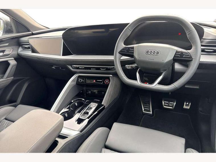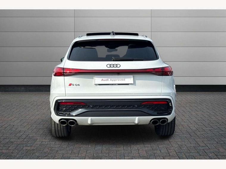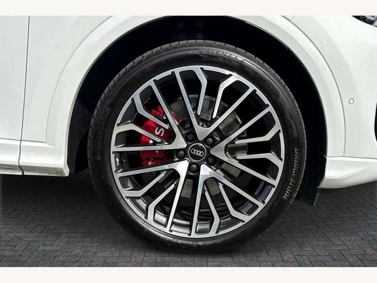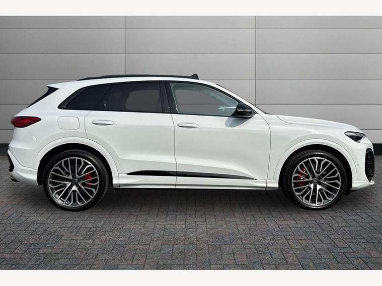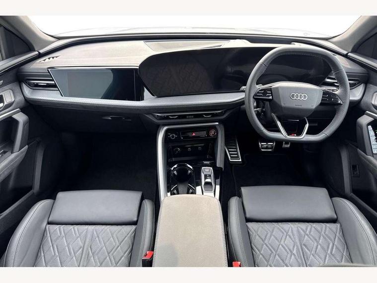 Adaptive cruise assist plus with steering intervention, Advanced driver attention alert, Audi application store, Audi connect emergency call and service, Audi digital key, Audi drive select, Audi smartphone interface, Audi virtual cockpit plus with 11.9" OLED colour display, Camera based traffic sign recognition, Fatigue monitor, Front cross traffic intersection assist, Garage door opener, Lane change assistant with exit warning system, rear cross traffic alert and rear turn assist, Lane departure warning with emergency assist, MMI 10.9" front passenger touch display, MMI navigation plus with high resolution 14.5" OLED touchscreen colour display, Park assist plus, Parking system plus with 360 display, PAS, Reversing camera, Swerve assist and turn assist, Top view camera, Traffic sign based speed limiter, S adaptive air suspension, 2 USB-C ports in both the front and rear, DAB Digital radio, Smartphone compartment with wireless charging, Acoustic glass for front door windows, Active digital light signatures - Six additional combinations of active daytime running light signature, Auto dimming rear view mirror, Coming/leaving home lighting function, Digital OLED tail lights including communication light, Electrically adjustable heated and folding + automatically dimming exterior mirrors, Exhaust tailpipes in dark chrome, Front and rear electric windows, Front door sill trims with aluminium inlays, illuminated with 'S' logo, Full body paint finish, Grill frame, inlay and front air inlets in matt anthracite chrome, Headlight cleaning system, Heated rear window, High beam assist, High gloss window surrounds, Logo projection light in exterior mirrors, Matrix LED headlights, Memory function for door mirrors, Privacy glass, Projection third brake light for rear window in LED, Radiator grille in phantom black, Rear and side windows with heat insulating glass, Rear honeycombe grille in matt black with inlay in matt anthracite chrome, Rear side wing doors, Rear wash/wipe, Red S rhombus badging with 'S' lettering on rear, S exterior styling, Towbar preparation, Windscreen with acoustic glazing, 3 rear head restraints, 3 seat bench in 2nd row, 3 spoke leather steering wheel with multi-function buttons with touch control, flattened on top and bottom, with S badging and contrast stitching, 40:20:40 split folding rear seat bench with centre armrest and cup holders, Comfort centre armrest front, Deluxe 3 zone electronic climate control, Electric steering wheel adjustment, Electrically adjustable front seats with memory function for driver's side, Front and rear floor mats, Front seat ventilation, Front sport seats with integrated head restraints, Headlining in black cloth, Heated front seats, Heated outer rear seats, Heated steering wheel, i-Size child seat mounting on the front passenger side and outer rear seats, i-Size and top tether on the outer rear seats, Increased charging capacity for USB ports 2X100 Watts in rear, 2X60 Watts in front, Interior trim in aluminium look, Luggage compartment lid, electrically opening and closing, Perforated fine nappa leather upholstery with diamond stitching incl ventilation and massage function for front seats, Pneumatically adjustable lumbar support with massage function for front seats, S embossed logo on front sport seats, Single front passenger seat, Softwrap in Dinamica, Stainless steel pedals and footrest, Steering wheel grips in perforated leather and shift paddles, Ambient lighting package plus - Q5, Black styling package plus - Q5, Sound and Vision pack - Q5, Storage and luggage compartment pack - Q5, 3x3 point rear seatbelts, ABS, Acoustic vehicle alerting system, Convenience key with safelock, Driver and front passenger airbag with passenger airbag deactivation, Electric child safety locks, First aid kit with warning triangle and high visibility vests, Front emergency brake assist, Front side airbags with head airbag system and front interaction airbag, Hill hold assist, Occupant detection in rear seat area, Proactive passenger protection system for front, sides and rear, Red brake calipers, Side airbags in front and rear with head airbag system and front interaction airbag, Tyre pressure loss indicator, Anti theft alarm, Anti-theft wheel bolts, Remote control key with SAFELOCK and keyless go, Accent surfaces and control buttons in gloss black, Black dashboard with contrast stitching, Steel grey seat stitching, Upper and lower interior elements in dinamica microfiber, Tyre repair kit,