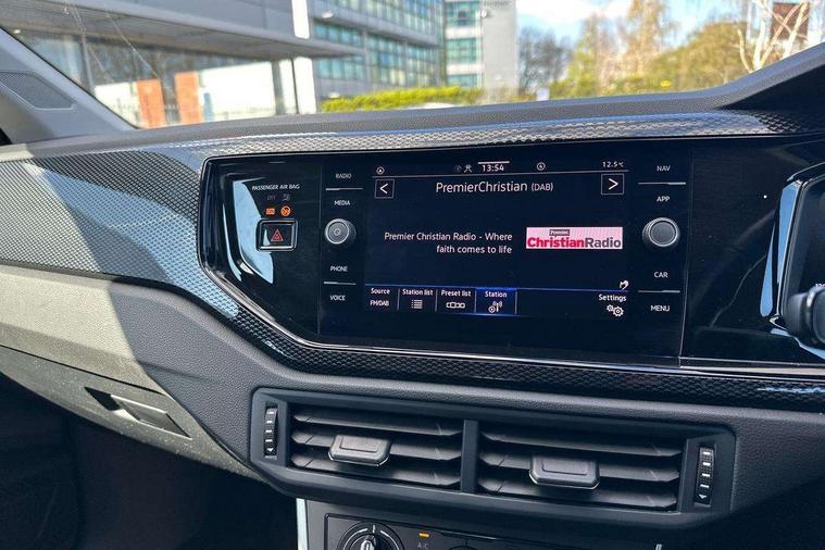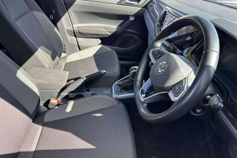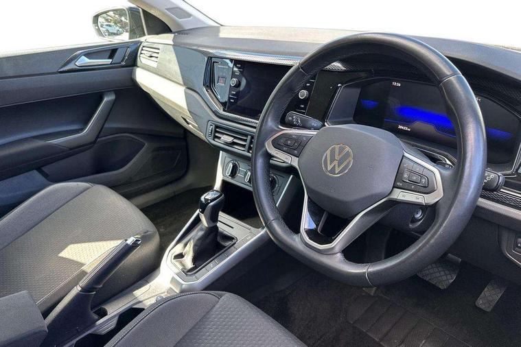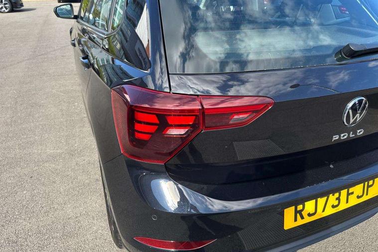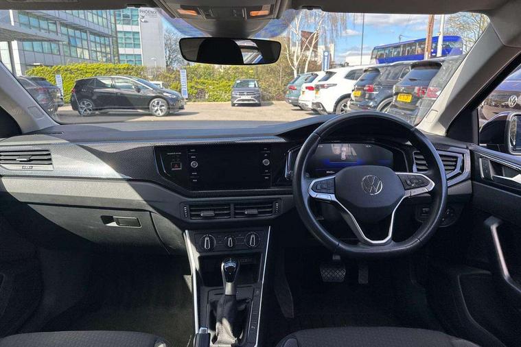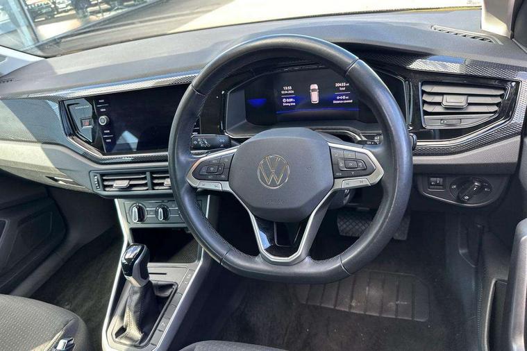 Adaptive cruise control with follow-to-stop and speed limiter, Advanced driver attention and drowsiness monitor, Bluetooth mobile phone interface, Dynamic road sign display, Emergency call service, Front assist system, Power assisted speed sensitive steering, Preparation for We connect and We connect plus, Speedo and rev counter, electronic odometer, trip, service interval display and fuel gauge, Standard rear axle, Travel Assist - Lane keeping system and traffic jam assist, Travel assist including emergency assist, Trip computer, Warning signal and warning light for front and rear seatbelts not fastened, Washer fluid level indicator, Wireless app connect, Front wheel drive, Rear shock absorpion, Start-stop system with battery regeneration (recuperation - energy recovery during braking), DAB Digital radio, Diversity antenna for FM reception, Front and rear 6 speakers, Automatic dimming interior rear view mirror, Body colour bumpers, Body colour door handles, Body colour door mirrors, Electric front windows, Heat insulating darkened glass in side and rear windows, Heat insulating glass windscreen, Power folding adjustable/heated exterior mirrors and front passenger exterior mirror lowering function, Rain sensor, Rear electric windows, Rear fog light, Rear side wing doors, Rear windscreen washer and wiper with interval delay, Third brake light, 12V power socket in centre console, 2 front and 2 rear reading lights, 2 USB-C ports in the front, 2 USB-C charging sockets on the center console in the rear, 3 rear head restraints, 60/40 split folding rear seat and rear seat bench not split, Chrome plated radiator grille inserts, air vent surrounds and light switch surrounds, Door and side trim panel, Driver and front passenger seat height adjustment, Driver/passenger sunvisors with illuminated vanity mirrors, Front centre armrest, Front seat backrest storage pockets, Front standard seats, Handbrake lever handle in leather, Hartley/Thomas cloth upholstery, Headliner in recycled material, Isofix child seat preparation easy-fit (for two outer rear seats, and front passenger seat) compatible with I-size, Leather trimmed gear knob, Luggage compartment cover, Luggage compartment floor, Luggage compartment lighting, Single front passenger seat, Standard pedal cluster, Three spoke leather wrapped multifunction steering wheel with shifting paddles, Light and vision pack - Polo, 3 point height adj front seatbelts + pretensioners, 3x3 point rear seatbelts, ABS, Driver and front passenger airbag with front passenger airbag deactivation, Drivers and front passengers safety optimised head restraints, ESC (Electronic stability control) + EDL (Electronic Differntial lock) and ASR (Traction control), Extended and predictive pedestrian/ cyclist protection, Front curtain and side airbags with center airbag, Front disc brakes, Hill hold control, Manual child lock in rear doors, Rear drum brakes, Single tone horn, Tyre pressure loss indicator, Alarm with interior protection, Anti-theft alarm system with interior monitoring, backup horn, and towing protection, Anti-theft wheel bolts, Electronic engine immobiliser, Lava stone black gloss/matt decorative inserts in dash and front door panels, Low rolling resistance tyres,