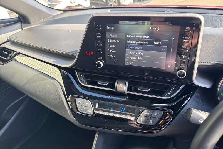 4.2" coloured TFT screen for multi-information display, Adaptive cruise control, Apple car play and Android auto, Bluetooth connectivity, E-call, Electric power steering, Hybrid system indicator, Lane departure alert with steering control, Lane trace assist, Push button start, Push button tailgate release, Remote boot door release in cabin, Remote boot door release in key, Reversing camera, Road sign assist - RSA, Smart voice assist, Trip computer, Voice recognition, Vehicle Stability Control (VSC), 6 speakers, AM/FM radio, DAB Radio (Digital Audio Broadcasting), Toyota touch 2 multimedia system with 8" display, USB connector, Wi-fi connectivity, Anti-jam protection on power windows, Auto high beam, Auto up and down function on all power windows, Automatic headlights, Automatic headlights cut-off, Black and body coloured rear bumper, Black lower front grille, Black upper front grille, Body colour door handles, Body colour door mirrors, Body colour front spoiler lip, Body coloured front bumper, Boot door release with push button, Electric heated door mirrors, Follow me home headlights, Front and rear power windows, Front fog lights, Headlight cut off reminder, Honeycomb lower front grille, LED daytime running lights, LED High mounted stop light, LED rear brake lights, LED rear combination lights, Manual headlight levelling, Manually retractable door mirrors, Noise reduction layer on front windows and windscreen, Power adjustable door mirrors, Rear side wing doors, Rear spoiler, Rear tailgate, Rear window defogger, Rear window wiper, Reflective LED headlights, Shark fin antenna, UV-filter on driver and passenger windows, UV-filter on rear windows, Variable front intermittent wipers, 12v power outlet - front, 3 rear headrests, 3 seat bench in 2nd row, 3 spoke leather steering wheel, 60/40 split folding 2nd row rear seats, Adjustable rear headrests, Adjustable speed limiter switch on steering wheel, Assist grips front and centre pillar, Audio and telephone switches on steering wheel, Black front door assist grips, Boot light, Chrome interior door handles, Cloth upholstery, Driver and front passenger personal light, Driver and front passenger Whiplash Injury Lessening seats, Dual zone automatic air conditioning, Floor mats, Front cupholders, Front head restraints, Front sports seats, Glovebox with internal light, Hard tonneau cover, Hooks for luggage holding net, Humidifying Nanoe air purifier, Illuminated entry system, Isofix attachments on outer rear seats, Leather gearshift, Light on driver sun visor, Light on passenger sun visor, Manual telescopic steering wheel, Manual tilt steering wheel, Manually adjustable lumbar support on driver seat, Manually height adjustable driver seat, Manually height adjustable front passenger seat, Manually reclining driver seat, Manually reclining front passenger seat, Manually sliding driver seat, Manually sliding front passenger seat, Microphone on front personal light, Mirror on driver sun visor, Mirror on passenger sun visor, Multimedia switches on steering wheel, Pollen filter, Shopping bag hooks, Single front passenger seat, Slow opening on lower glovebox, Voice recognition switch on steering wheel, 16 Disk front wheel brake, 3x3 point rear seatbelts, ABS+EBD+Brake assist, Electronic parking brake, Front and rear seatbelt reminder, Front passenger airbag on/off switch, Hill start assist control (HAC), Pre collision system with pedestrian detection, Pre-tensioners and force limiters, Rear door child safety locks, SRS Airbags - Driver + Front passenger, front side, front and rear curtain and driver's knee airbags, Toyota safety sense, Tyre pressure monitoring system, Tyre pressure warning system, Acoustic vehicle alert system (AVAS), Glass-breaking alarm sensors, Immobiliser, Intrusion alarm, Intrusion sensor, Motion sensor alarm, Power door locks, Power passenger window lock, Remote central locking, Black lower dashboard, Black upper dashboard, Grey deco line on upper dashboard, Matte black centre console, Tyre repair kit,