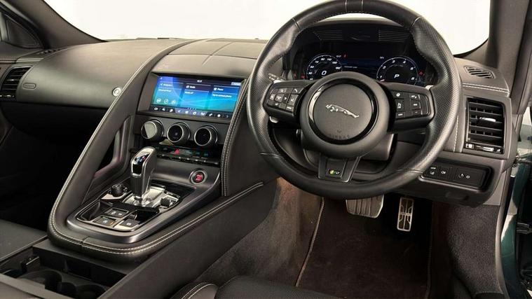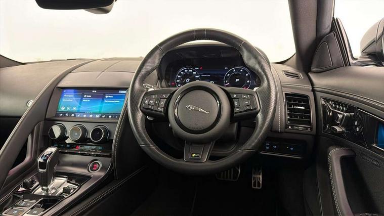 10" touch screen, Android Auto, Apple CarPlay preparation, Bluetooth telephone connectivity, Boot entrapment release lever, Connected navigation pro, Cruise control + speed limiter, Driver condition monitor, Incontrol pro service, InControl remote premium, Interactive driver display, Lane departure warning system, Lane keep assist, PAS, Push button start, Rear view camera, Stop/start system, Traffic sign recognition with adaptive speed limiter, Trip computer, Adaptive dynamics, Configurable dynamic mode, Electronic active differential with torque vectoring by braking, Audio remote control, Digital Audio Broadcast radio-DAB, InControl app, InControl protect, Auto dimming rear view mirror, Auto dimming/power fold heated door mirrors with memory function, Automatic headlights, Body coloured door mirror caps, Deployable boot lid spoiler, Electric front windows, F-Type badge, Flush exterior door handles, Headlight washers, Infra red reflective glass, LED tail lights, Pixel LED headlights with signature DRL, Quad outboard mounted exhaust pipes, R badge, Rain sensing windscreen wipers, Solar attenuating windscreen, Switchable active exhaust, Tinted glass, Bright metal foot pedals, Deployable front air vents, Electrically adjustable steering column with memory, Front centre armrest, Front headrests, Jaguar sense, Low line cubby box, Lumbar support, Memory function for passenger seat, Overhead console, Pollen filter, Power socket, Premium cabin lighting, R performance seats, Rain, Ice and snow mode, Twin front cupholders, USB with 12V socket in centre console, Online pack - F-Type, Smartphone pack - F-Type, 4 airbags in front, Anti-lock braking system (ABS), DSC - Dynamic Stability Control, Electronic brake force distribution, Electronic parking brake, Emergency brake assist, Emergency braking, Front/rear seatbelt pre-tensioners, Pedestrian contact sensing and deployable bonnet, Seatbelt reminder for driver and front passenger, Tyre pressure monitoring system, Deadlocks, Drive away door locking, Engine immobiliser, Keyless entry, Locking wheel nuts, Perimetric and volumetric anti theft alarm, Remote central locking, Two stage unlocking, Valet mode,