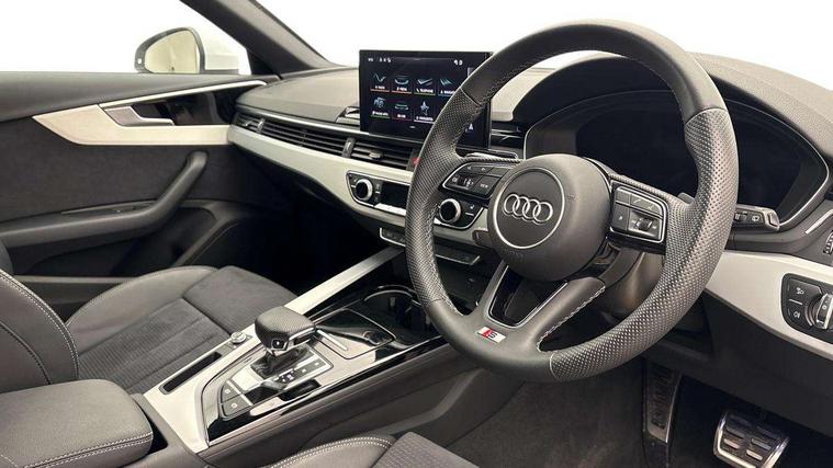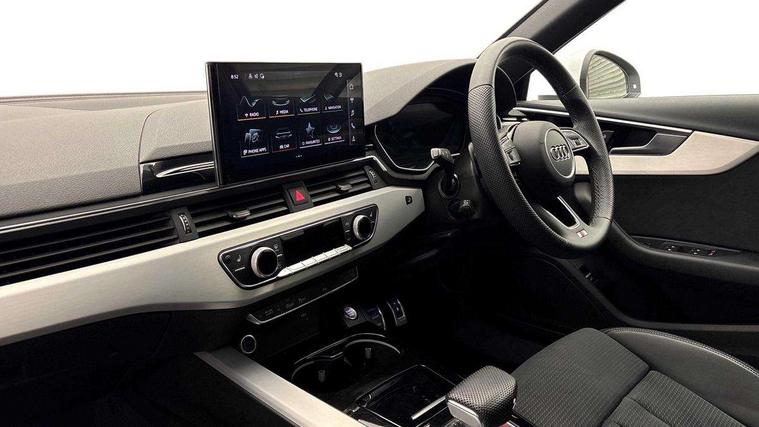 Audi connect safety and service (e-call), Audi drive select, Audi smartphone interface, Audi virtual cockpit, Automatic start-stop system with coasting functionality and efficiency programme, Bluetooth interface, Camera based traffic sign recognition, Electromechanical power steering, Email, calendar and text messages displayed via MMI, Front and rear parking sensors, Lane departure warning, MMI Navigation plus with MMI touch includes 10.1" high resolution colour MMI display, 3D map, Power operated tailgate, Rear view camera, Voice control system, 54 litre fuel tank, Sports suspension lowered by 23mm, 2 USB charging ports, 8 passive loudspeakers, DAB digital radio reception, Aluminium roof rails, Auto dimming rear view mirror, Body colour door handles, Body colour front spoiler lip, Body colour side sill trim, Body coloured door mirrors, Electric adjustable/heated/folding door mirrors with auto dimming, Grained matt black side air inlets with matt aluminium silver inlay, High beam assistant, Honeycomb structure radiator grille in grained matt black, LED headlights with LED rear lights + dynamic rear indicators + headlight adjustment and high beam, turning light + LED daytime running lights, LED third brake light, Matt aluminium silver tailpipe trim, Privacy glass, Rain and light sensors, Rear side wing doors, Rear wiper, S Line badges on the front wings, S line front and rear bumpers with side skirts, S Line rear diffuser in matt anthracite black with trim strip in matt aluminium silver, S Line roof edge spoiler, Variable intermittent front wash/wipe, Windscreen with acoustic glazing, 3 spoke high multi-function sports leather steering wheel grips in perforated leather with S badging including paddle shift, 4 way electric lumbar support for driver and front passenger, 40/20/40 split folding 3 rear seat bench in 3 parts with rear centre armrest, Black carpets, Black cloth headlining, Black perforated leather gearknob, Contrast stitching on seats, steering wheel and gear lever gaiter, Deluxe 3 zone electronic climate control, Electric load area cover, Front and rear head restraints, Front centre armrest, Heated front seats, Illuminated door sill trims with S logo, ISOFIX child seat mounting and top tether, Manual seat adjustment, Single front passenger seat, Stainless steel pedals and foot rest, High gloss package - A4, LED Interior light pack - A4/S4, 3 rear seatbelts, 6 airbags - Driver, front passenger, curtain and side windows, Attention and drowsiness assist, Electronic Stabilisation Control (ESC) including ABS, ASR and EDL, Hill hold assist, Multi collision brake assist, Pop-up bonnet for pedestrian protection, Pre sense city, Rear door child safety locks, Seatbelt monitoring, Warning triangle and first aid kit, Anti theft alarm, Anti theft wheel bolts, Central locking, Keyless Go, Matt brushed aluminium inlays, Tool kit, Tyre repair kit,